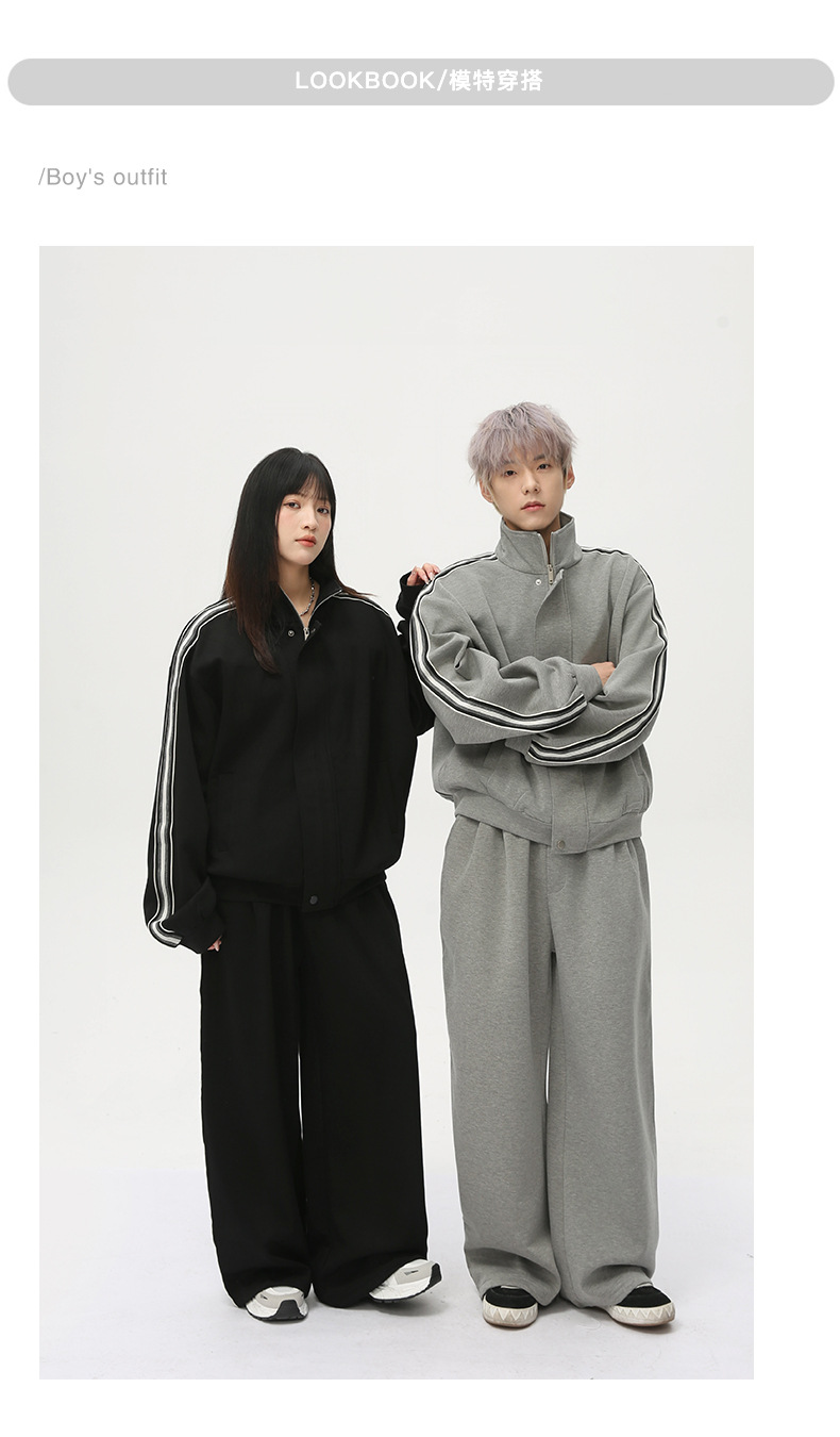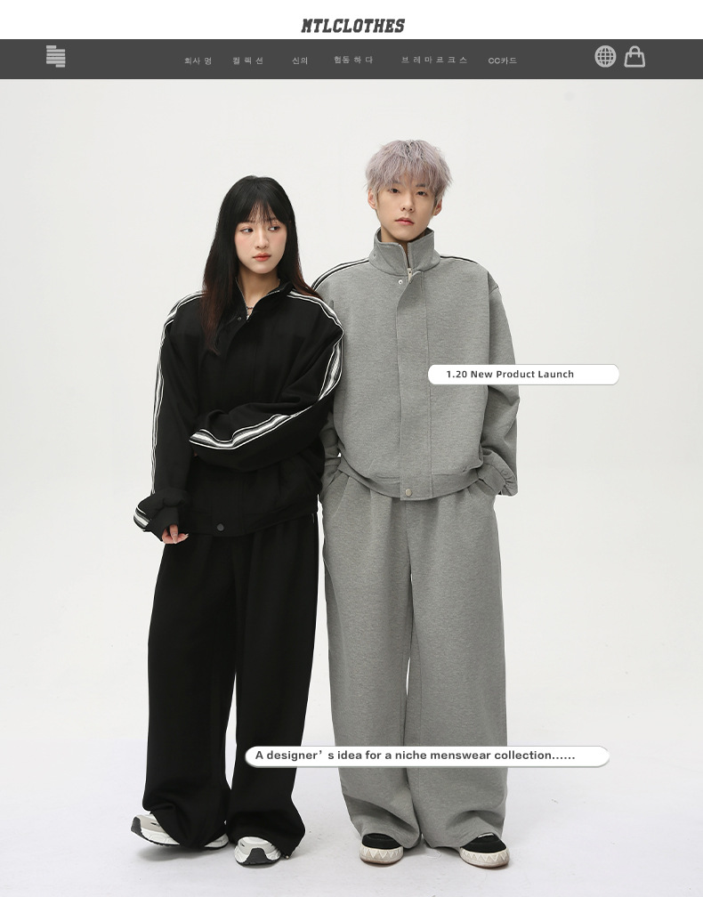 MTLCLOTHES para hombre | Nueva versión coreana de la barra lateral, diseño de contraste, cuello alto, chaqueta con cremallera, pantalones casuales