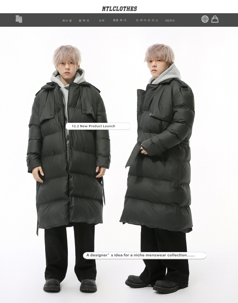 MTLCLOTHES Hombres| Nuevo invierno más largo de la rodilla de desestructuración gruesa calentamiento de color sólido ropa de algodón casual suelta