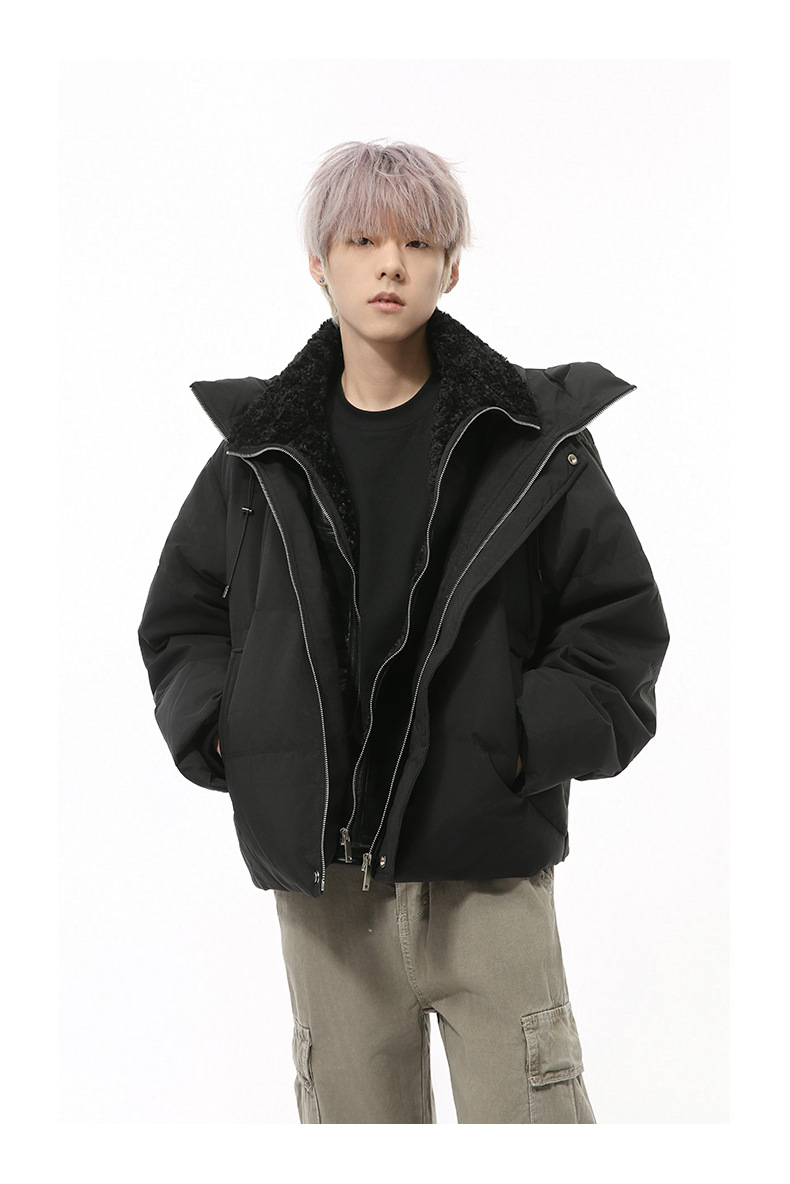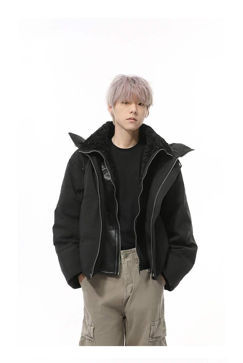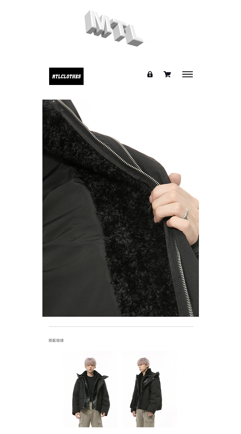 MTLCLOTHES Hombres| Nuevo invierno nicho falso de dos piezas de cuello antifrío grueso chaqueta de plumón con capuz
