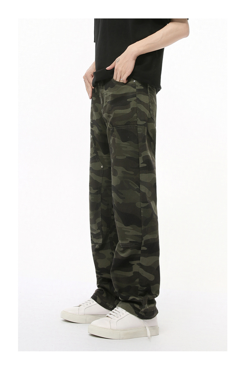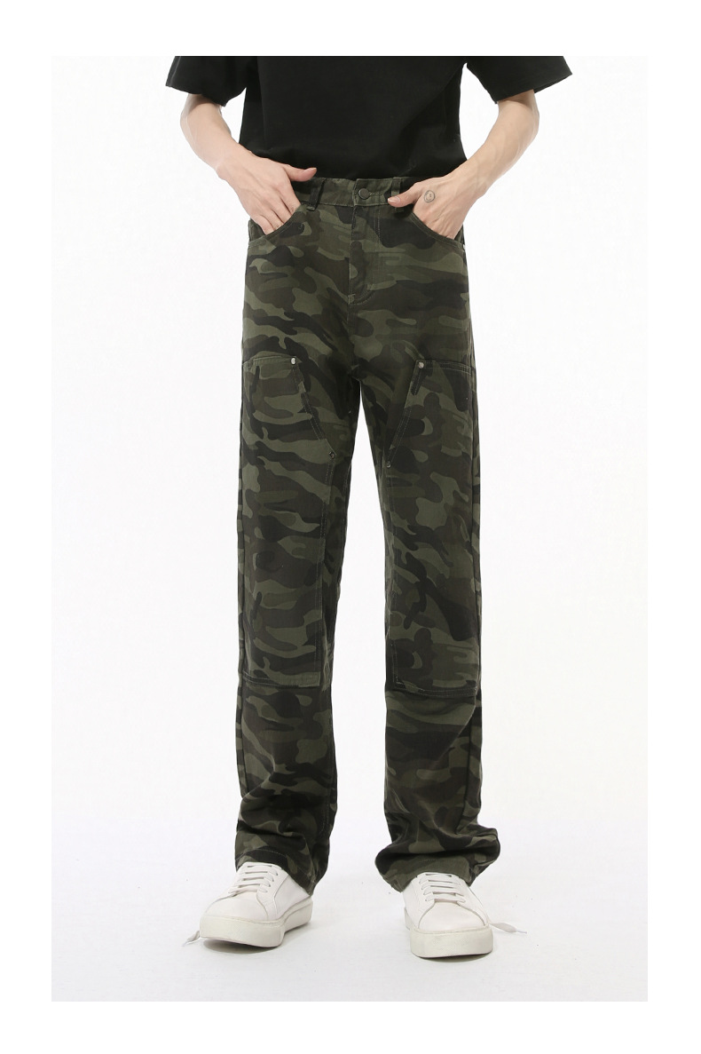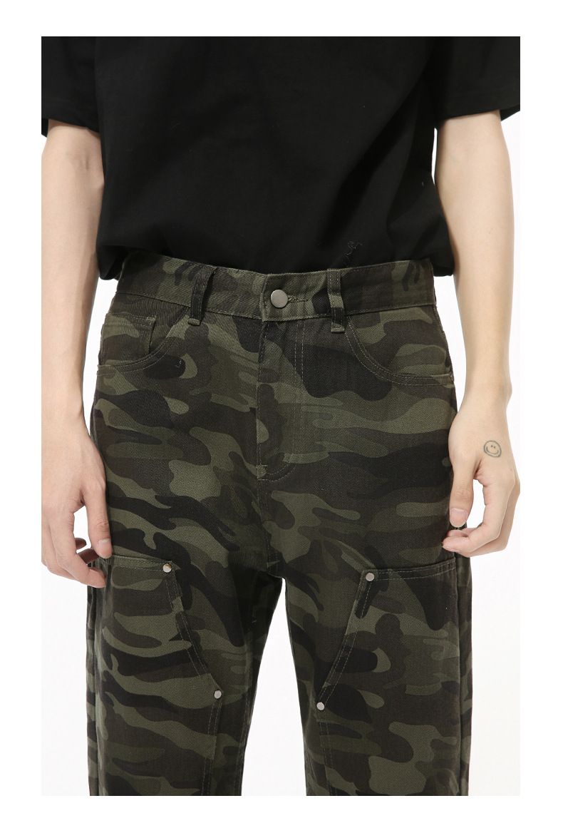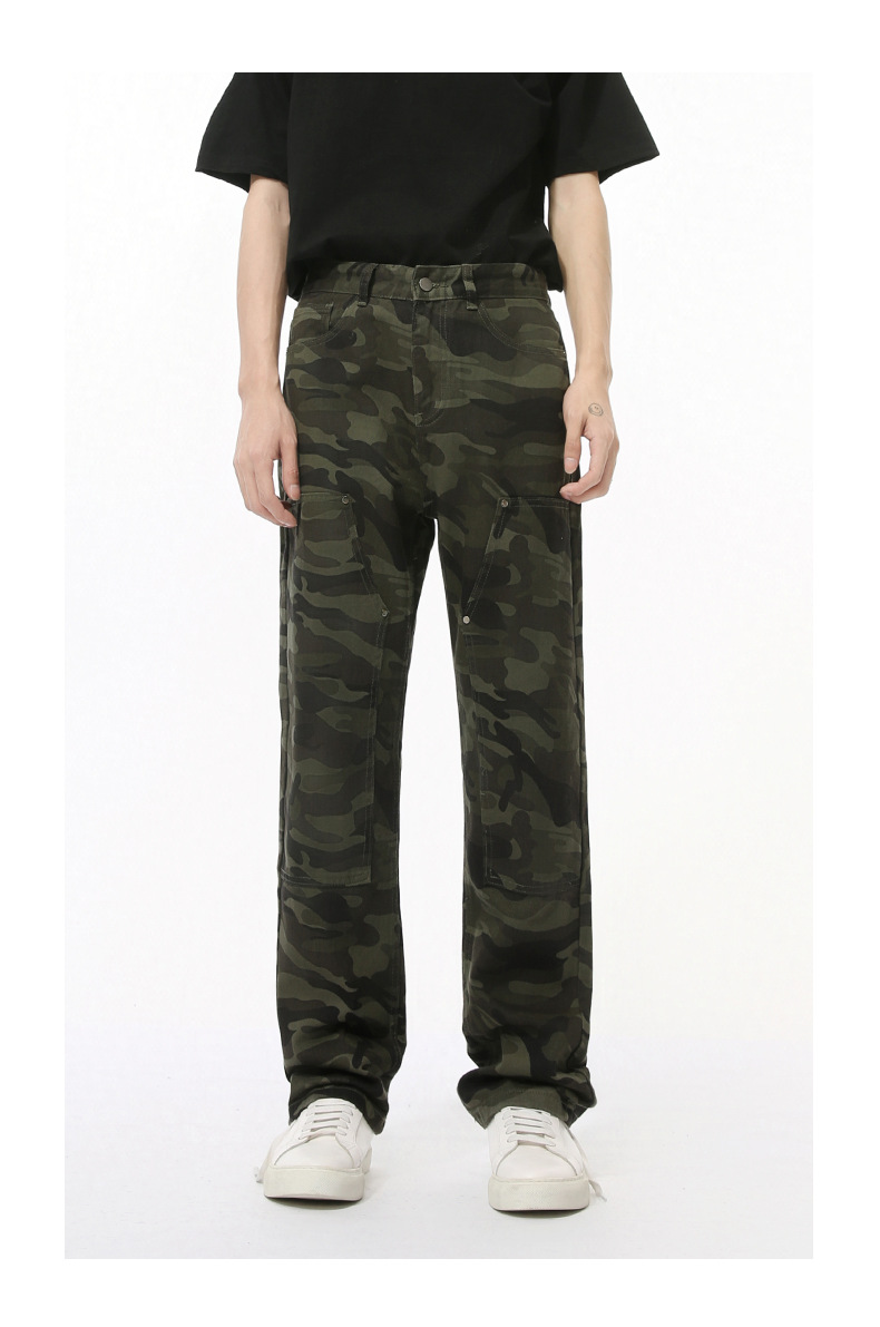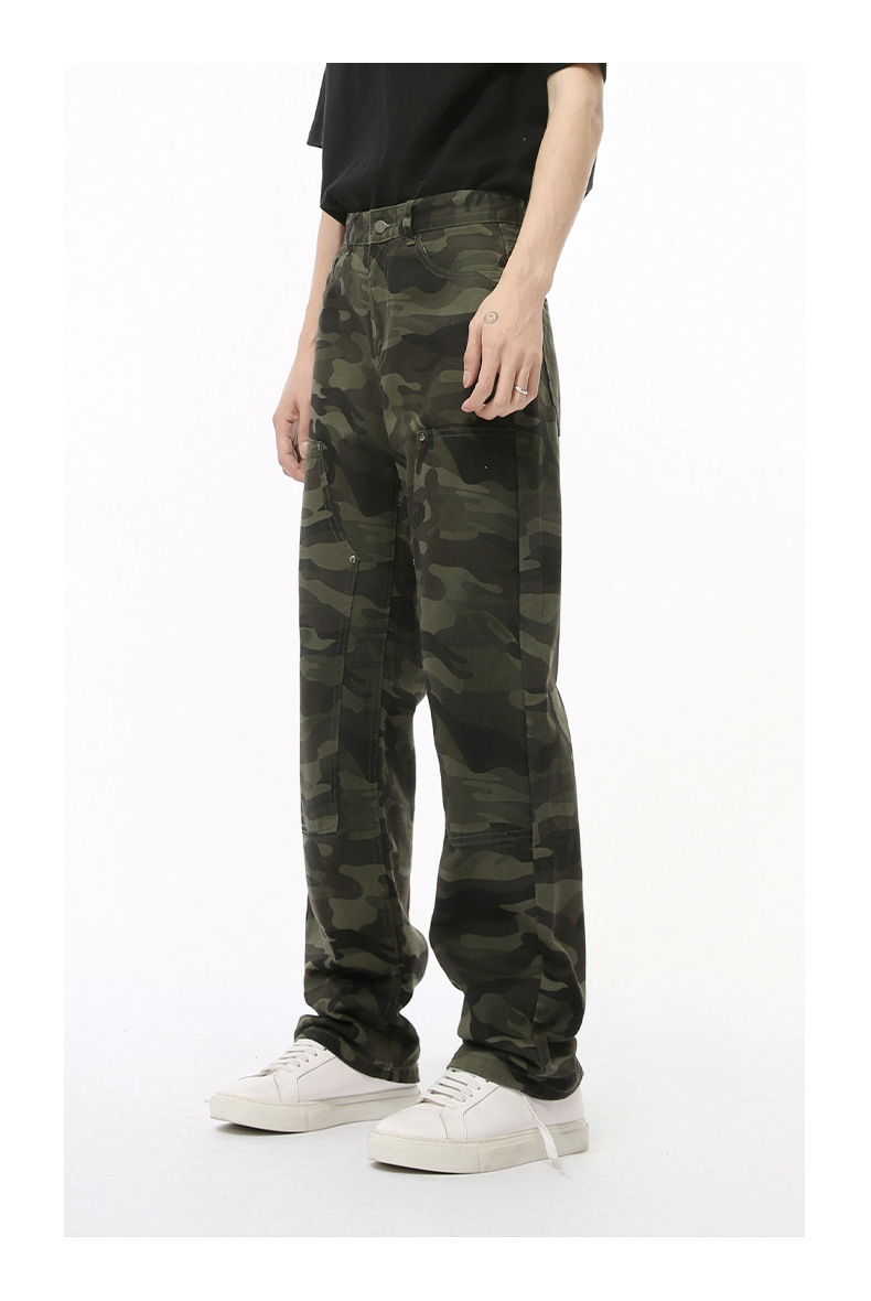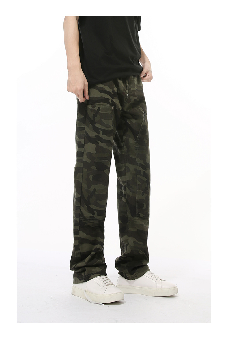 MTLCLOTHES Hombres| Nuevos productos de otoño de estilo americano camuflado empalme pegatinas vibe de alta calle jeans retro