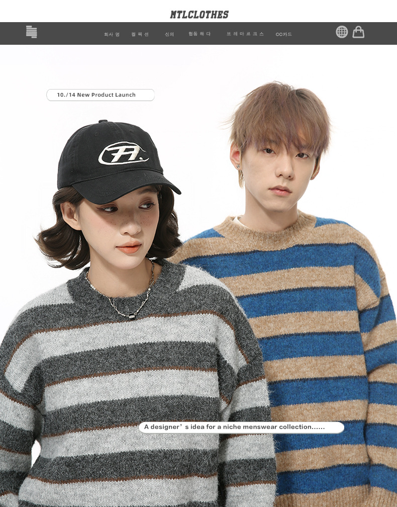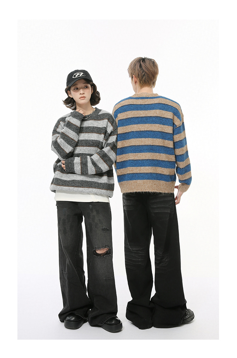 MTLCLOTHES Hombres| Nuevos productos de otoño coreanos de contraste de color de rayas gruesas cuello redondo plush suéter de punto perezoso