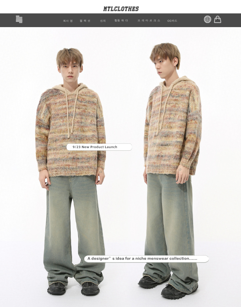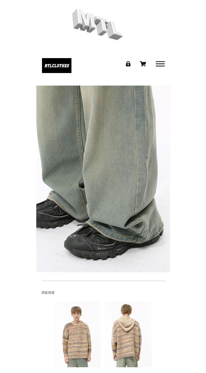MTLCLOTHES Hombres| Nuevos productos de otoño retro cemento verde colgante sensación de caída rectas pantalones jeans de piernas anchas sueltos