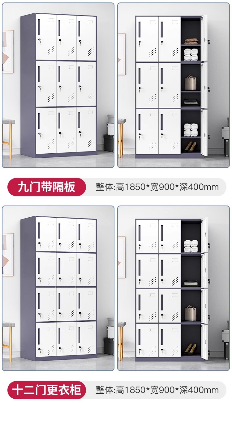Desmontaje y montaje armario de borde estrecho armario de almacenamiento multipuerta dormitorio del personal armario de cambio de gimnasio con bloqueo armario de almacenamiento