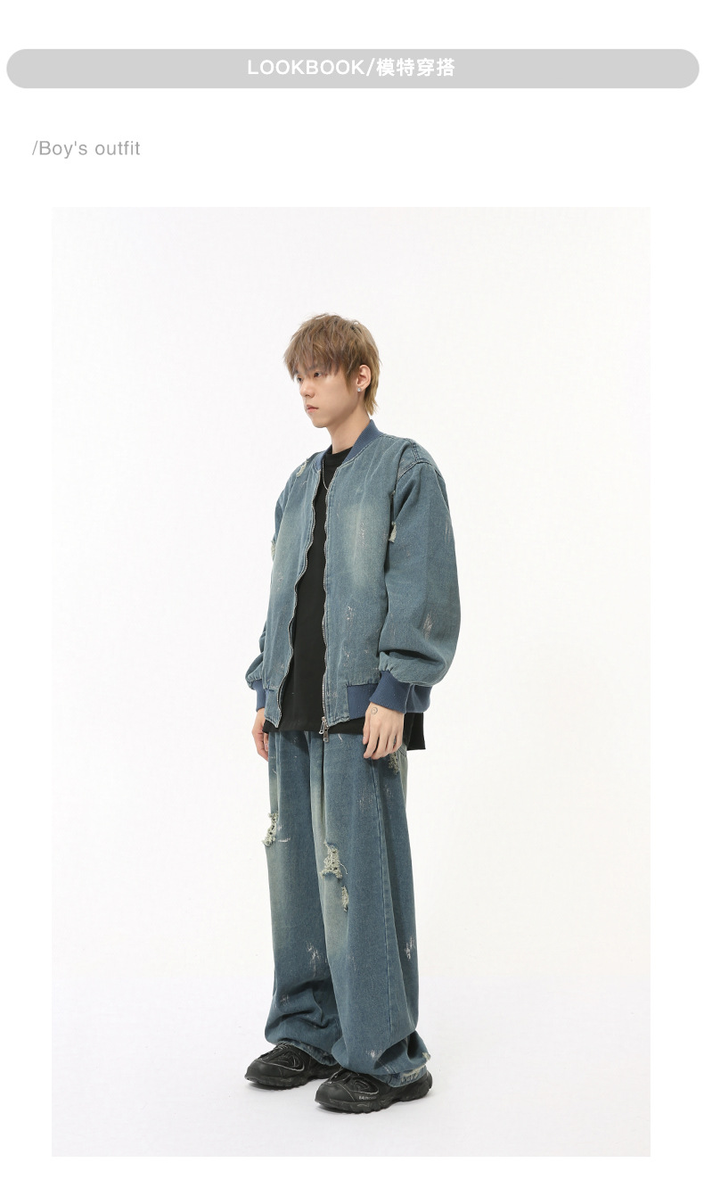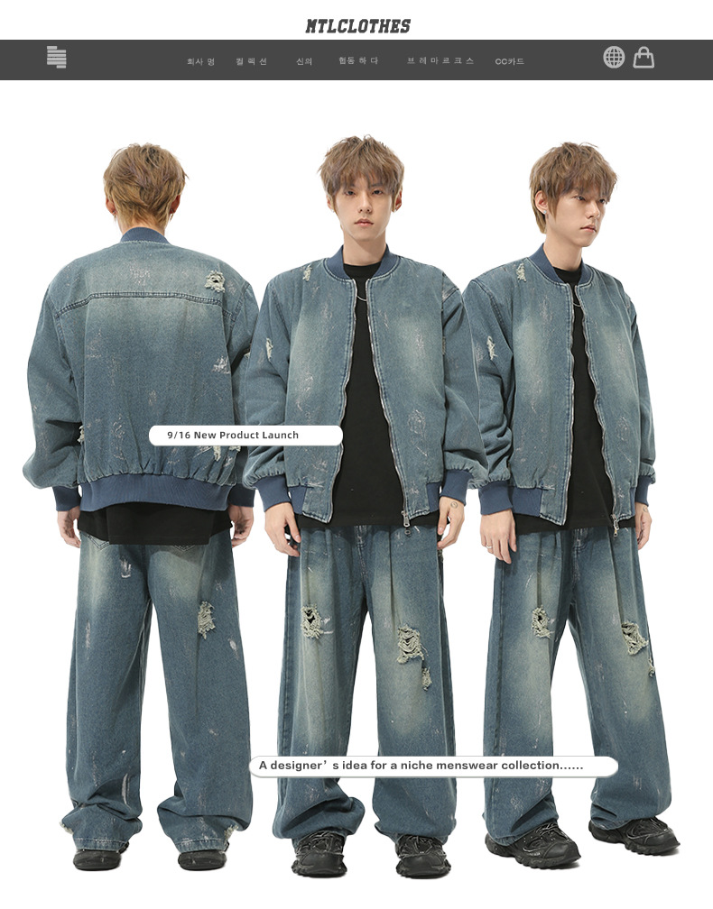 MTLCLOTHES Hombres| Nuevos productos de otoño retro estadounidenses lavado con agua para hacer viejos trajes de vaqueros de moda casuales