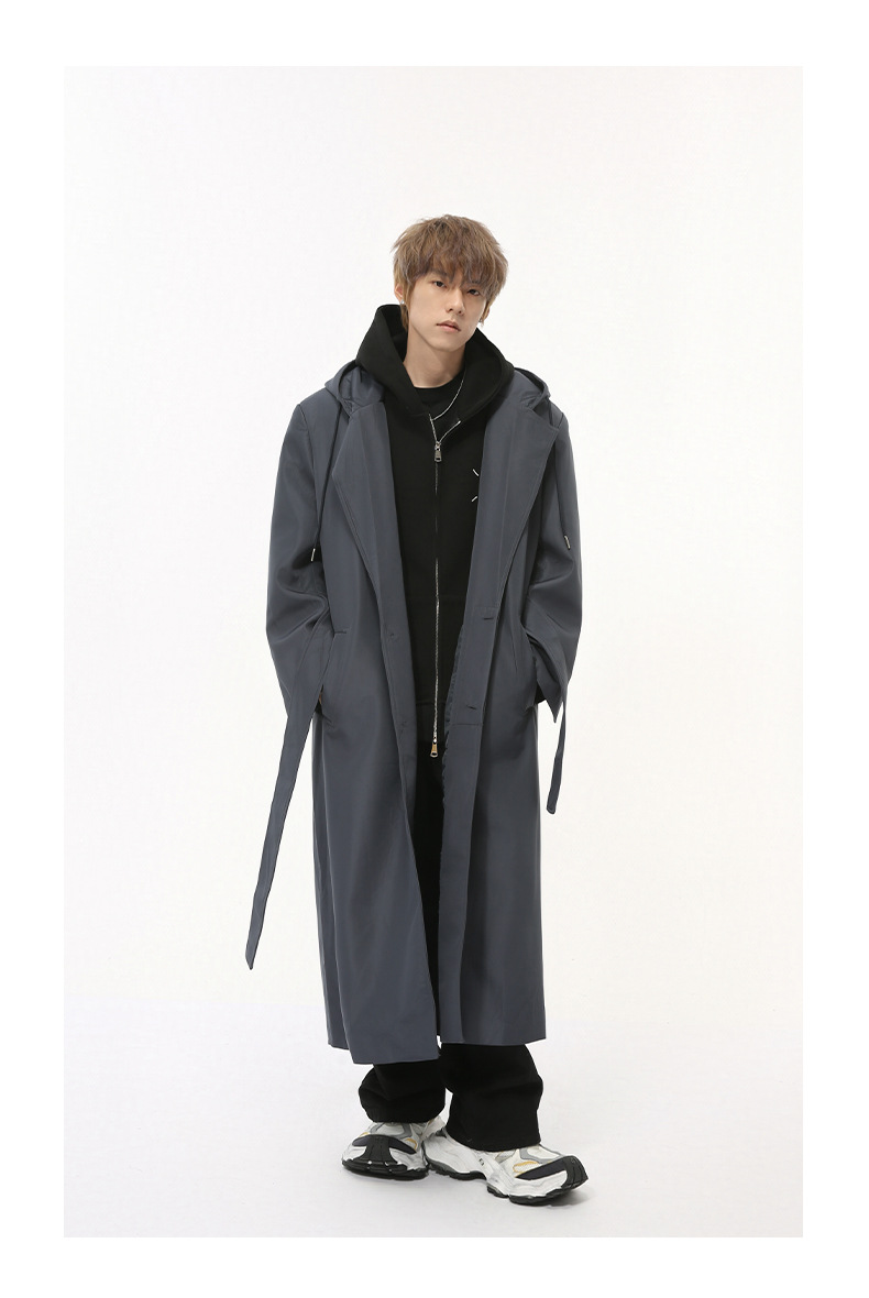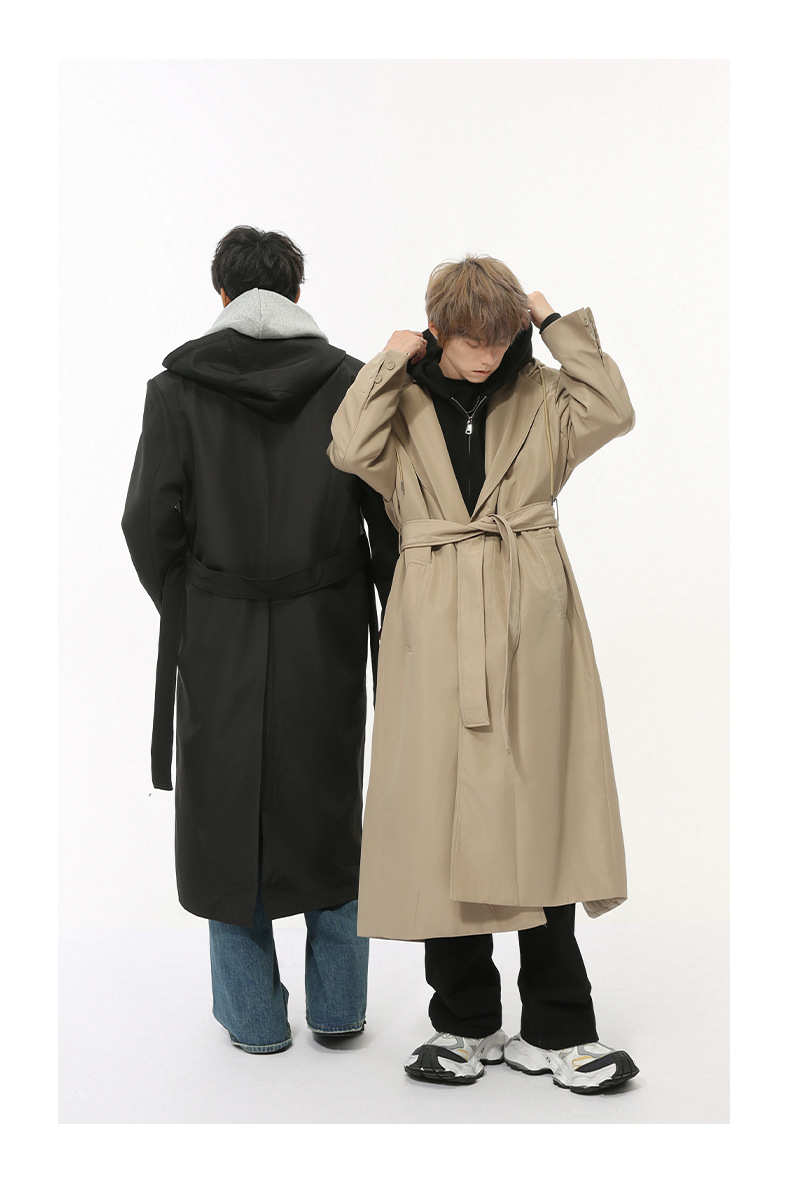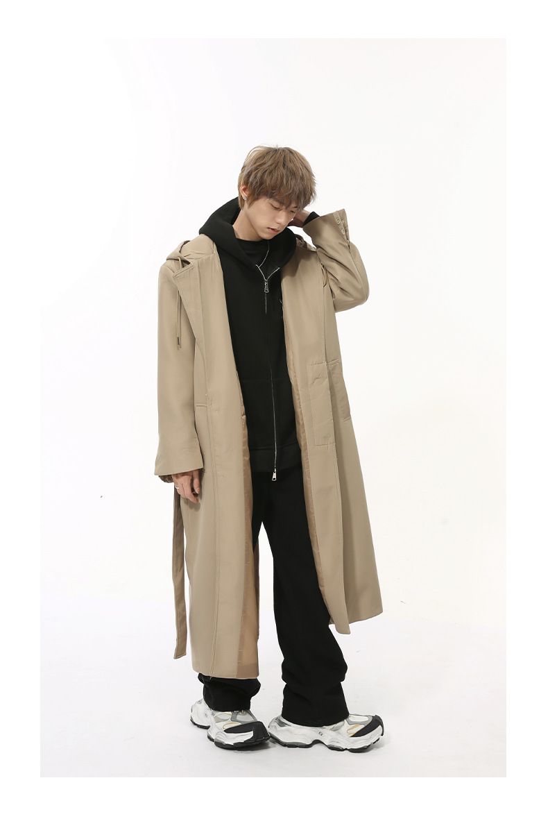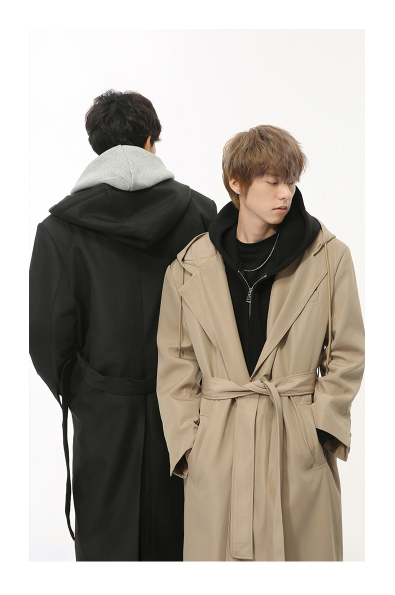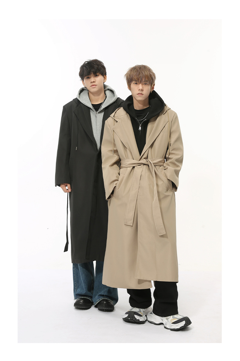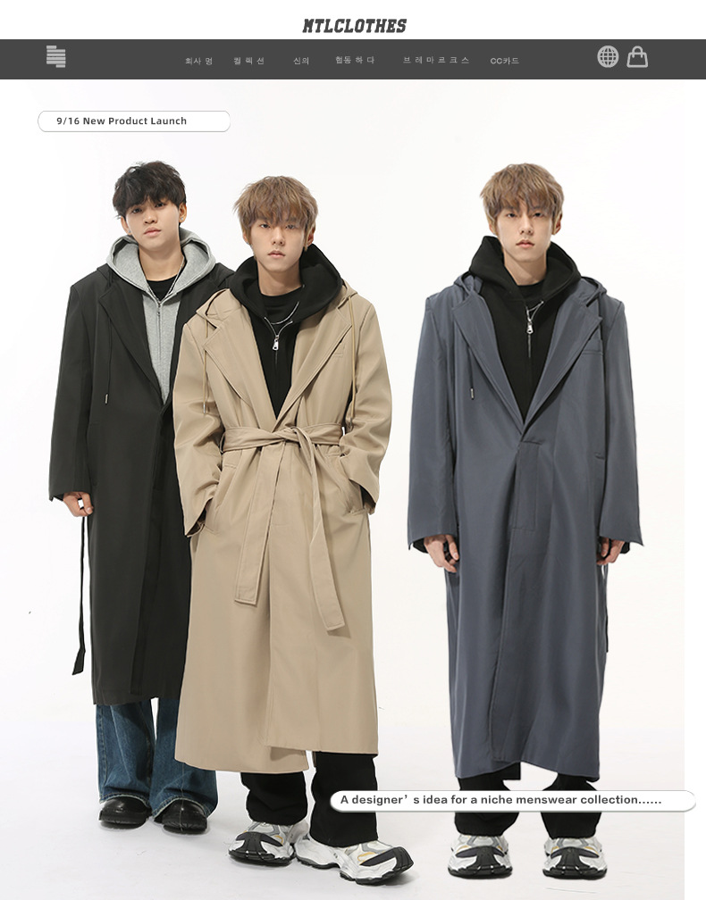 MTLCLOTHES Hombres| Nuevos productos de otoño coreanos temperamento simple sobre la rodilla correa de hombro abrigo casual