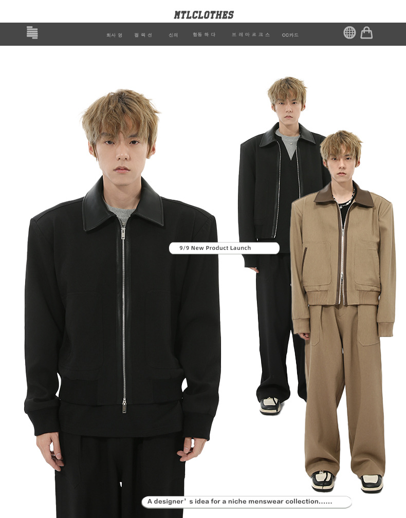 MTLCLOTHES para hombre | Nuevos productos de otoño Chaqueta de solapa con costuras de lujo ligero coreano Uniformes Traje suelto casual