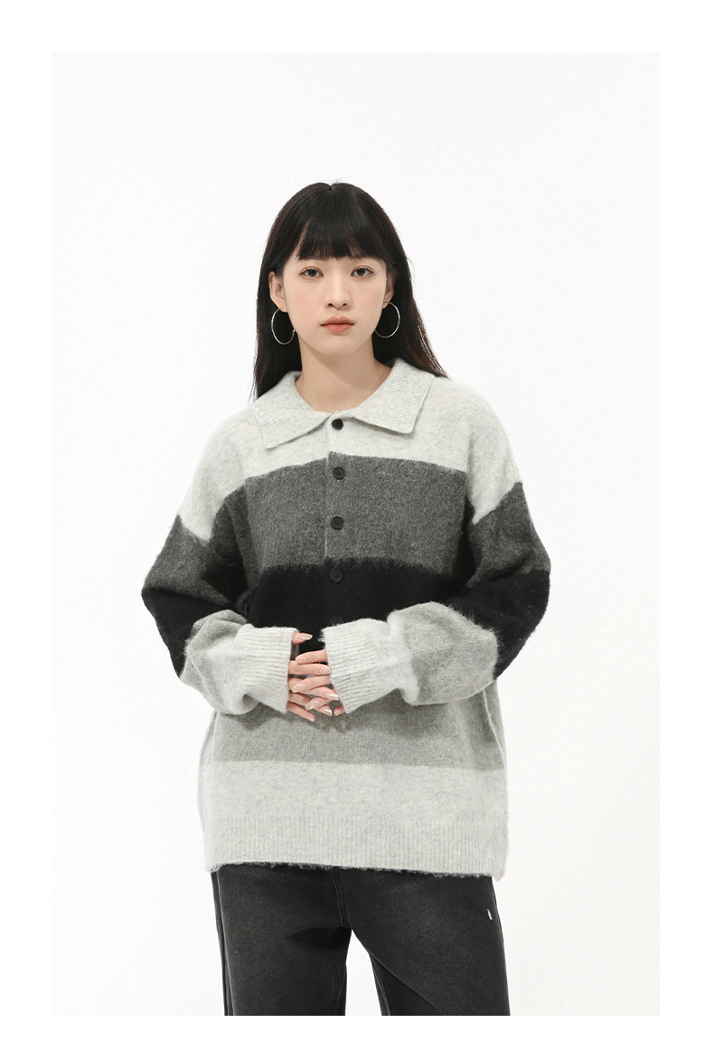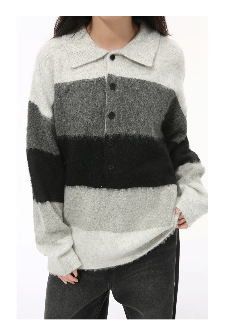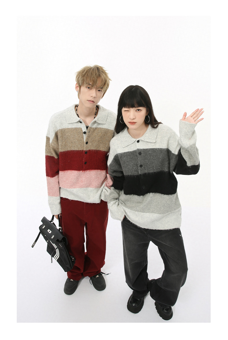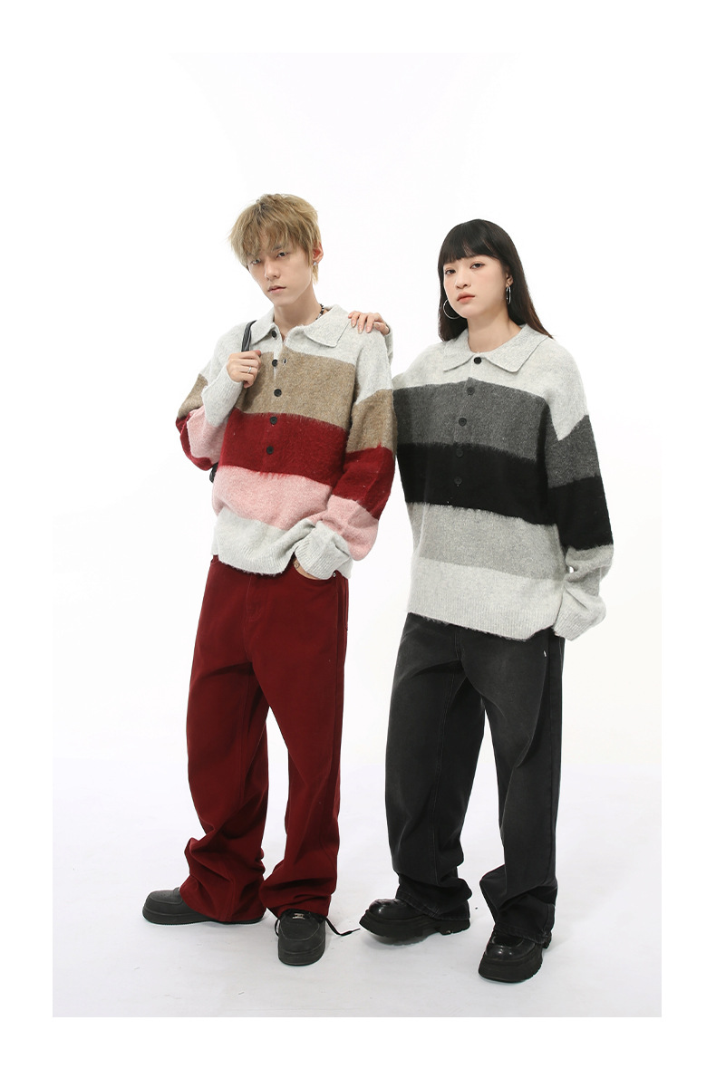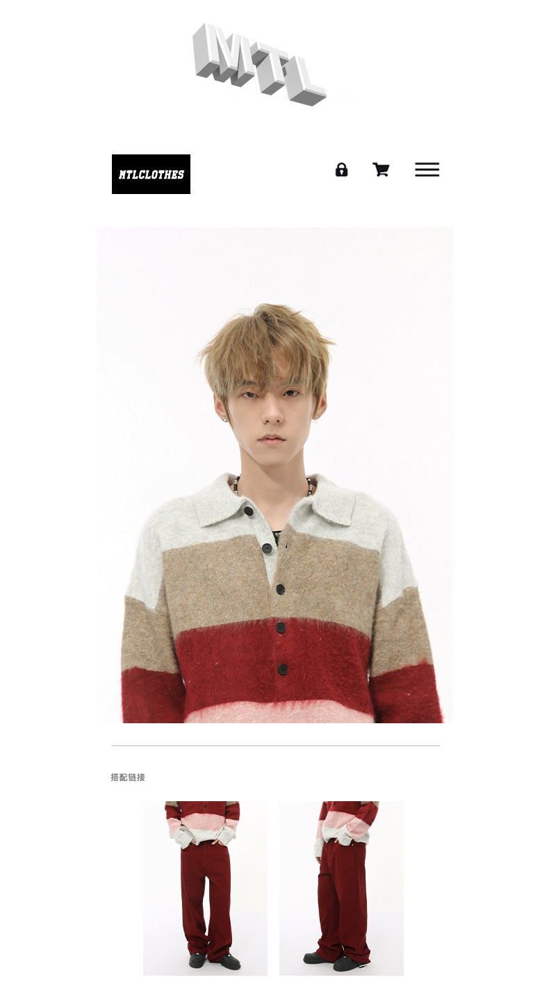 MTLCLOTHES Hombres| Nuevo otoño nicho de color a rayas gruesas retro solapa polo camisa de punto superior