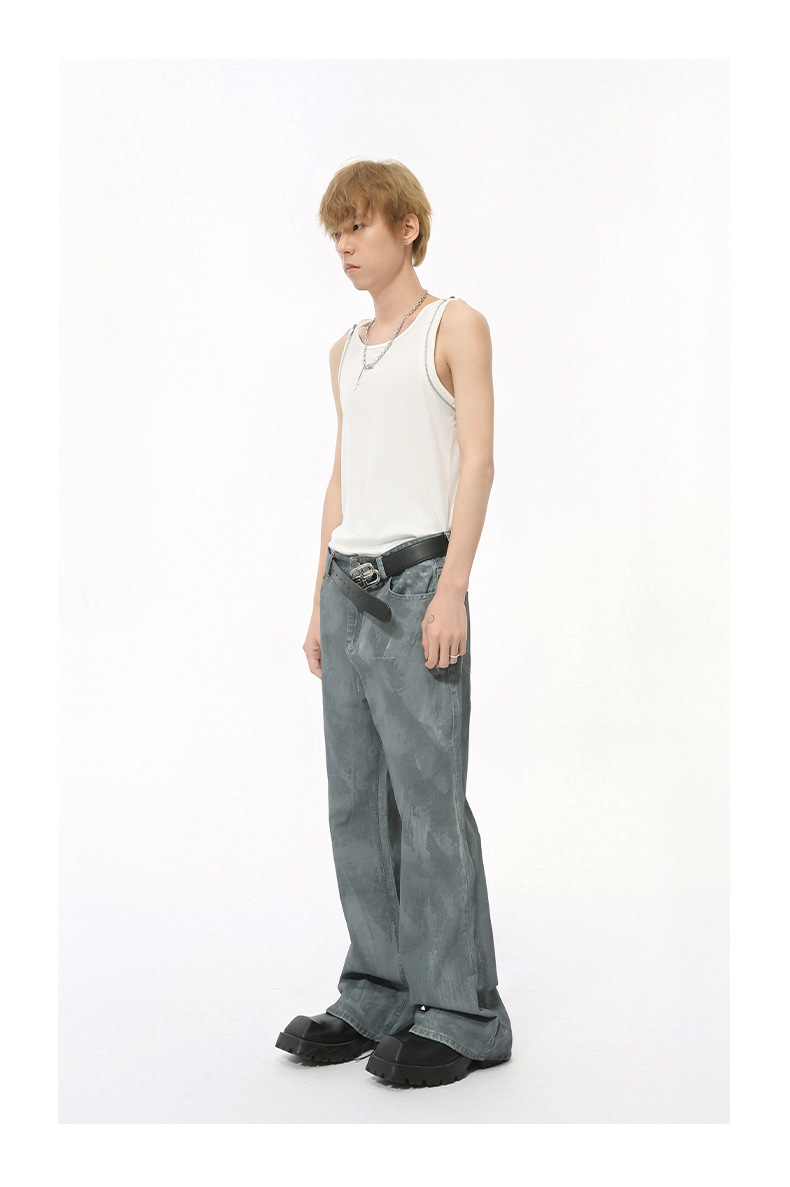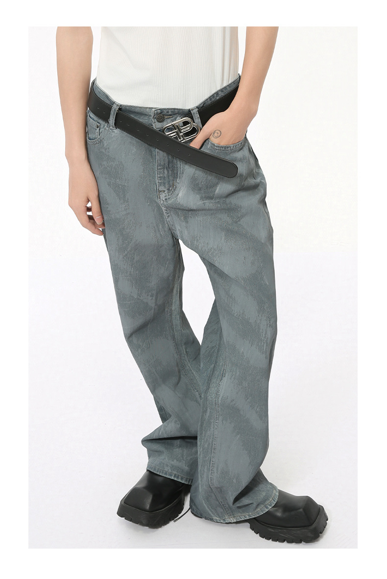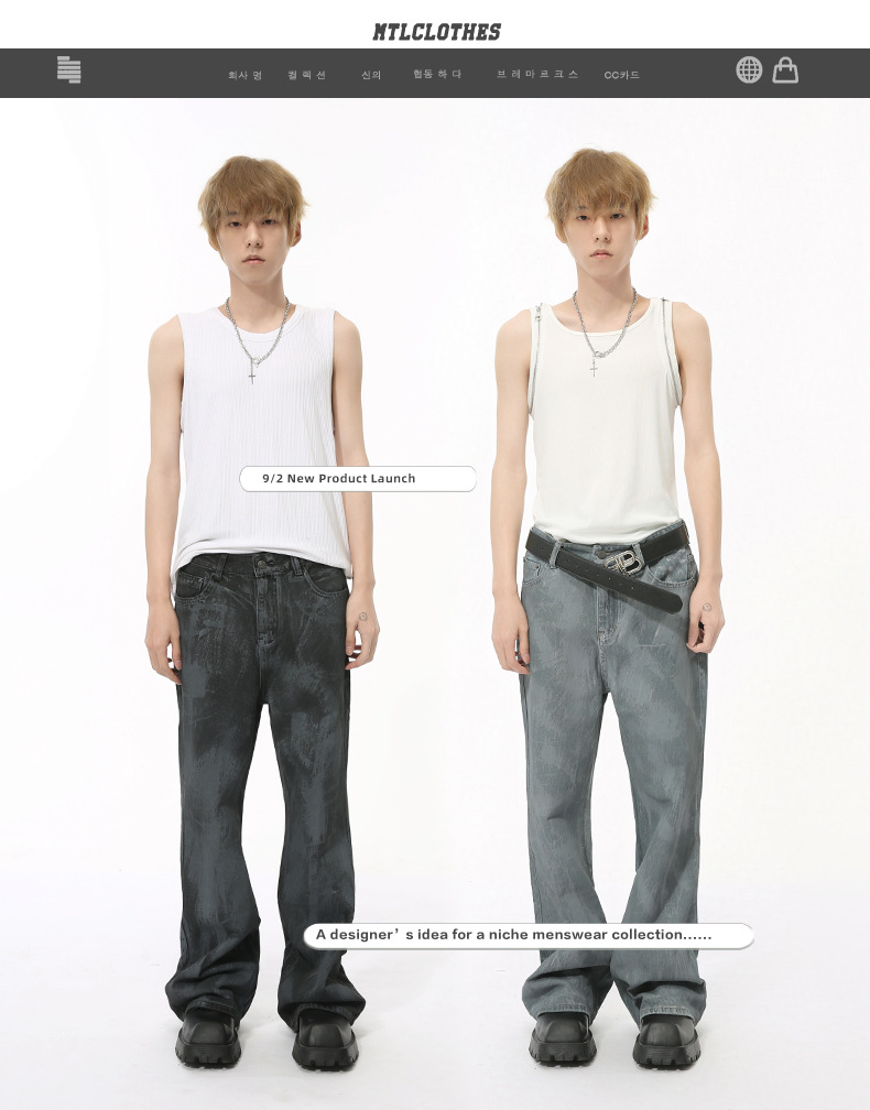 MTLCLOTHES Hombres| Otoño callejera recubrimiento de bocina jeans retro lavado suelto hacer viejos pantalones pintados