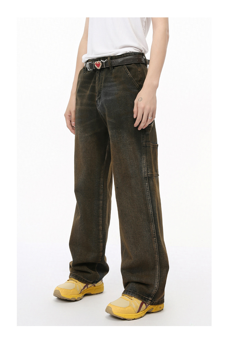 MTLCLOTHES Hombres| 2024 otoño nuevo producto americano High Street Retro herramientas jeans recto de moda casual