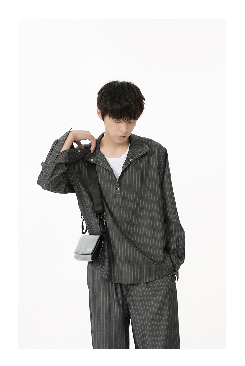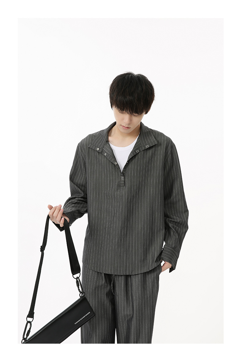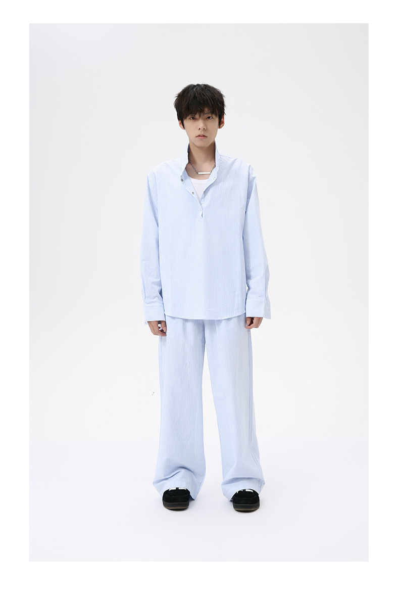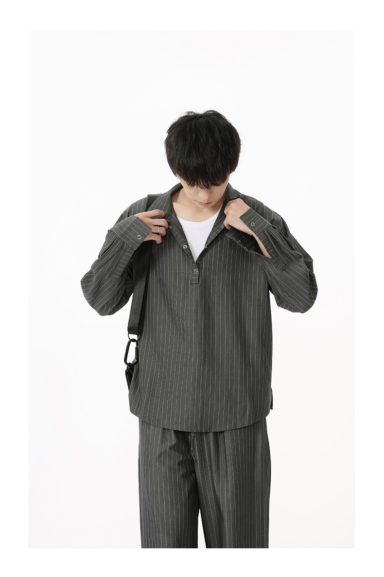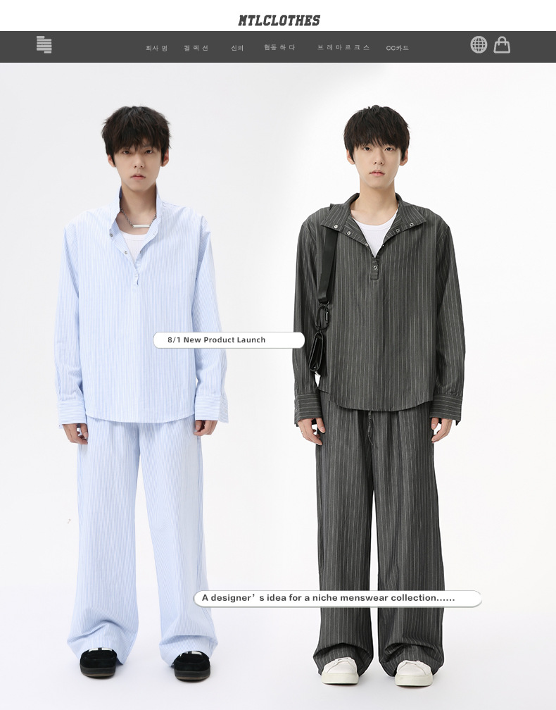 MTLCLOTHES Hombres| Camisas de cuello vertical a rayas coreanas, pantalones largos sueltos, moda de traje casual