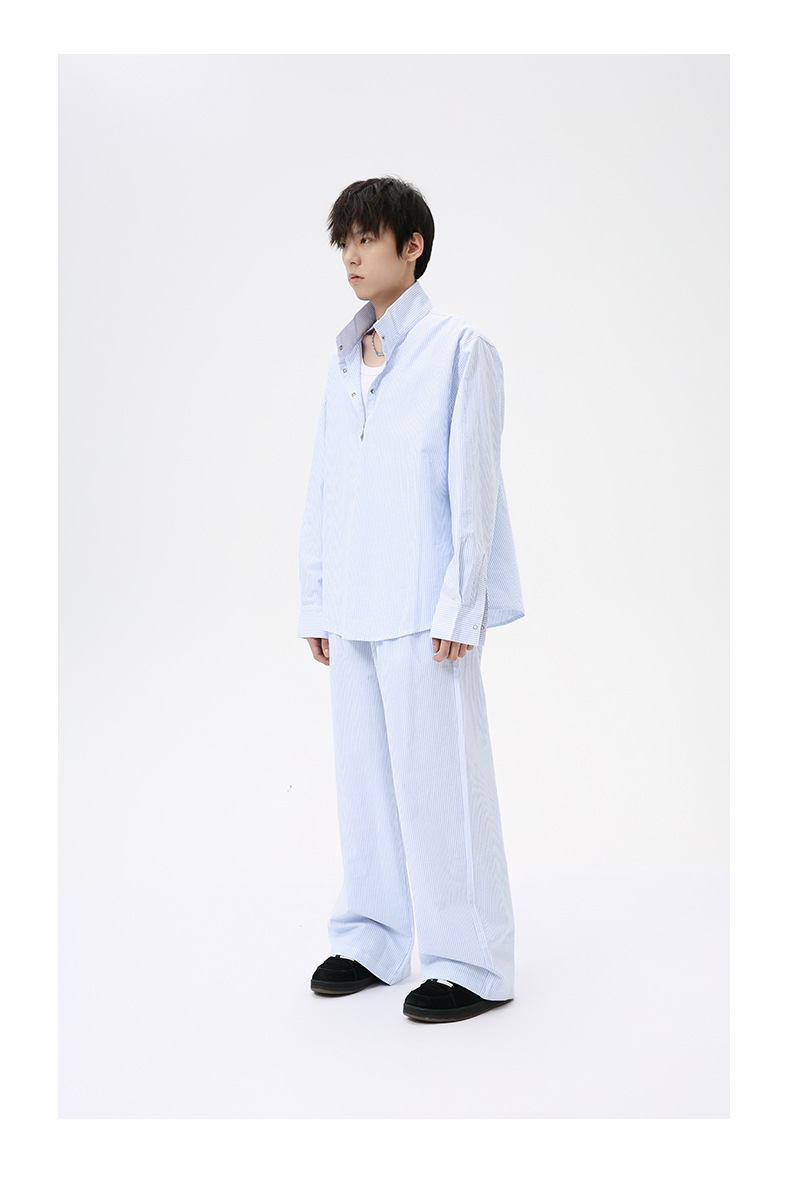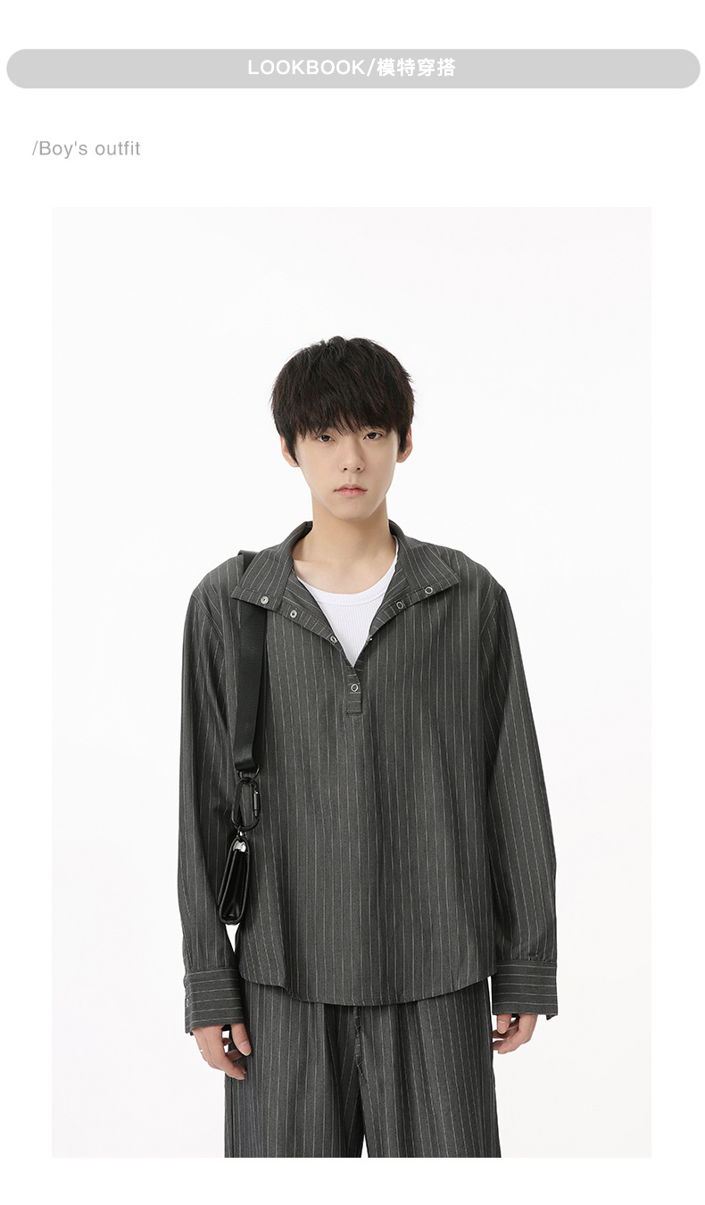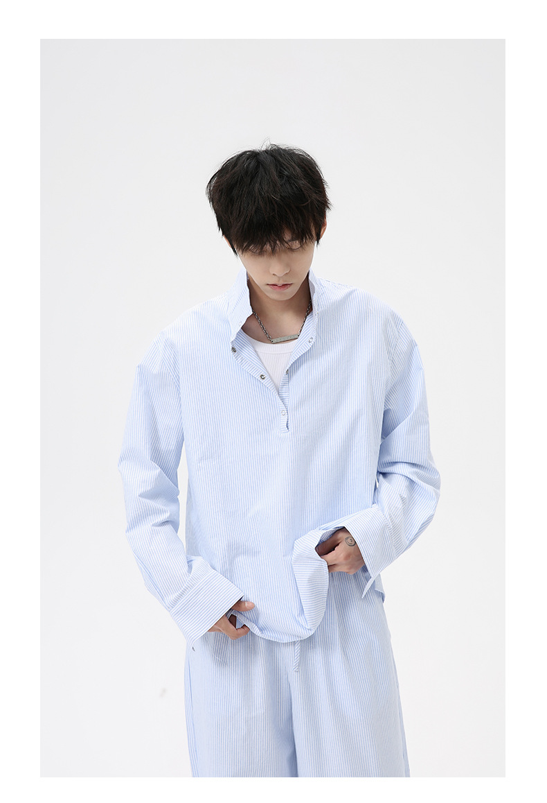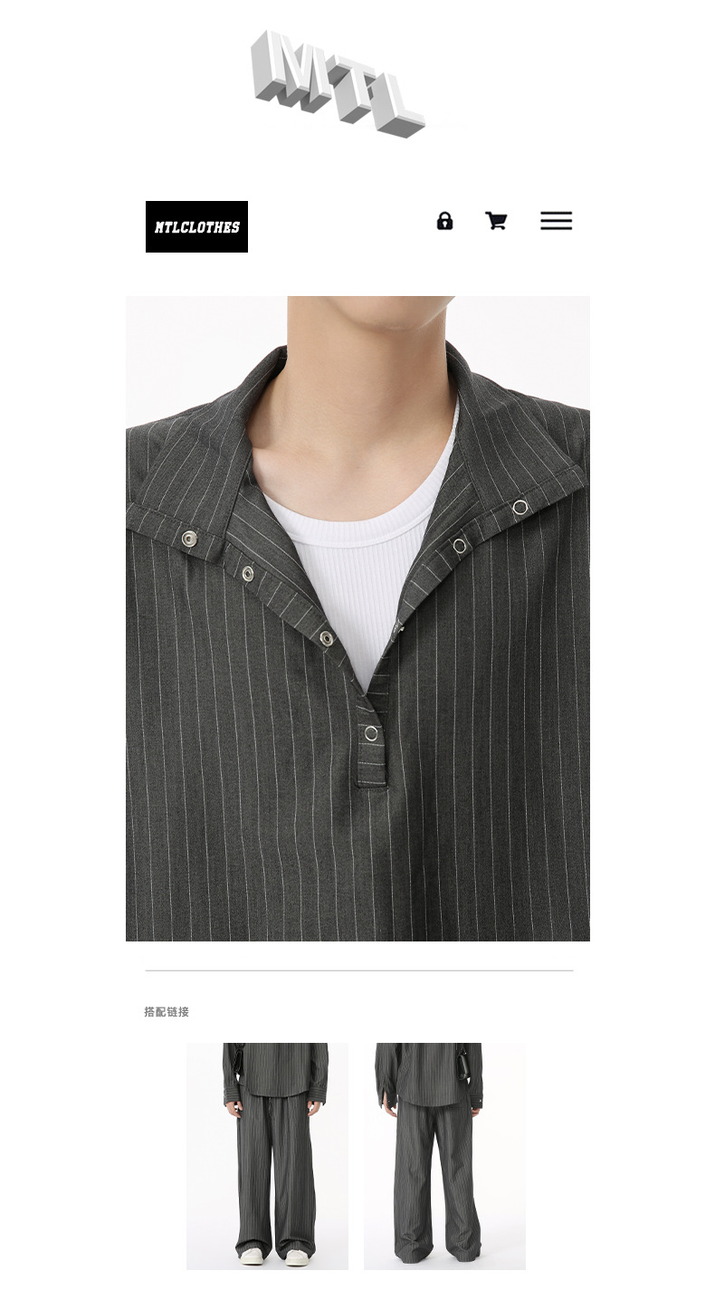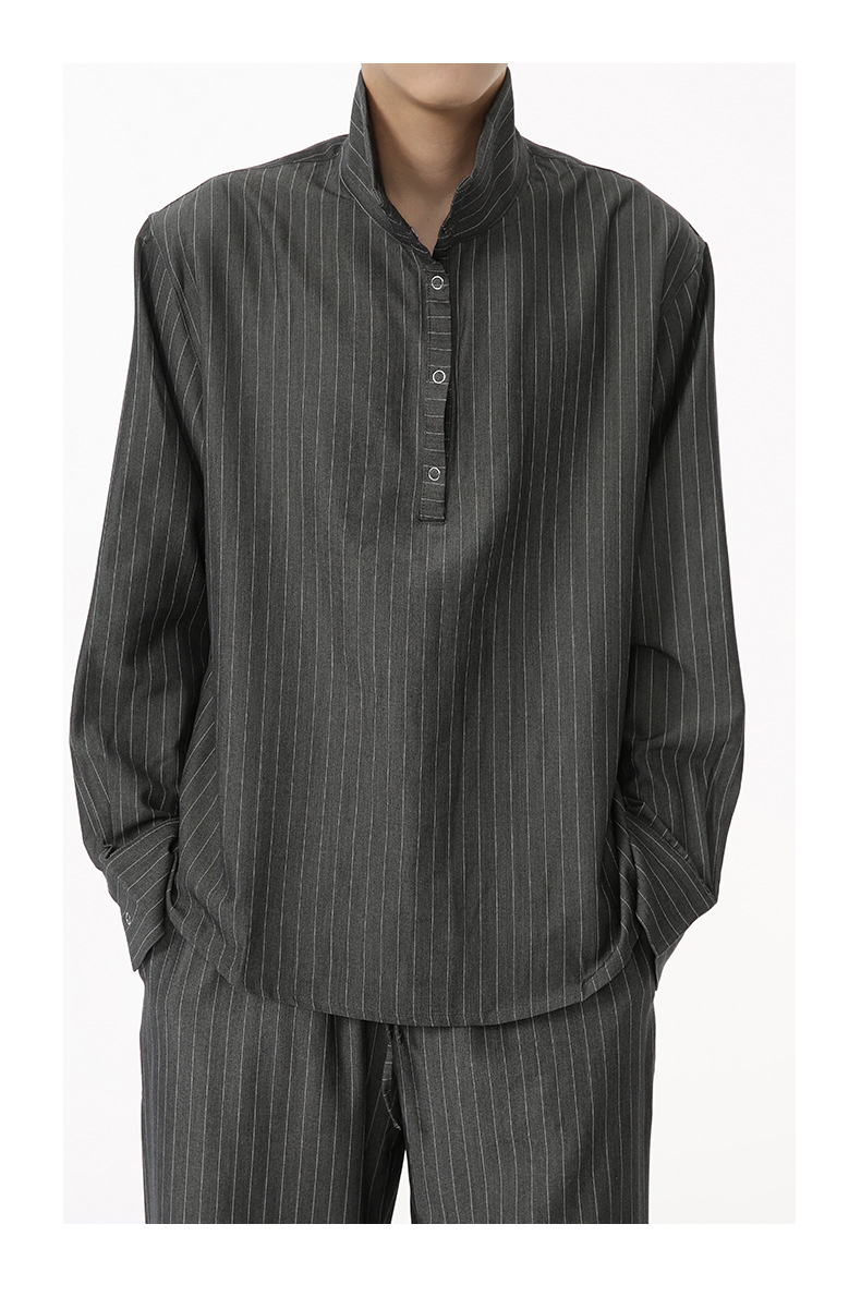 MTLCLOTHES Hombres| Camisas de cuello vertical a rayas coreanas, pantalones largos sueltos, moda de traje casual