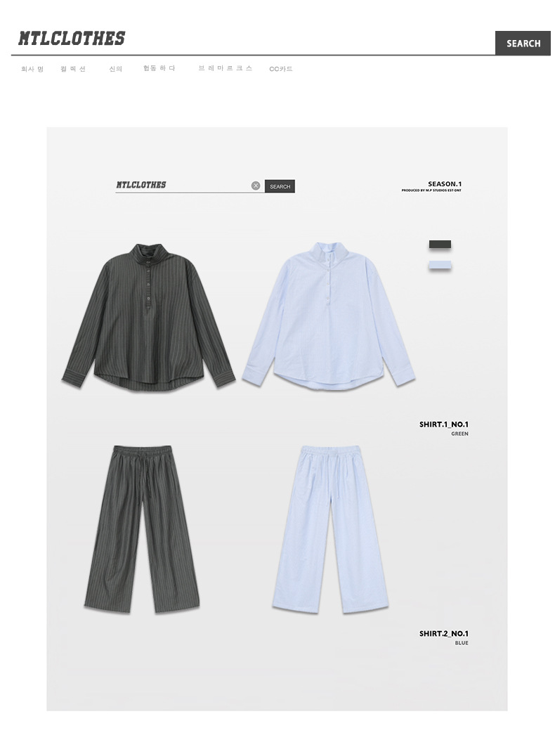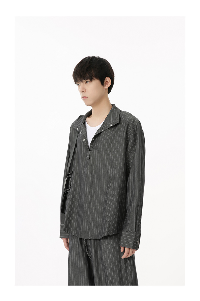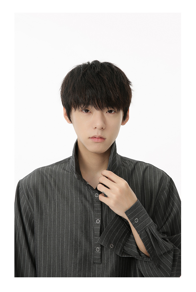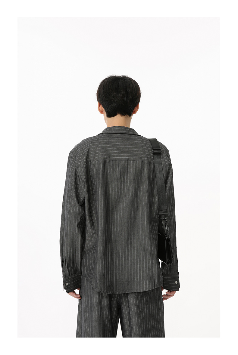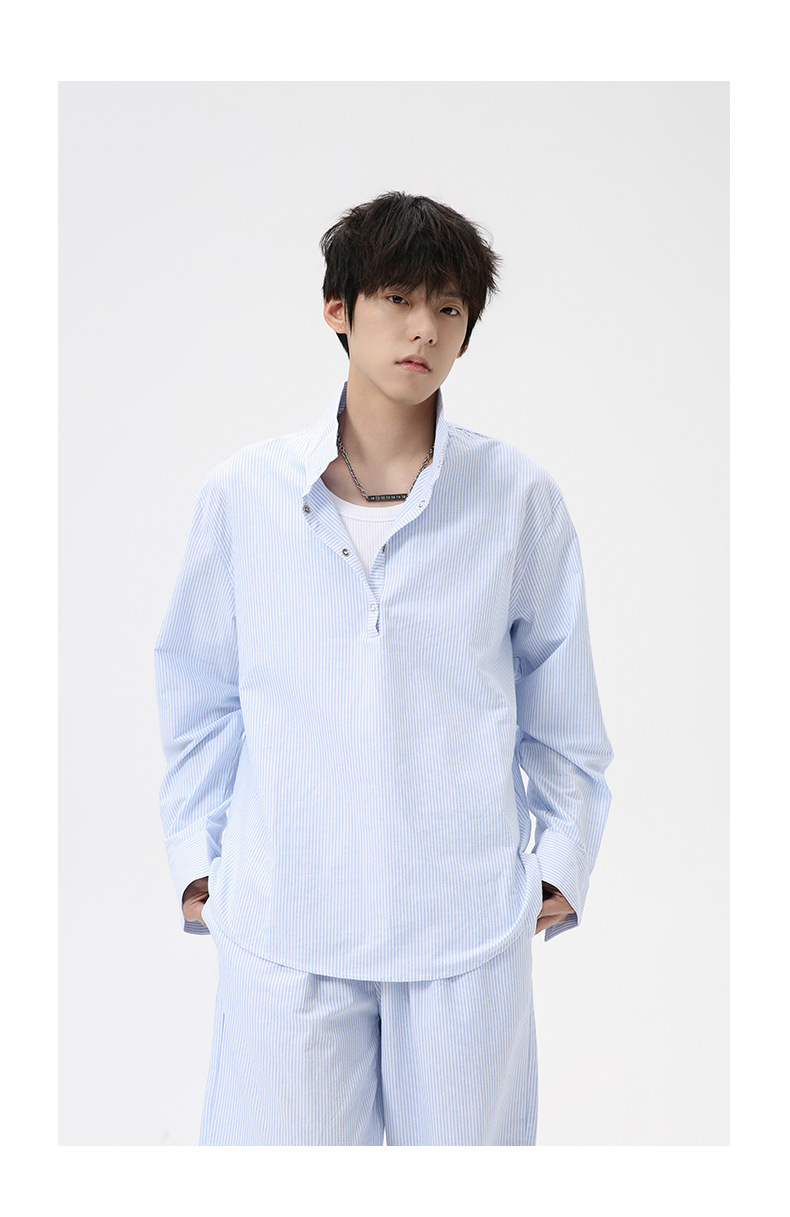 MTLCLOTHES Hombres| Camisas de cuello vertical a rayas coreanas, pantalones largos sueltos, moda de traje casual