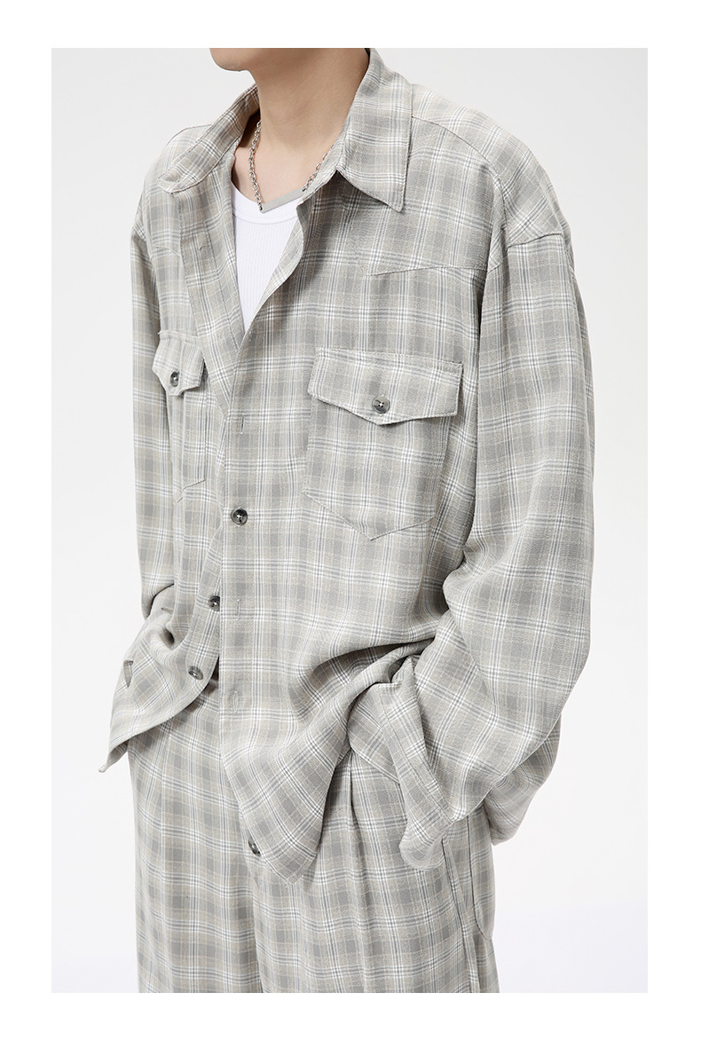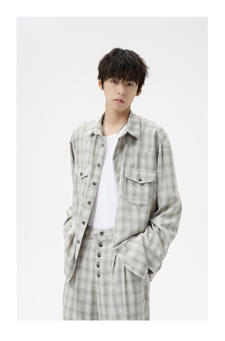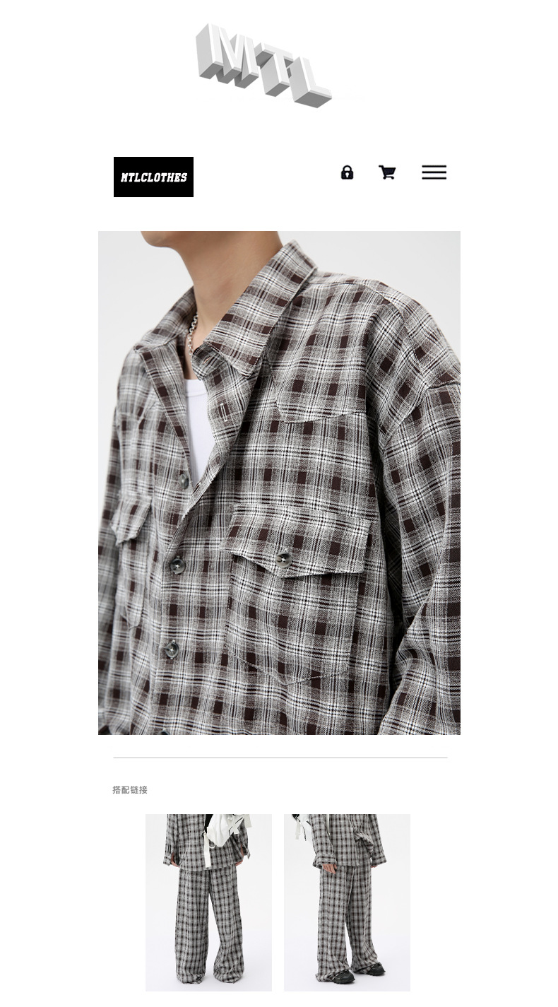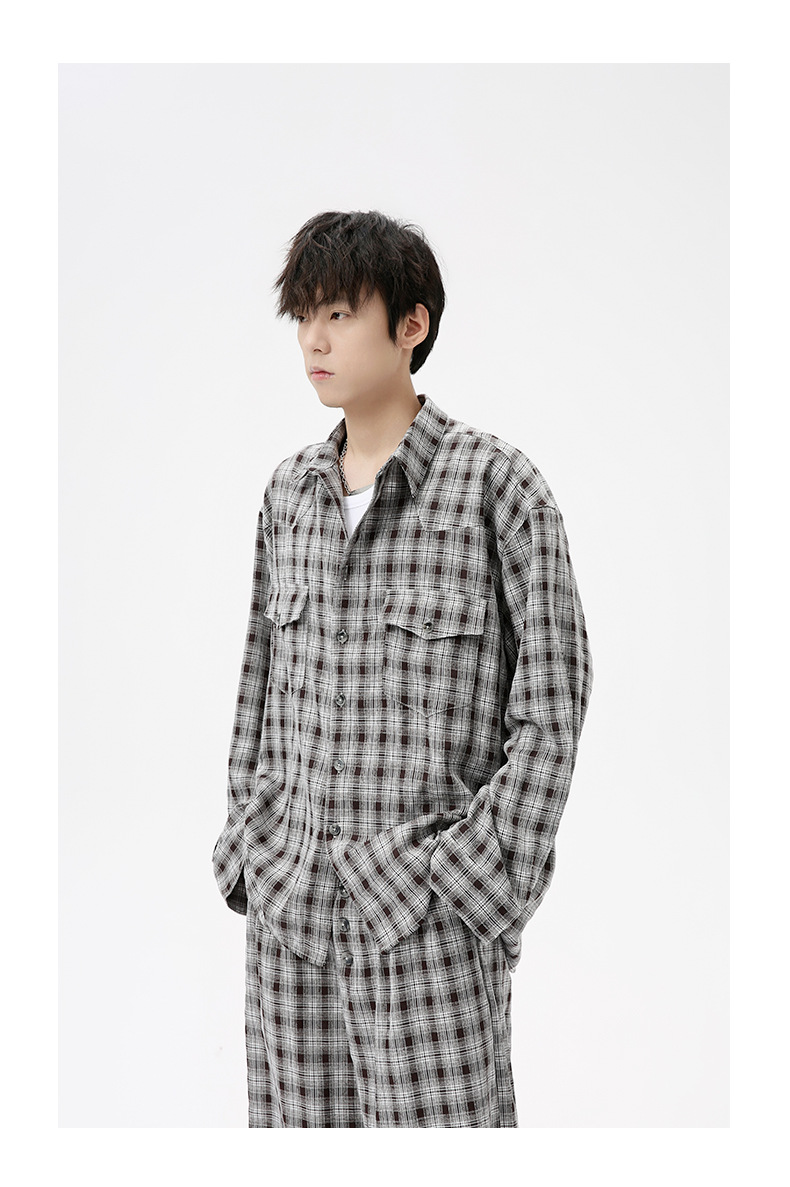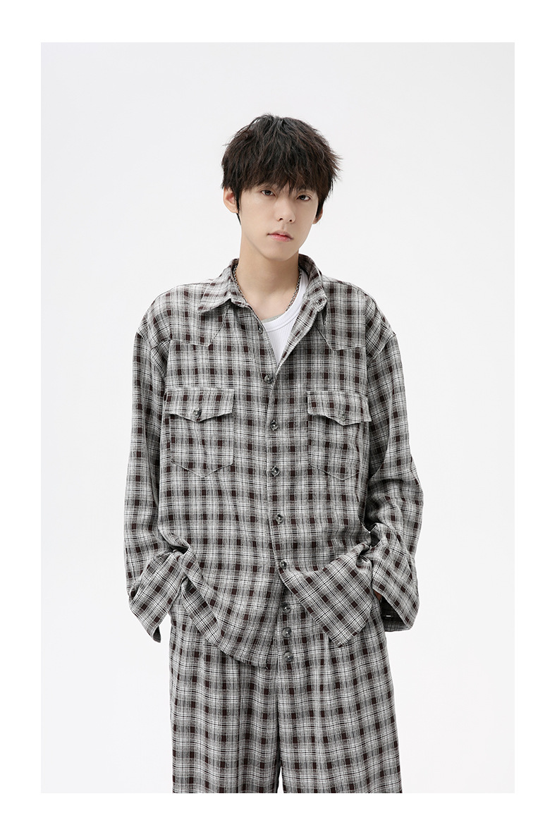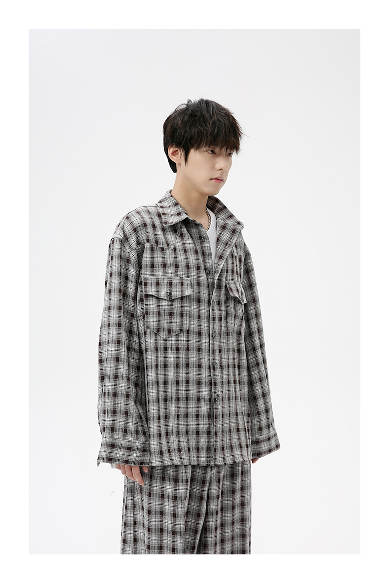 MTLCLOTHES Hombres| 2024 otoño nuevos productos coreanos retro cuello a cuadrícula camisa pantalones largos set casual