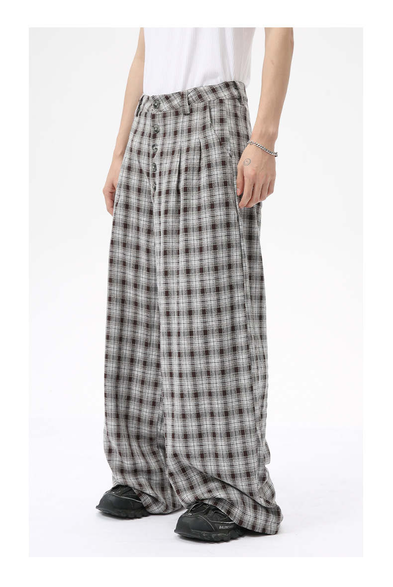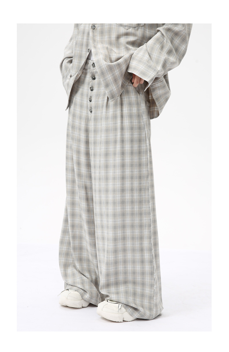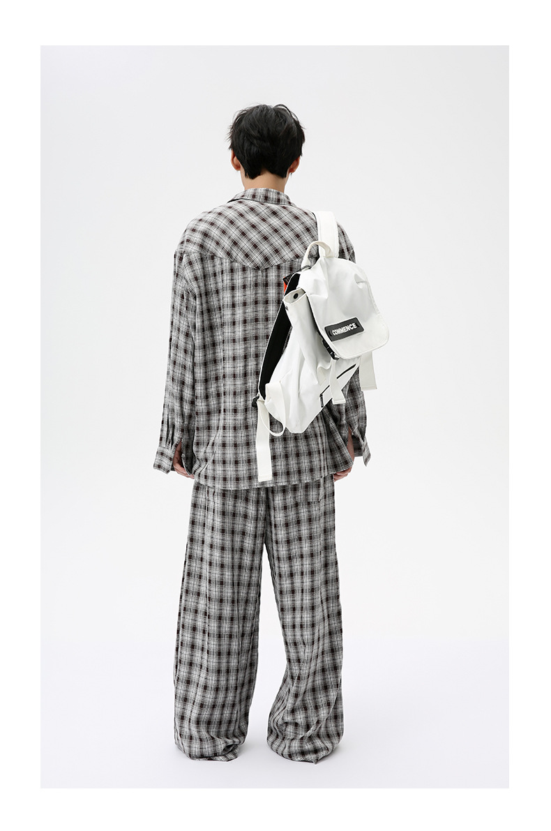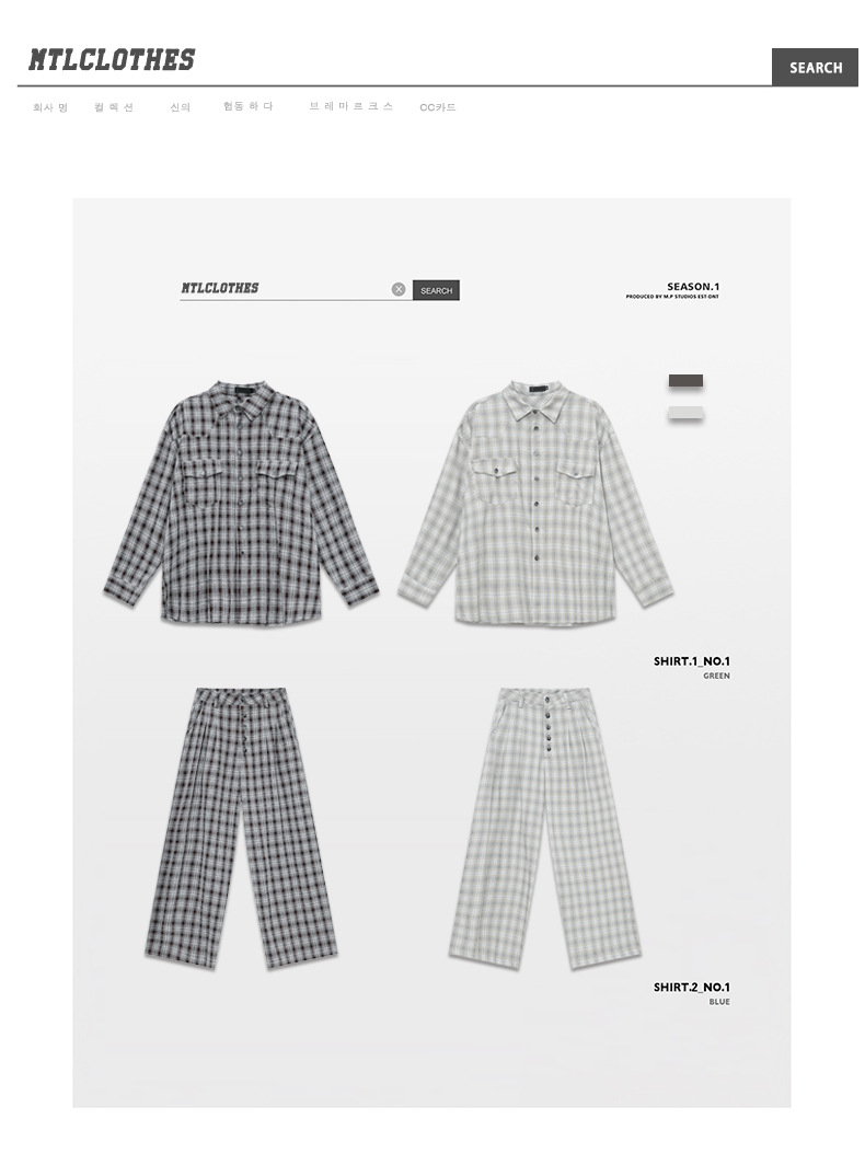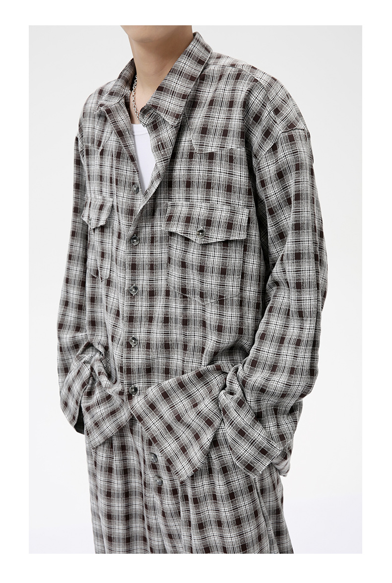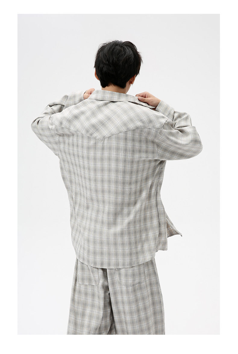 MTLCLOTHES Hombres| 2024 otoño nuevos productos coreanos retro cuello a cuadrícula camisa pantalones largos set casual