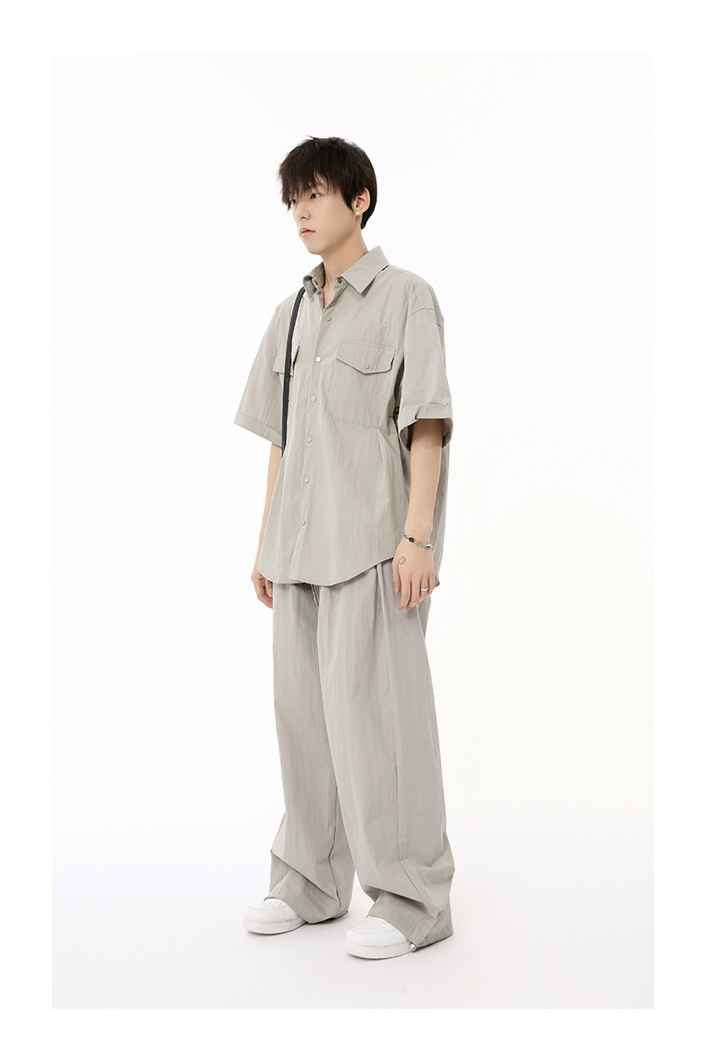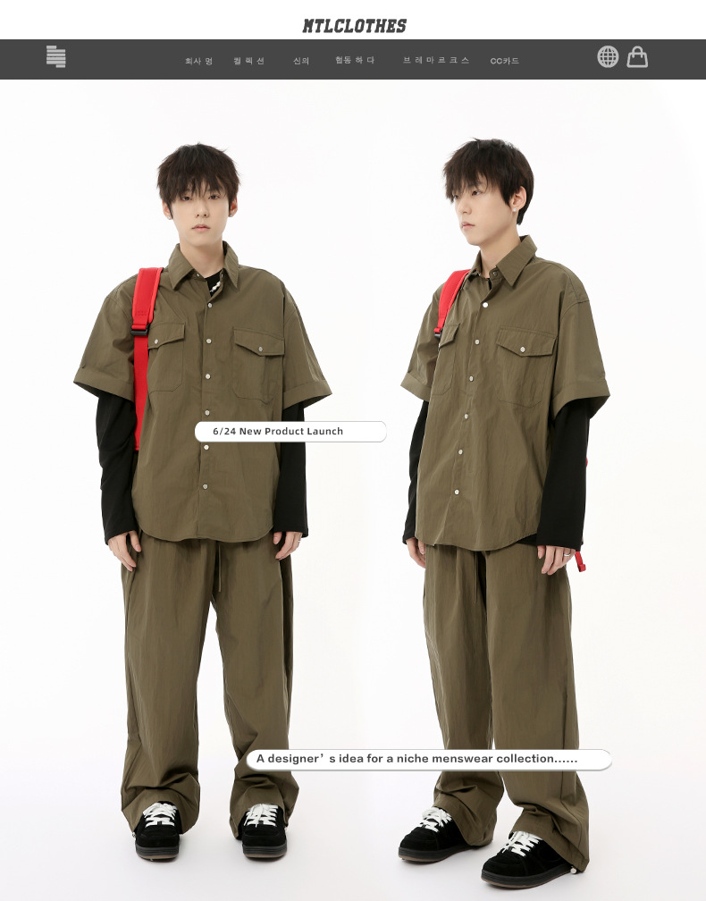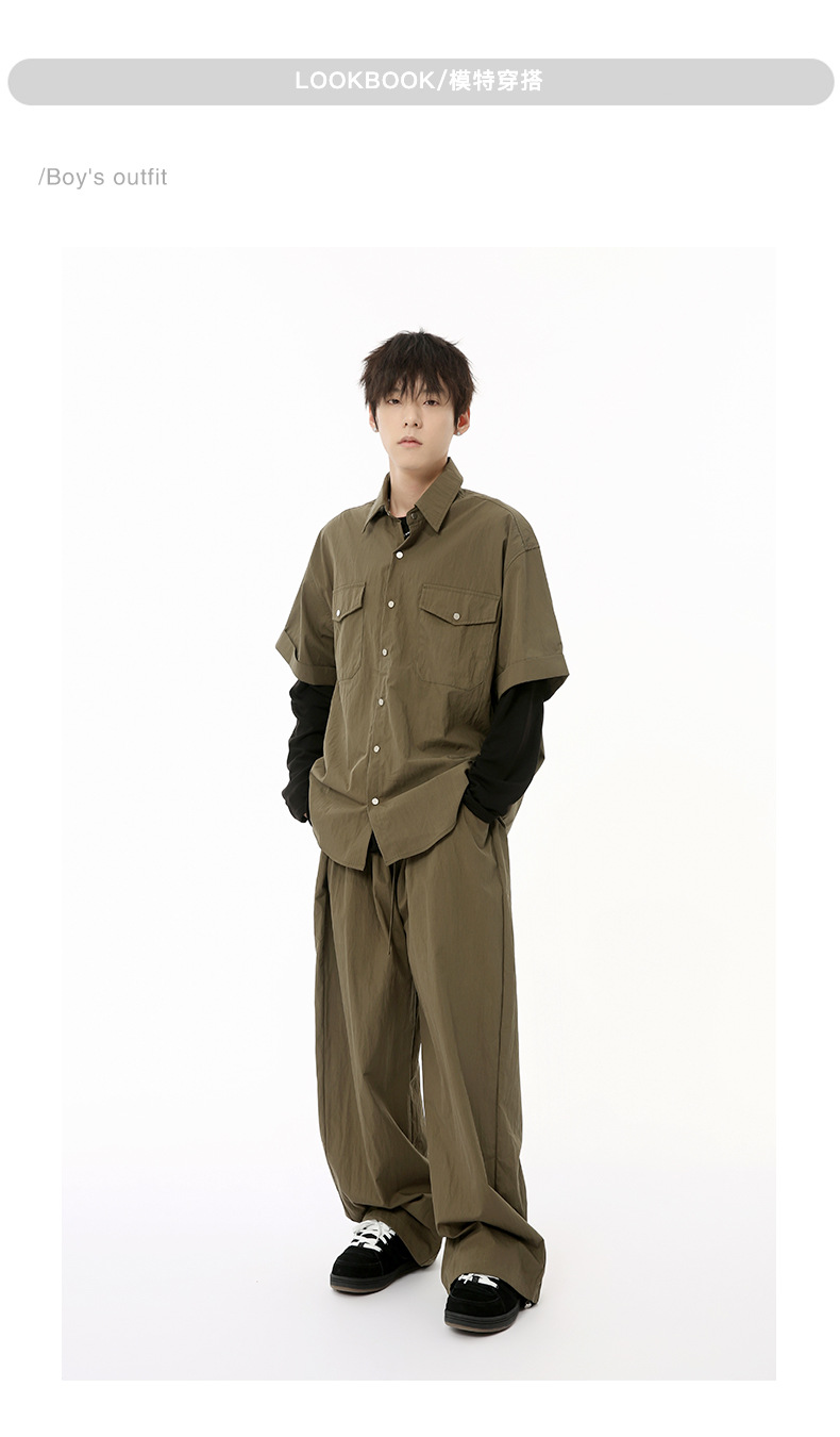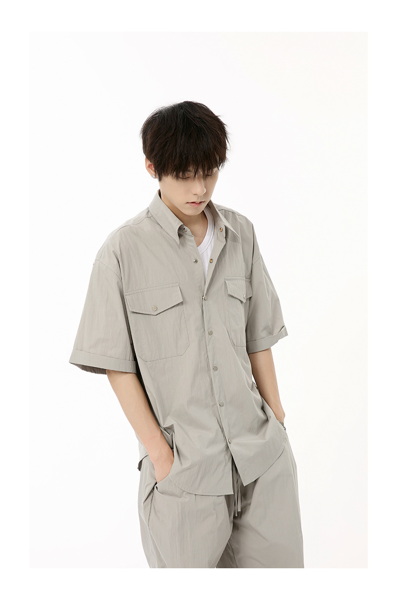 MTLCLOTHES Hombres| 2024 verano nuevos productos japoneses CityBoy herramientas camisa de color sólido conjunto casual