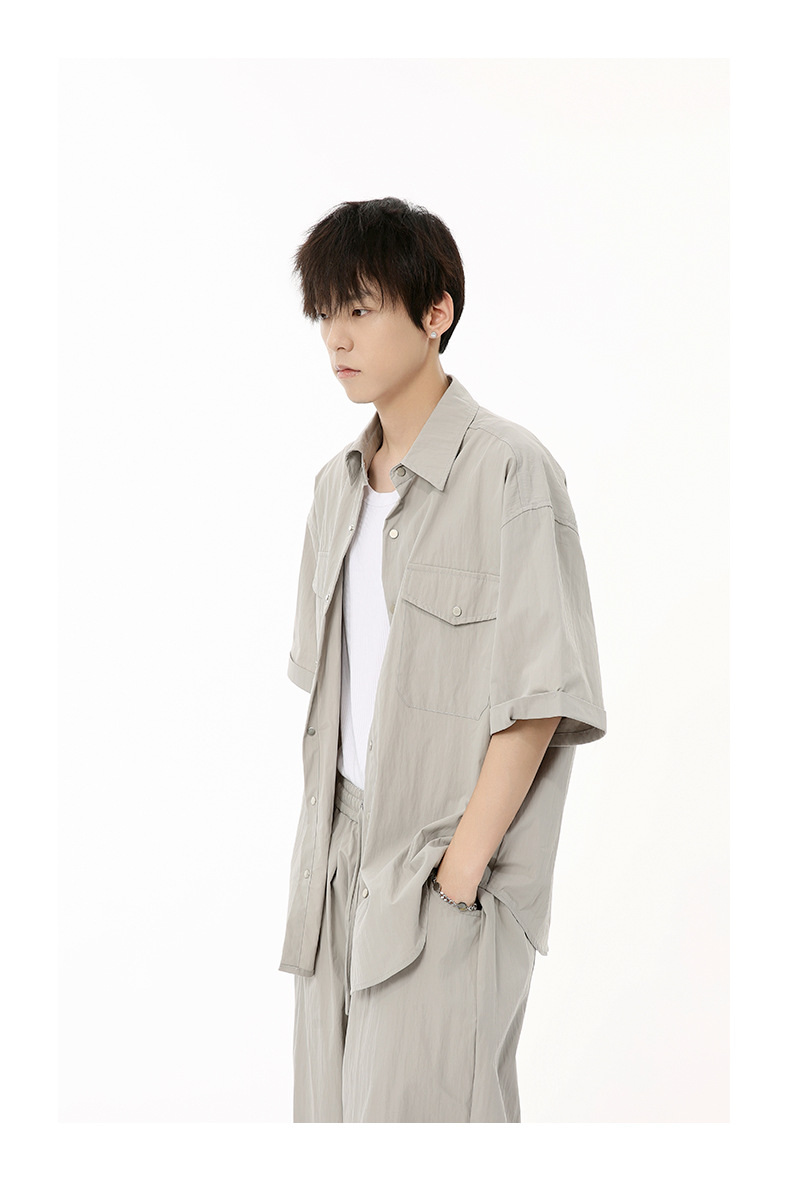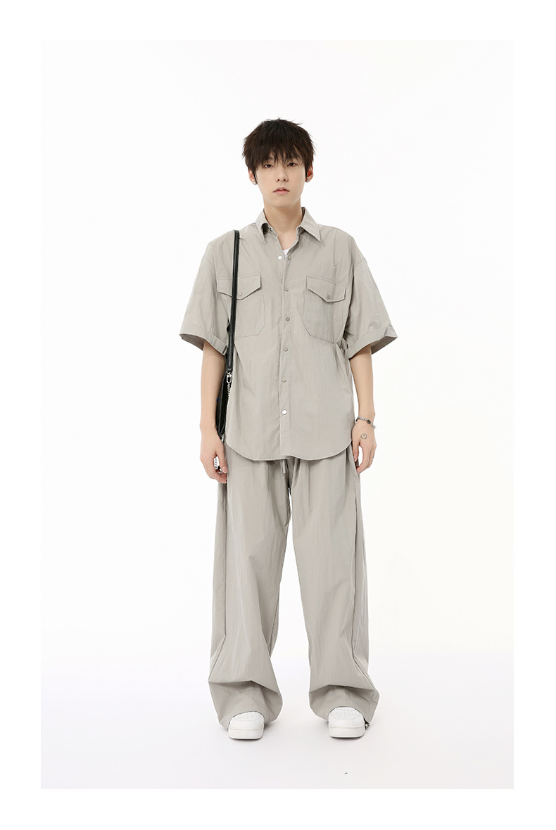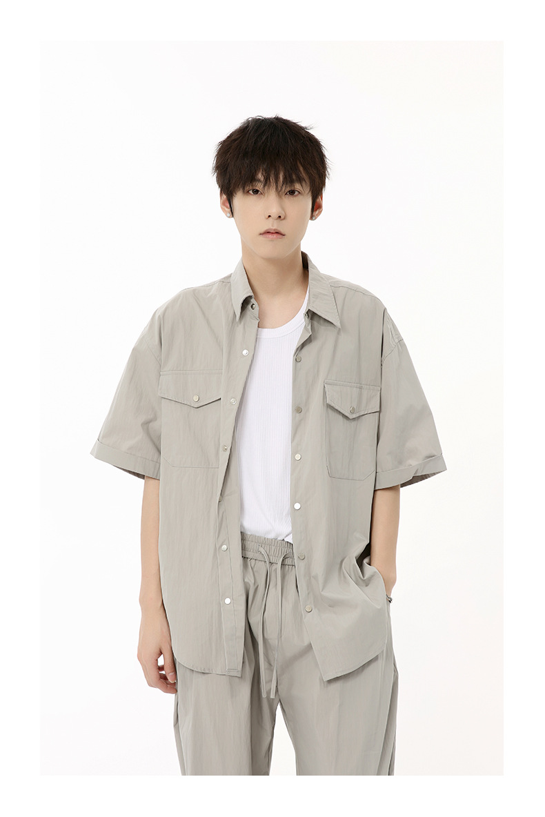 MTLCLOTHES Hombres| 2024 verano nuevos productos japoneses CityBoy herramientas camisa de color sólido conjunto casual
