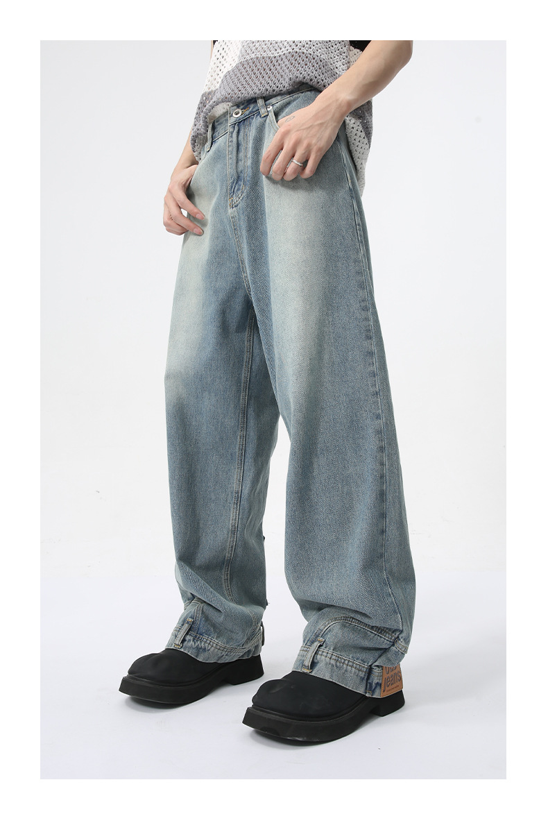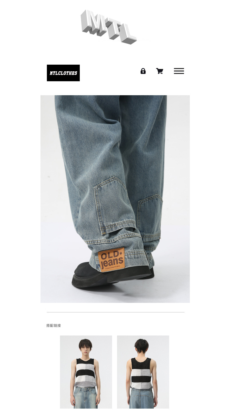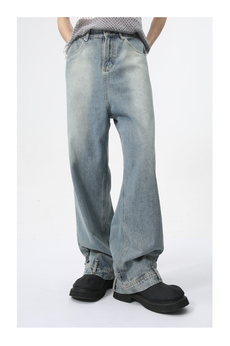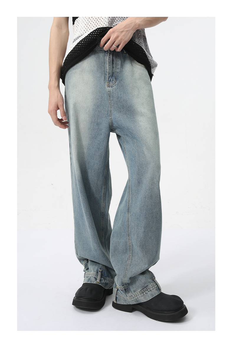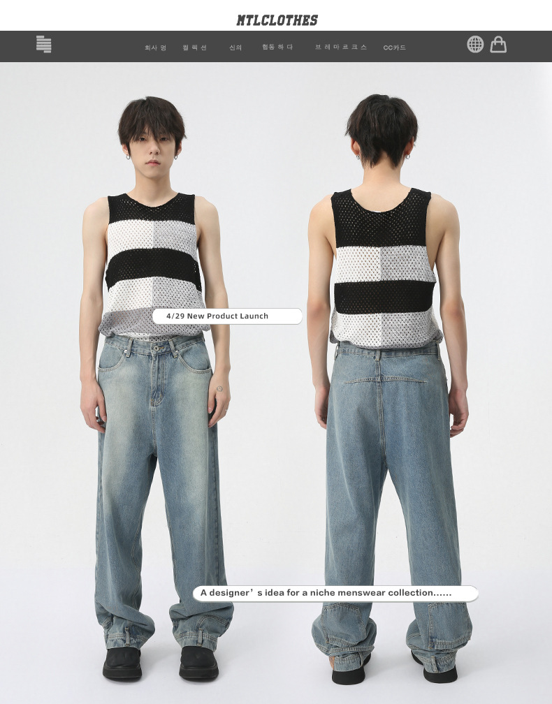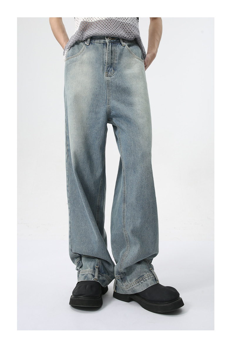 MTLCLOTHES Hombres| 2024 verano nuevo nicho de diseño de flip-flop sensación de jeans rectos sueltos