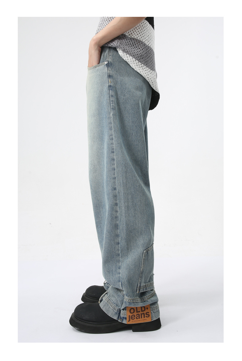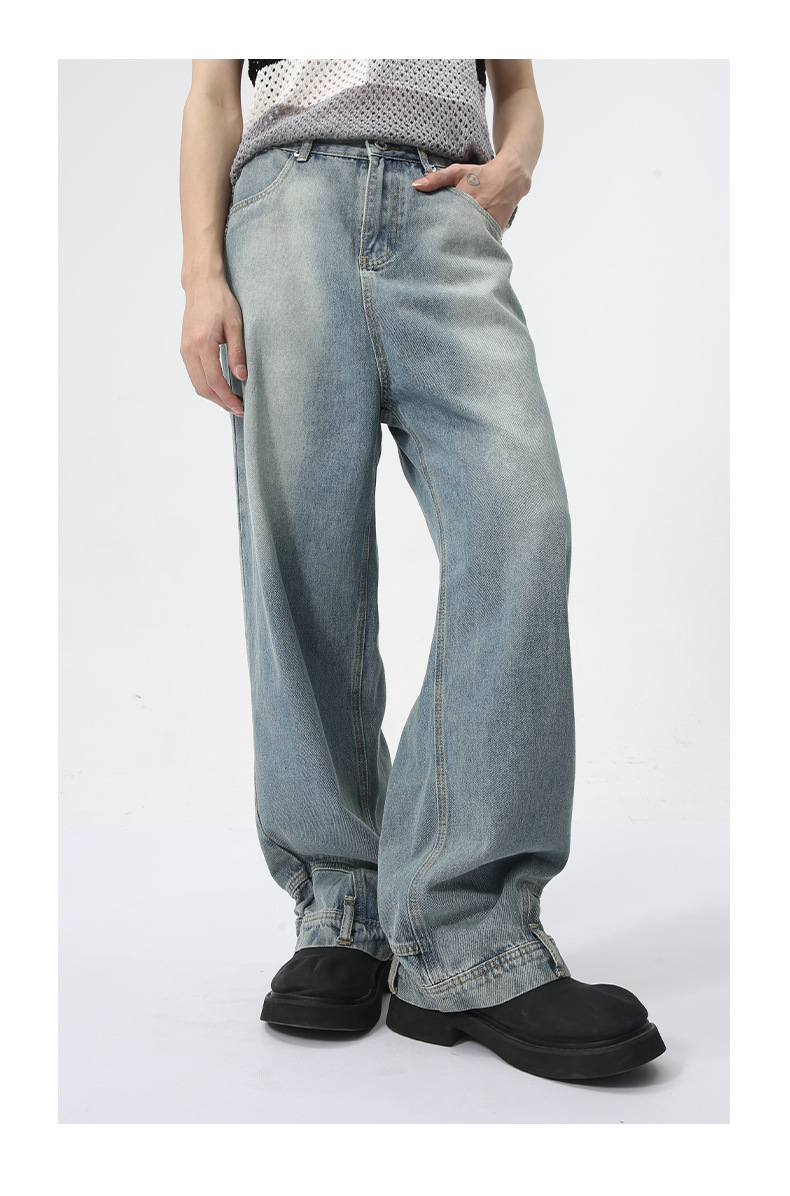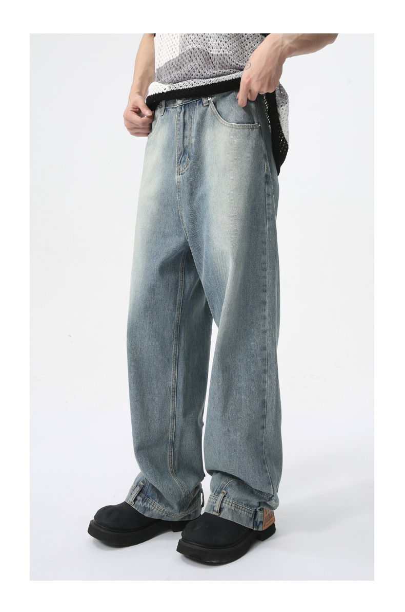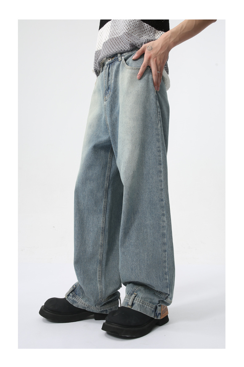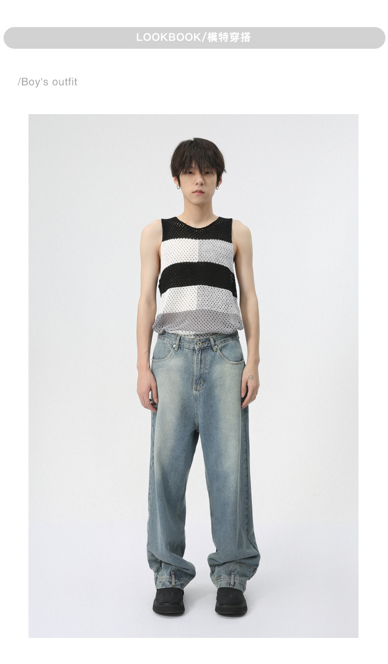 MTLCLOTHES Hombres| 2024 verano nuevo nicho de diseño de flip-flop sensación de jeans rectos sueltos