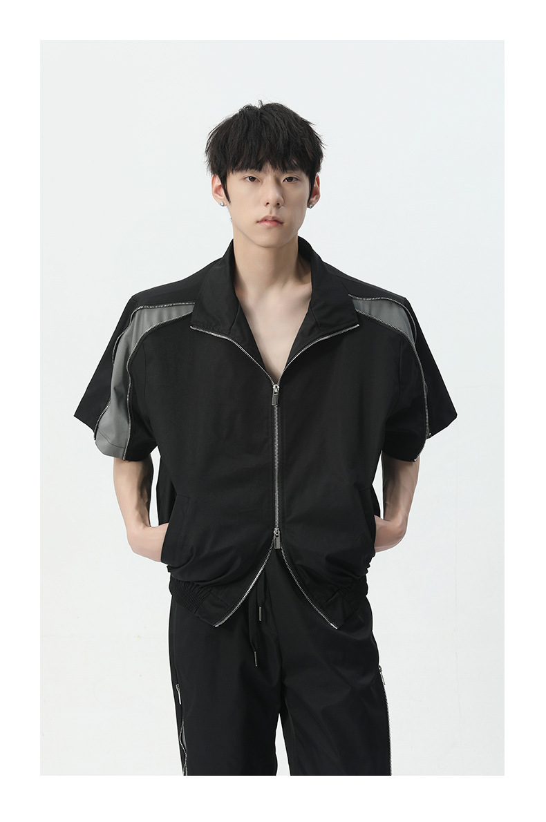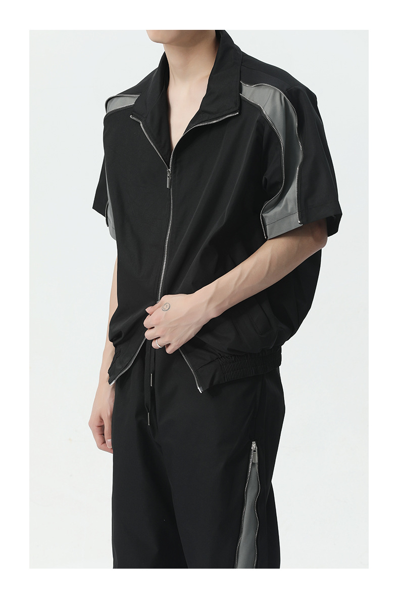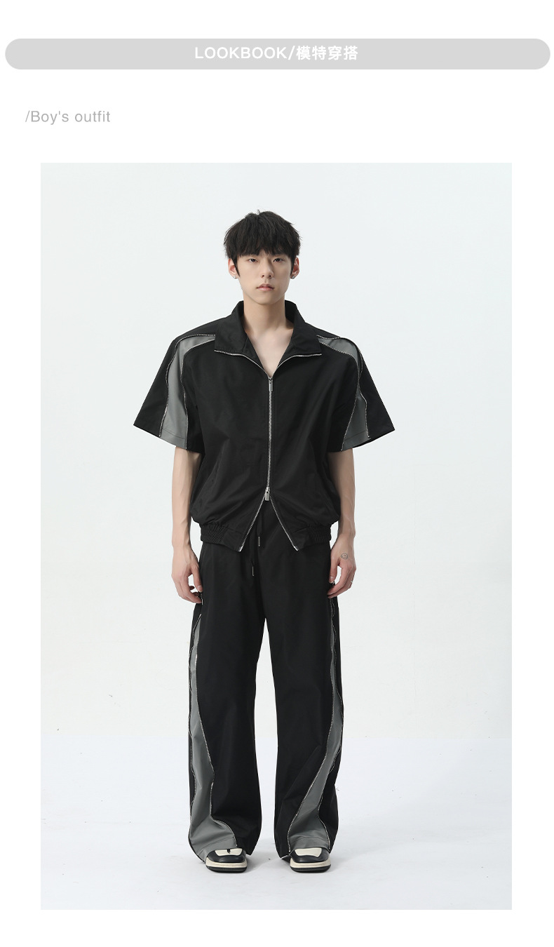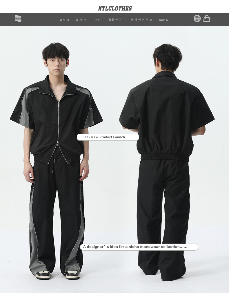 MTLCLOTHES Hombres| 2024 primavera nuevo diseño coreano de doble cremallera de color contrastante conjunto de ocio de alta calidad