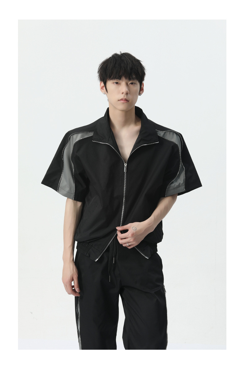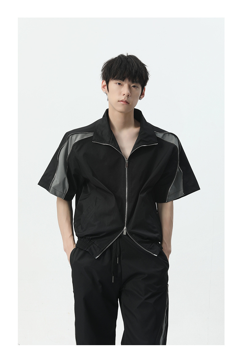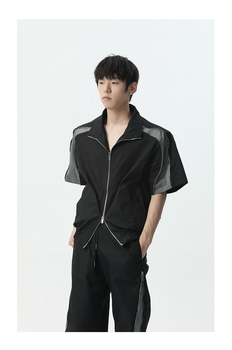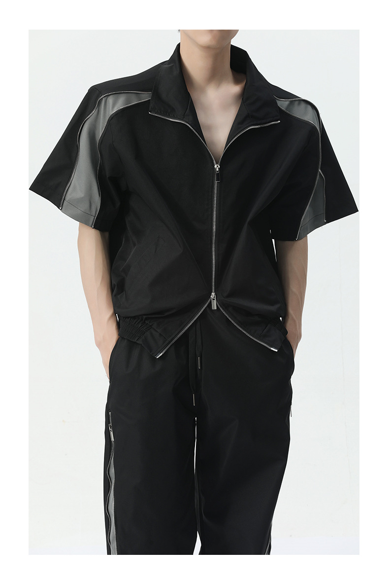 MTLCLOTHES Hombres| 2024 primavera nuevo diseño coreano de doble cremallera de color contrastante conjunto de ocio de alta calidad