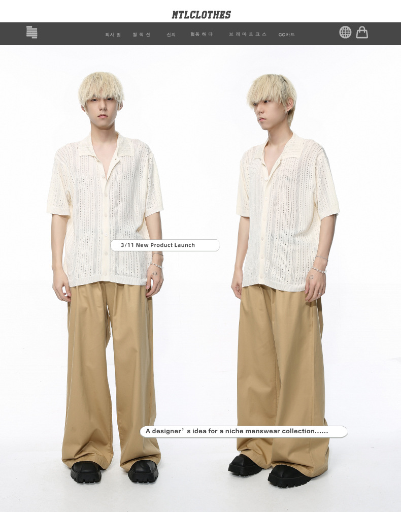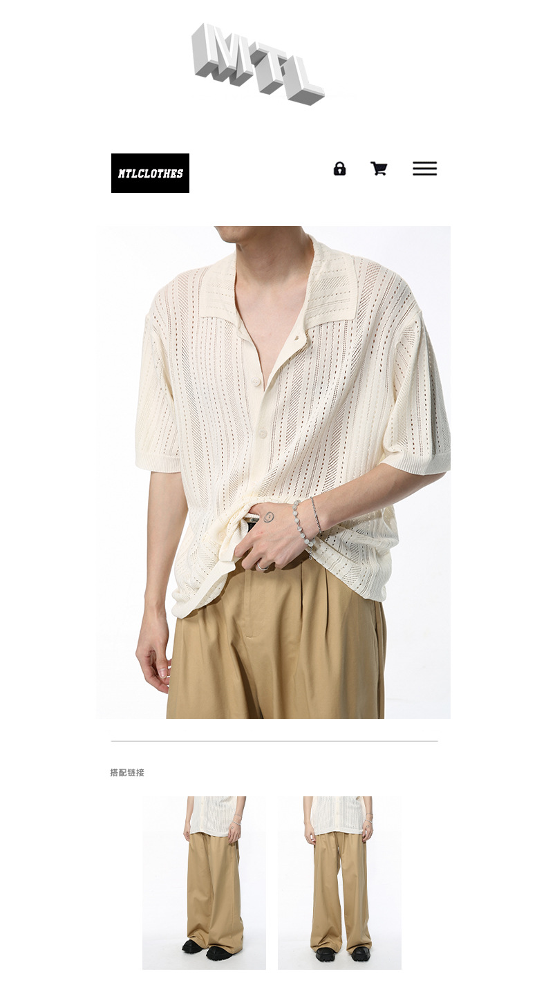 MTLCLOTHES para hombre | 2024 primavera nuevo producto estilo Hong Kong retro hueco transpirable solapa de punto camisa de manga corta