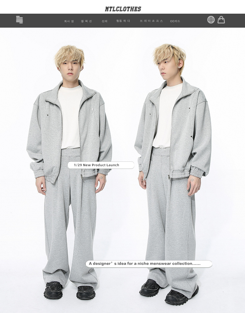 Mtlclothes ropa de Hombre | 2024 primavera nuevo estilo coreano simple suéter de color sólido de alta calidad chaqueta traje casual