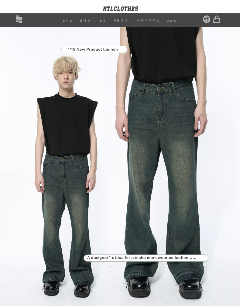 Mtlclothes ropa de Hombre | 2024 primavera nuevo retro apenado pantalones borla diseño micro Flared jeans