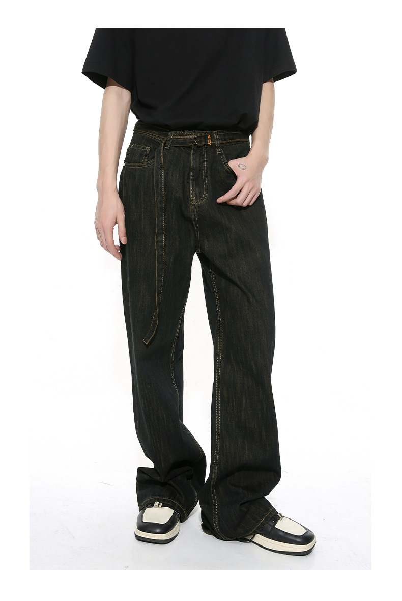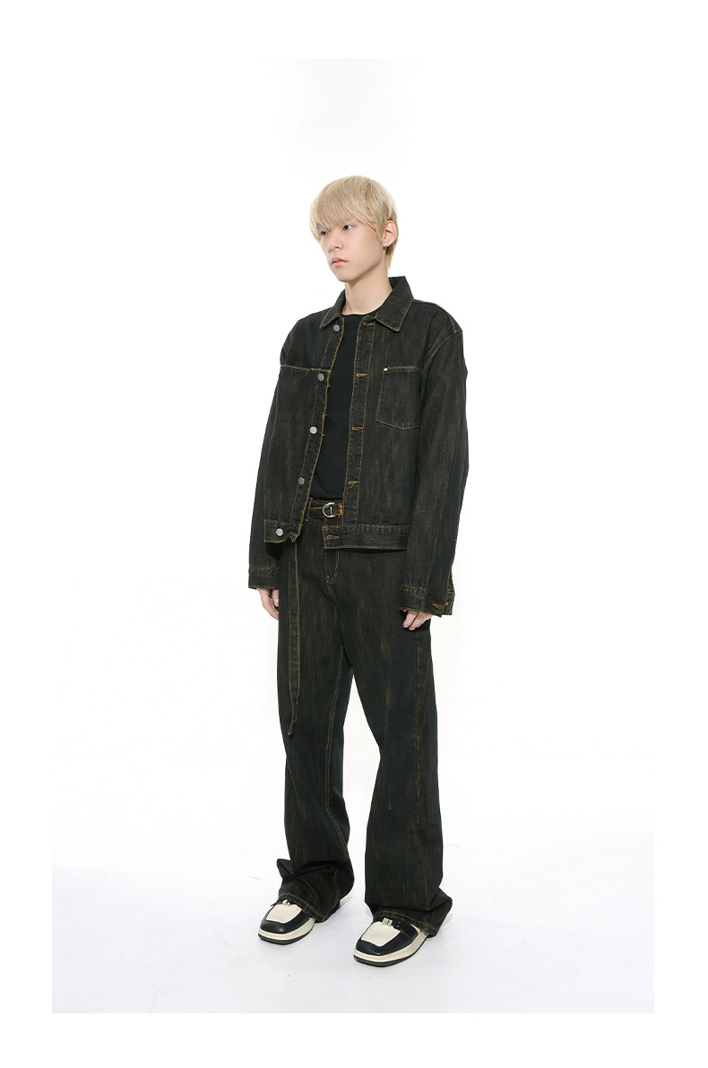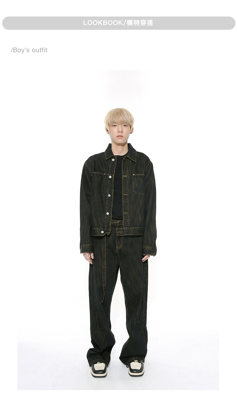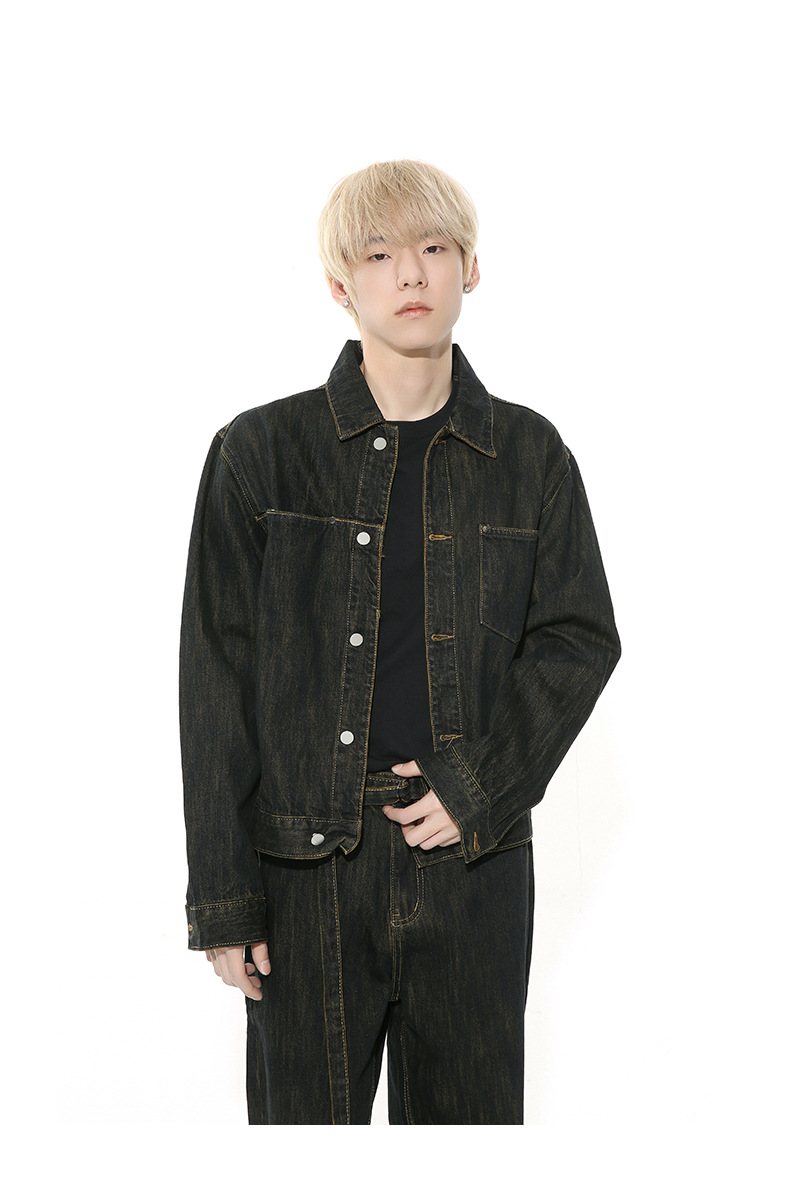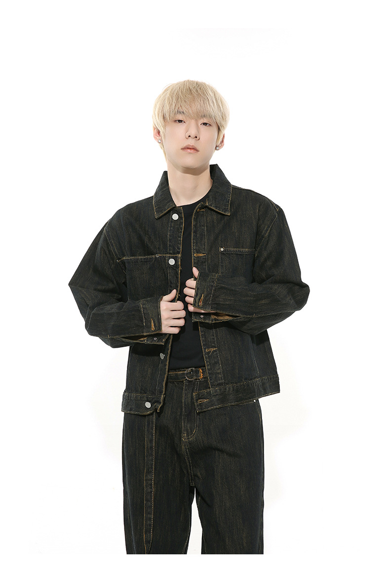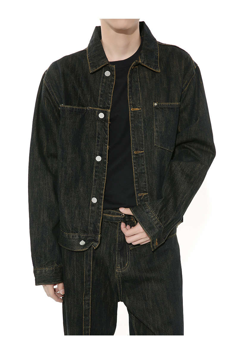 Mtlclothes ropa de Hombre | 2024 primavera nueva simple Ming serie línea diseño solapa retro amarillo Denim traje