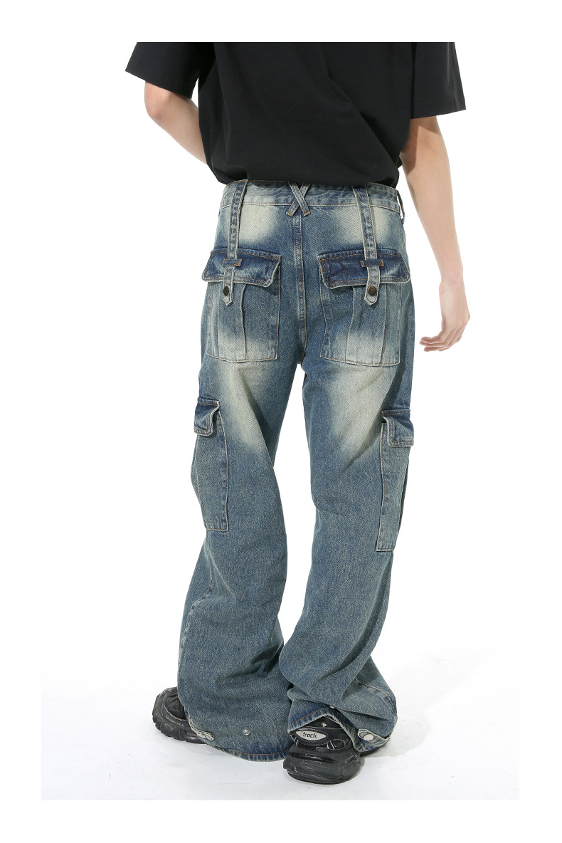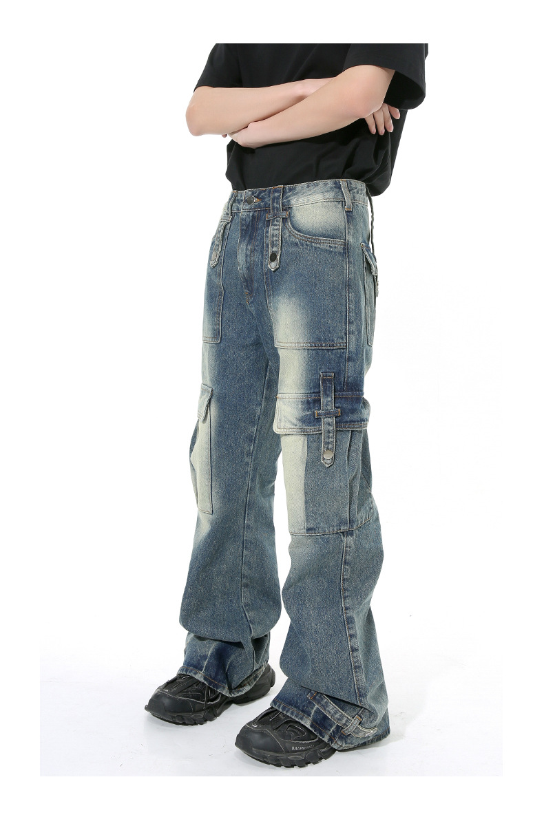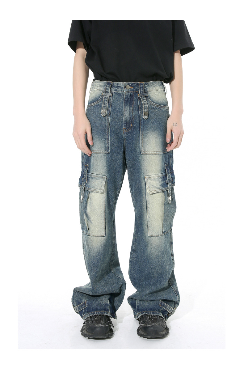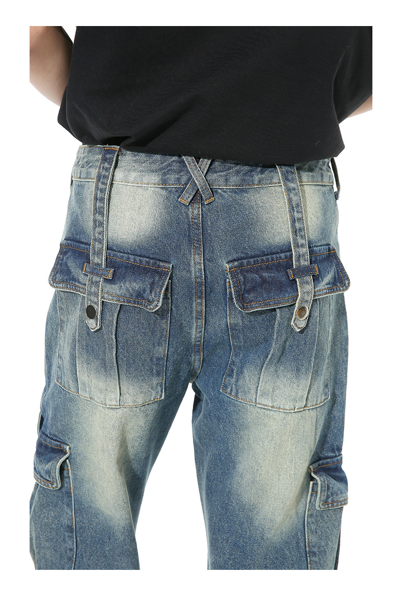 MTLClothes ropa de Hombre | 2024 primavera nueva moda hermosa High Street angustiado diseño Multi-Bolsillo jeans rectos