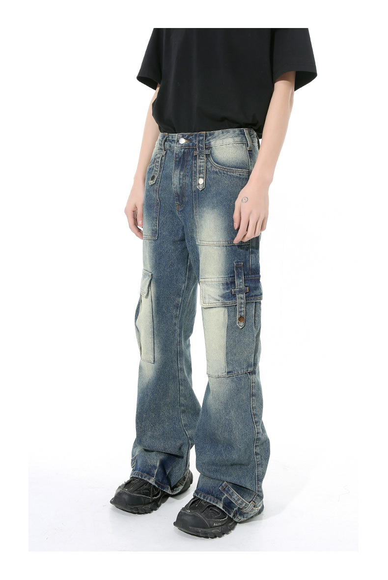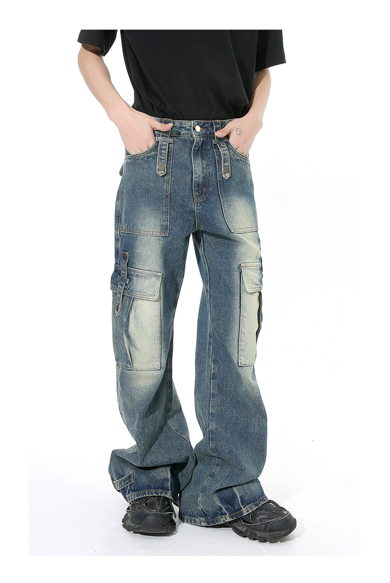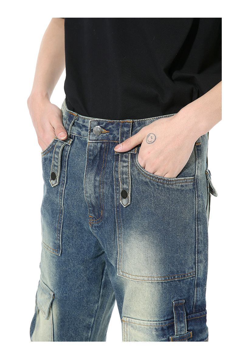 MTLClothes ropa de Hombre | 2024 primavera nueva moda hermosa High Street angustiado diseño Multi-Bolsillo jeans rectos