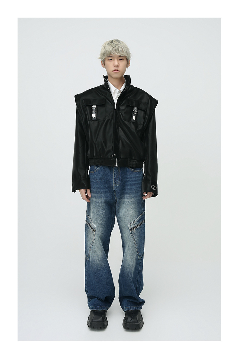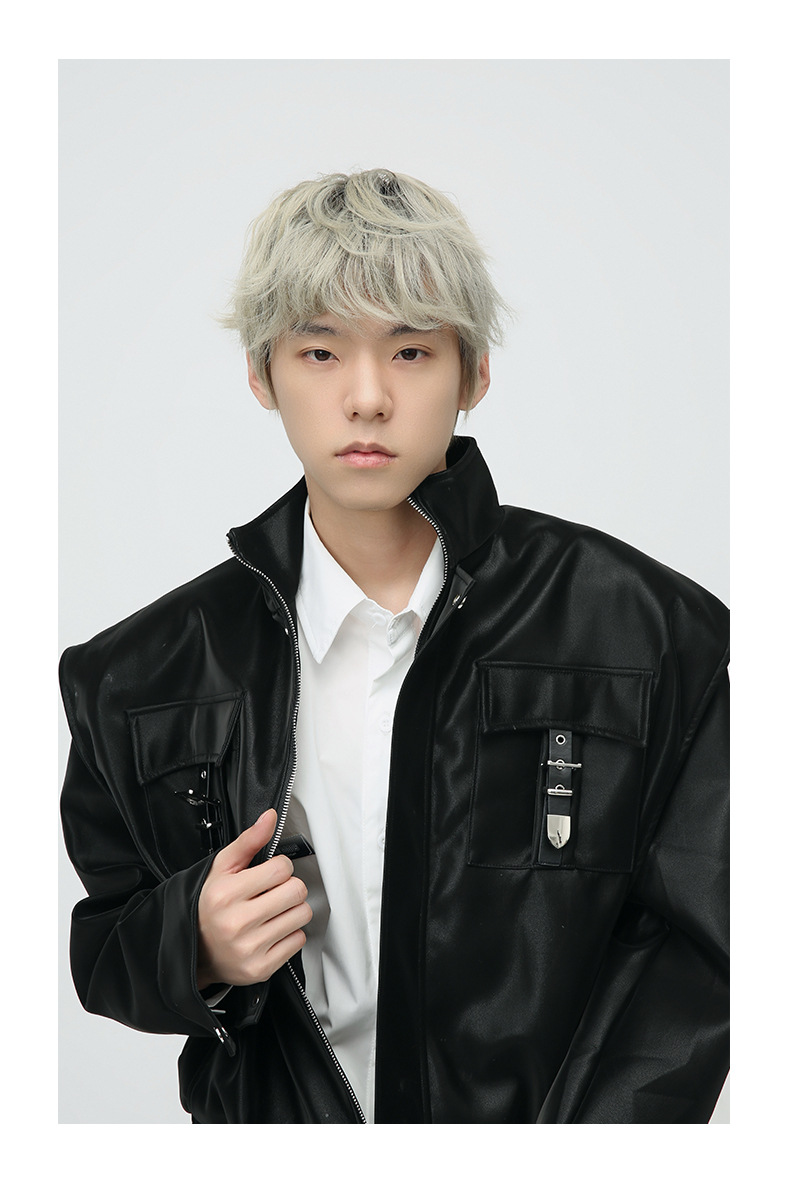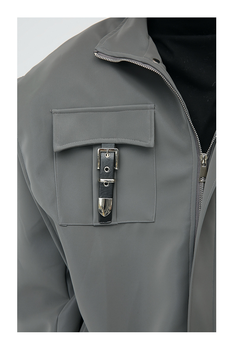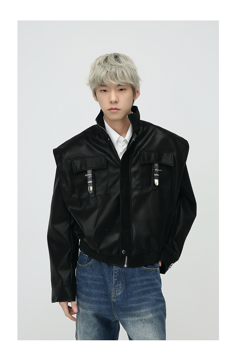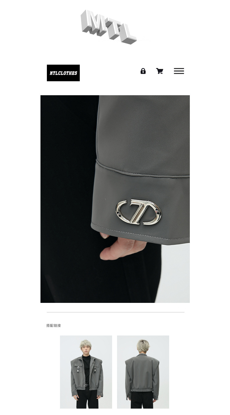 Mtlclothes ropa de Hombre | 2023 Otoño e Invierno nuevo retro americano metal bloqueo hombro pad cuero abrigo