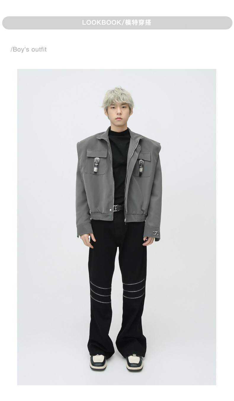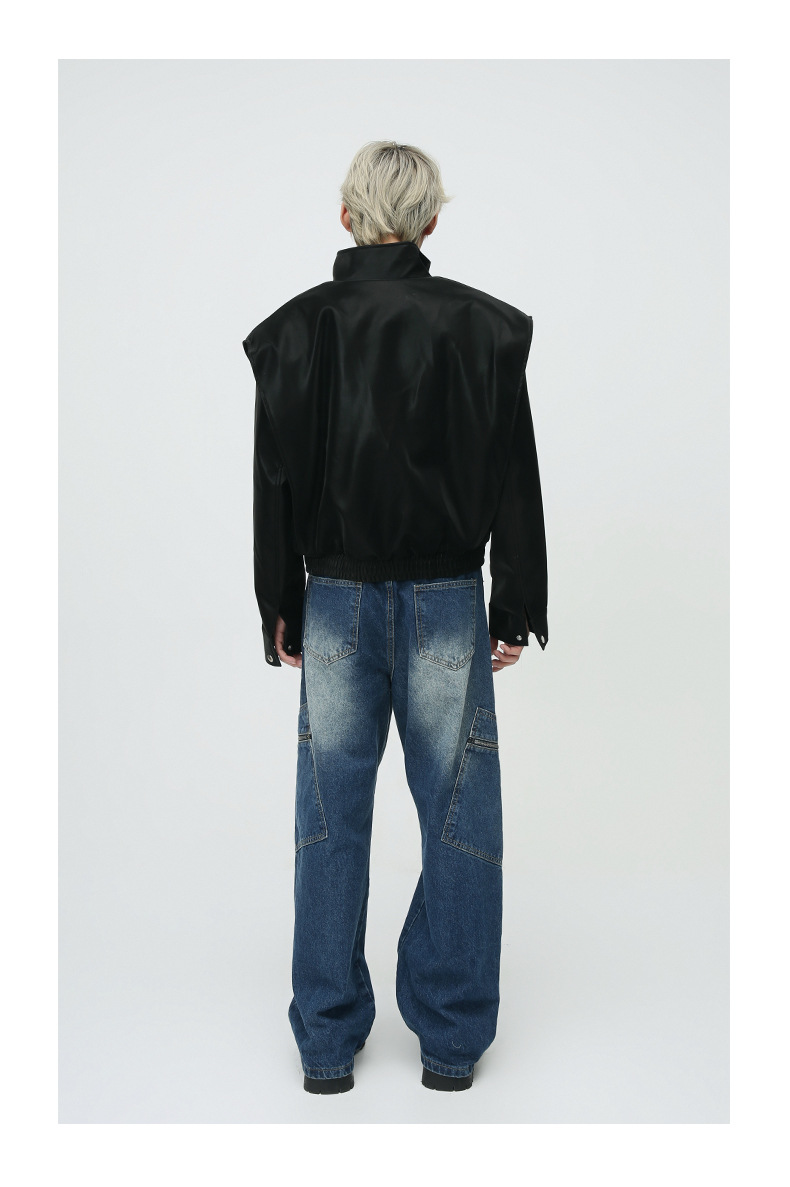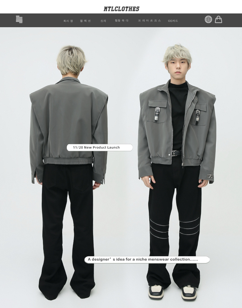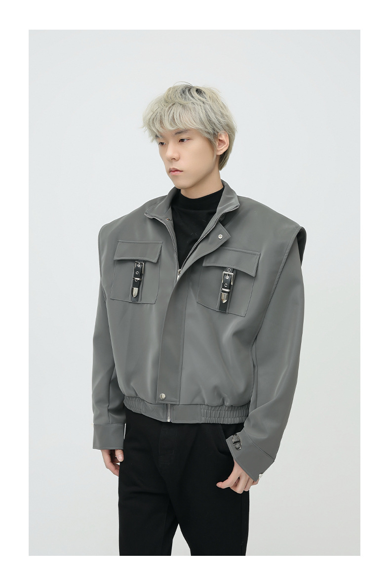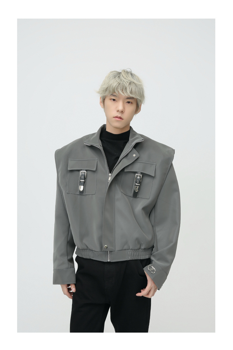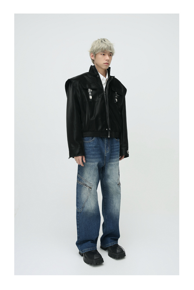 Mtlclothes ropa de Hombre | 2023 Otoño e Invierno nuevo retro americano metal bloqueo hombro pad cuero abrigo
