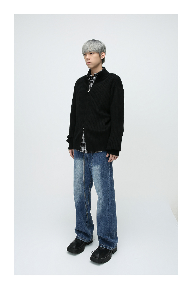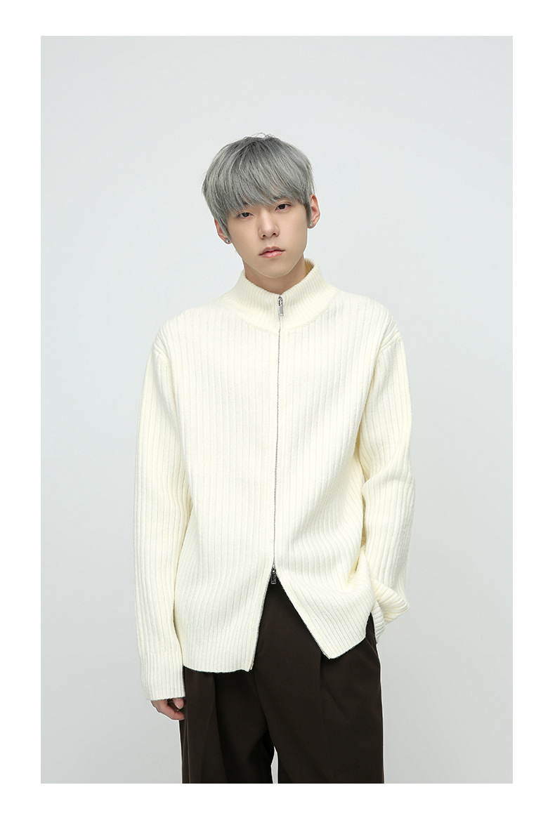 Mtlclothes ropa de Hombre | 2023 otoño estilo coreano de alto grado perezoso doble cremallera cardigan suéter abrigo de punto