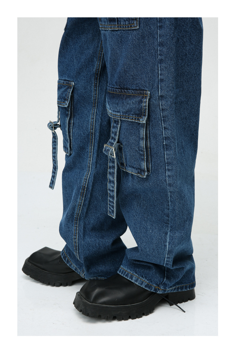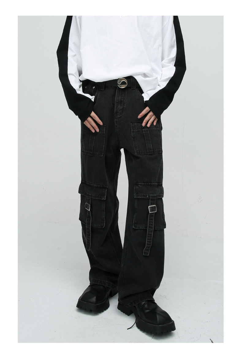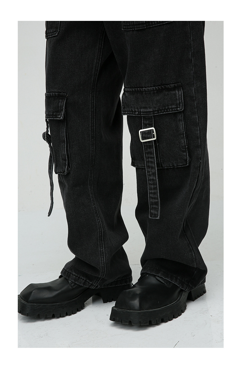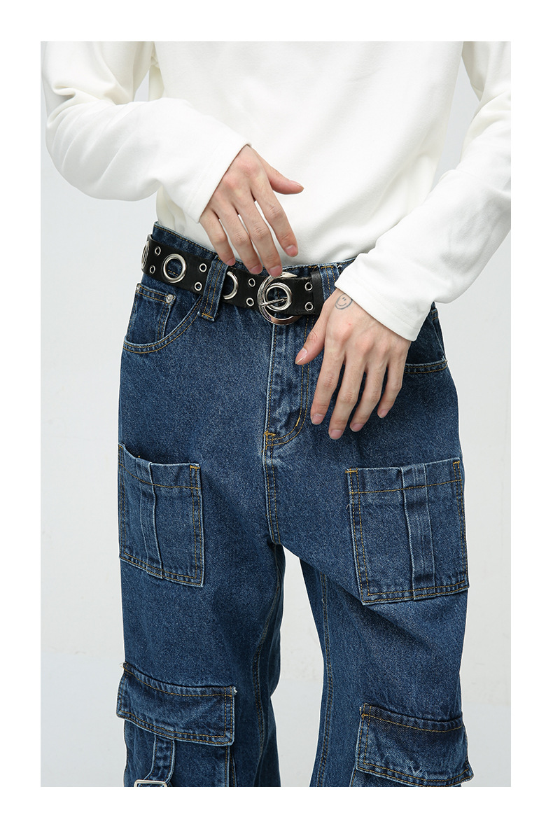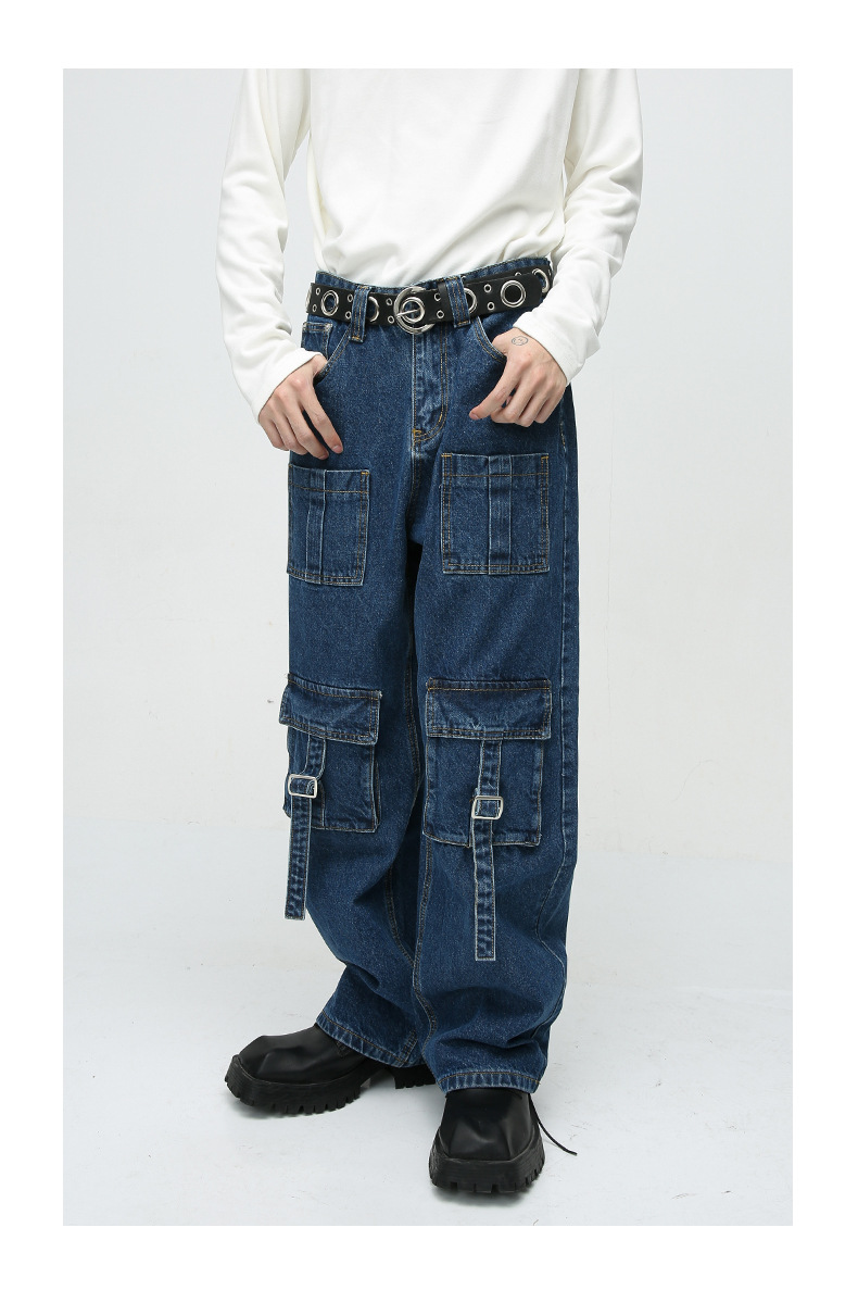 MTLClothes ropa de Hombre | 2023 otoño europeo y americano calle multi-Bolsillo costura Diseño ancho pierna ropa de trabajo jeans