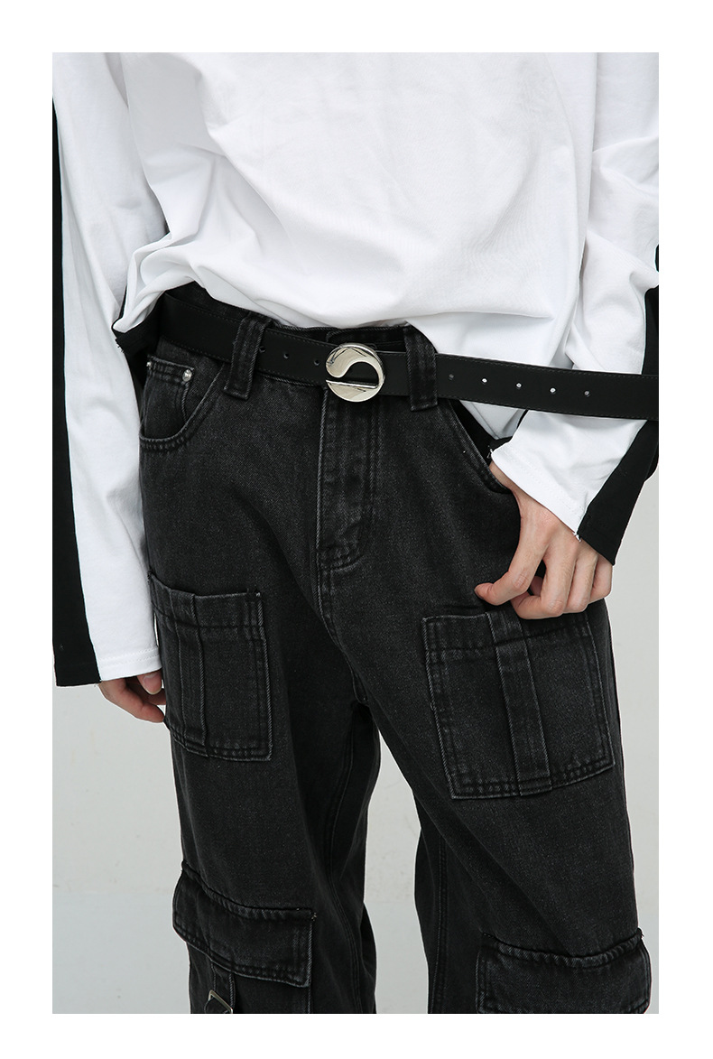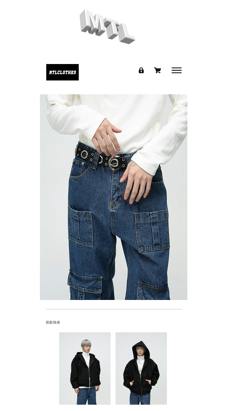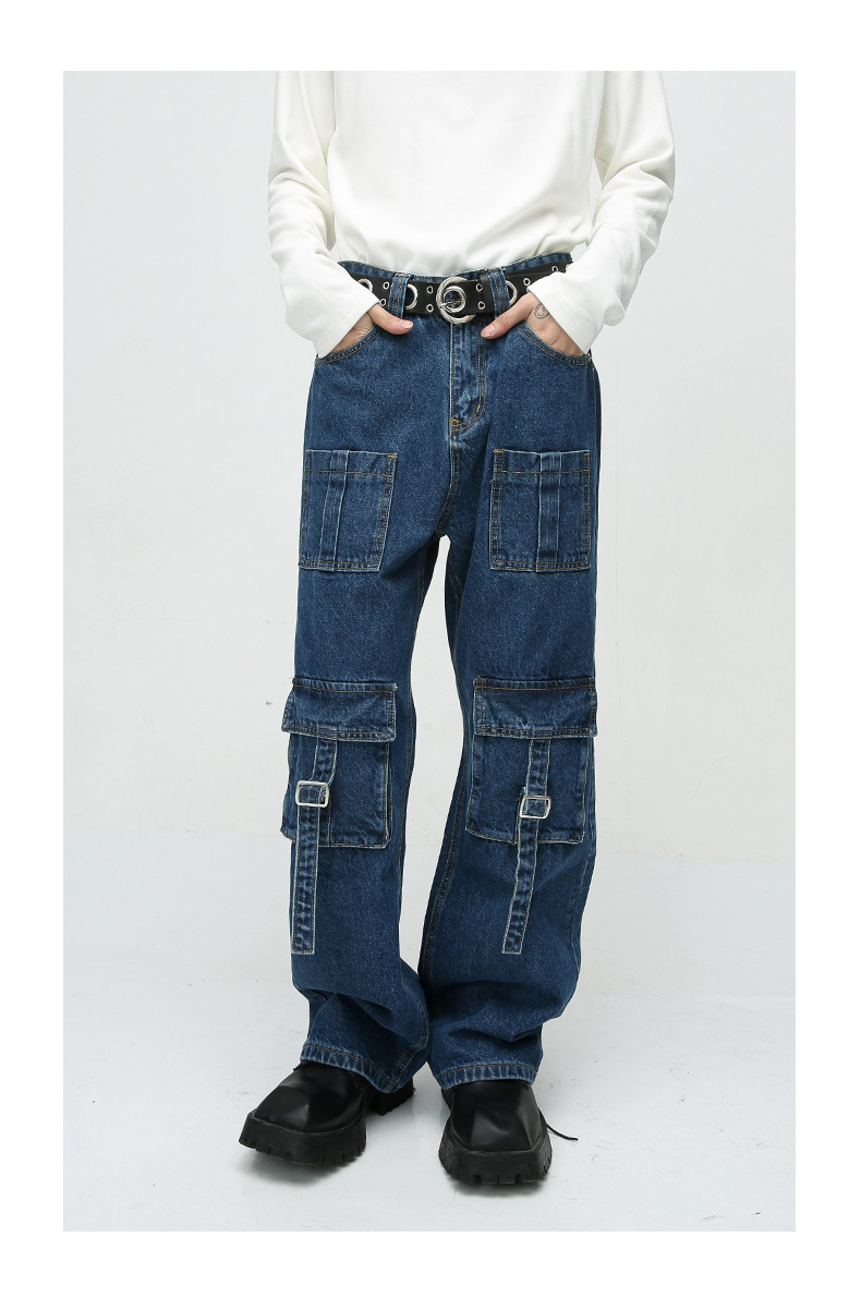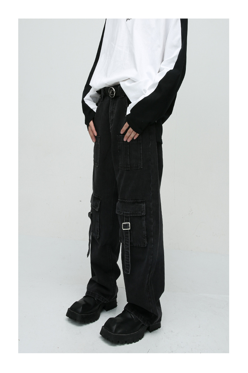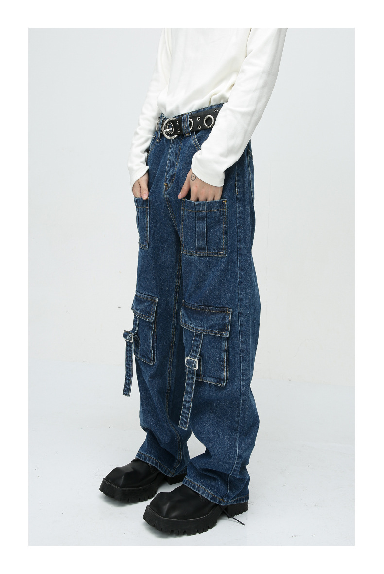 MTLClothes ropa de Hombre | 2023 otoño europeo y americano calle multi-Bolsillo costura Diseño ancho pierna ropa de trabajo jeans
