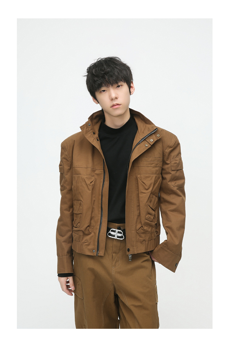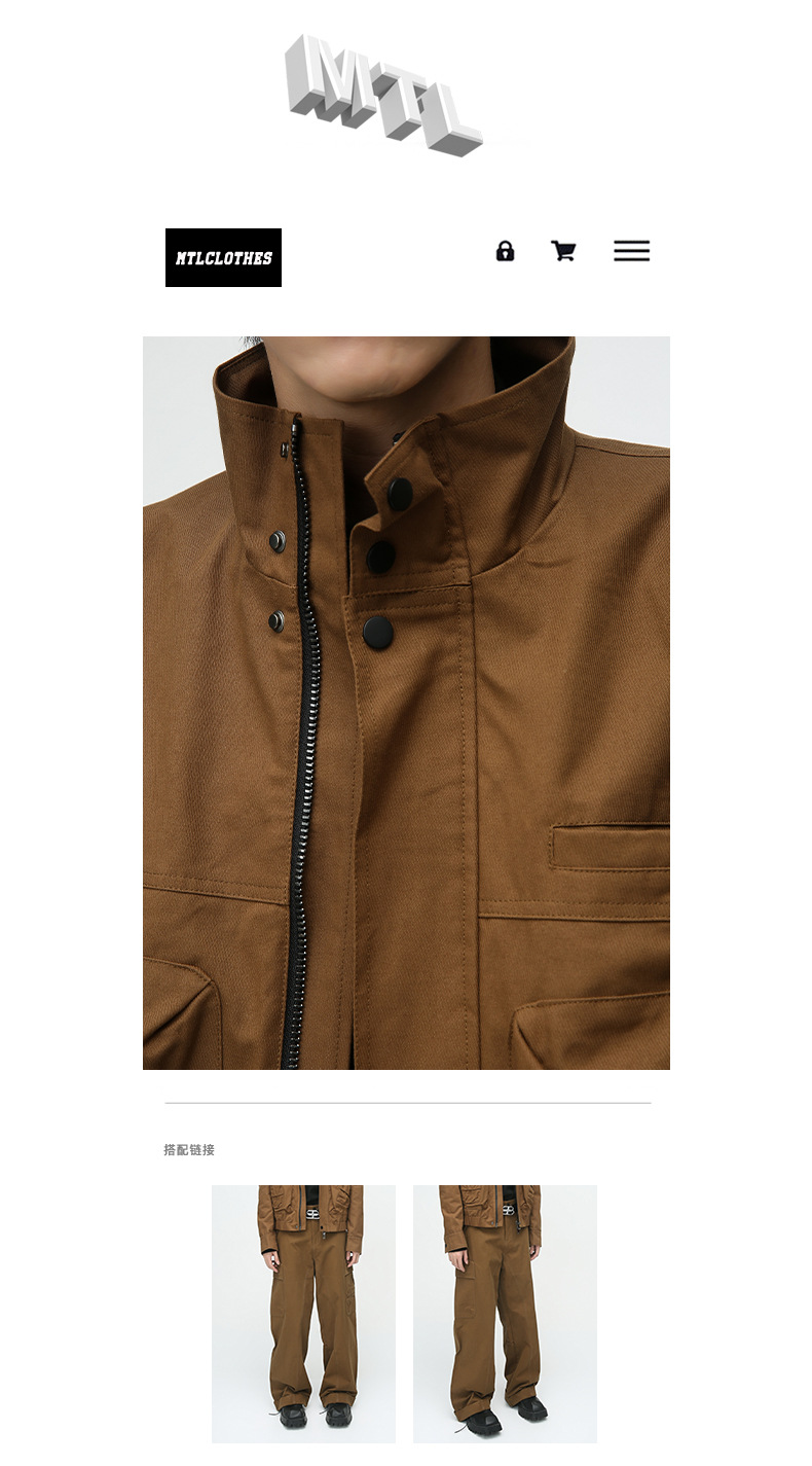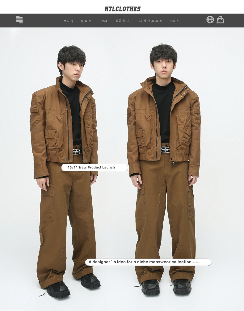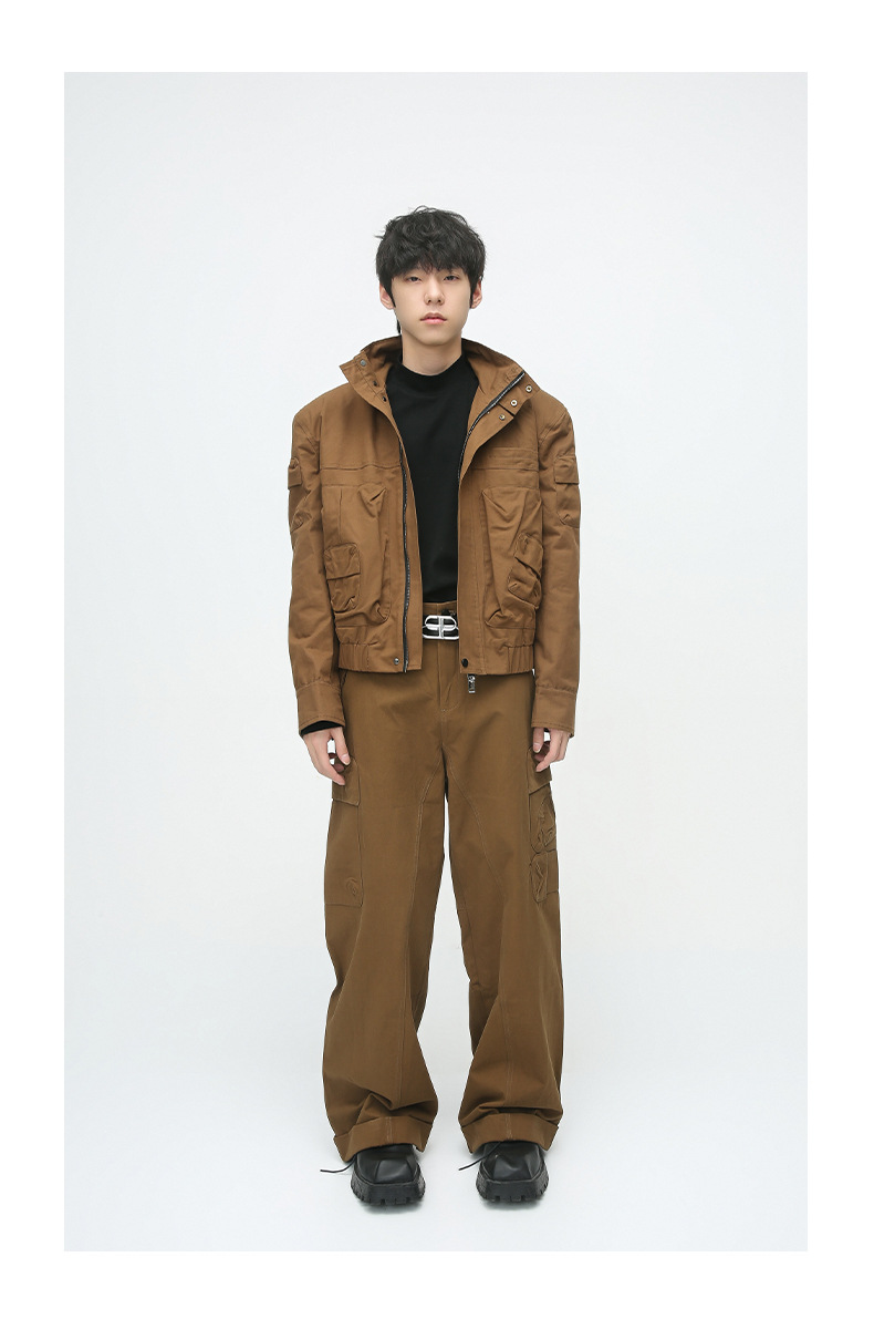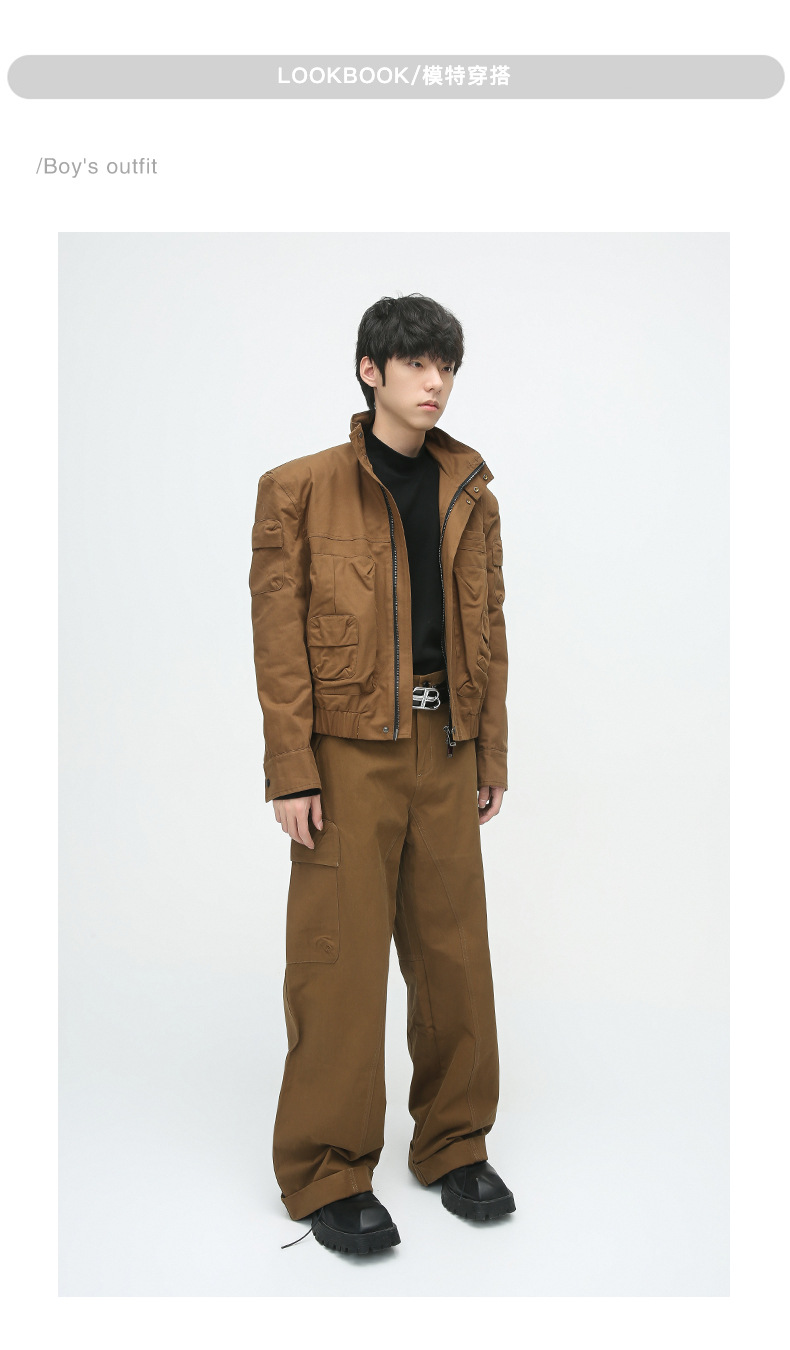 Mtlclothes ropa de Hombre | 2023 otoño retro funcional tridimensional diseño de bolsillo chaqueta pantalones casuales traje