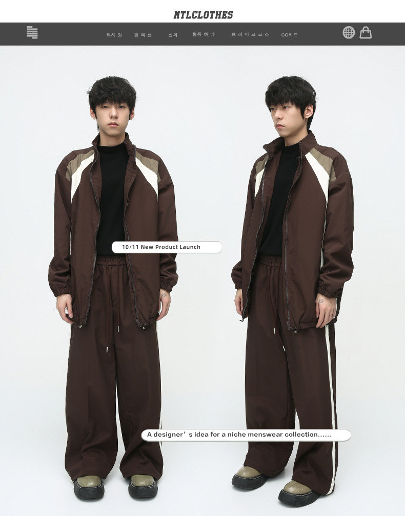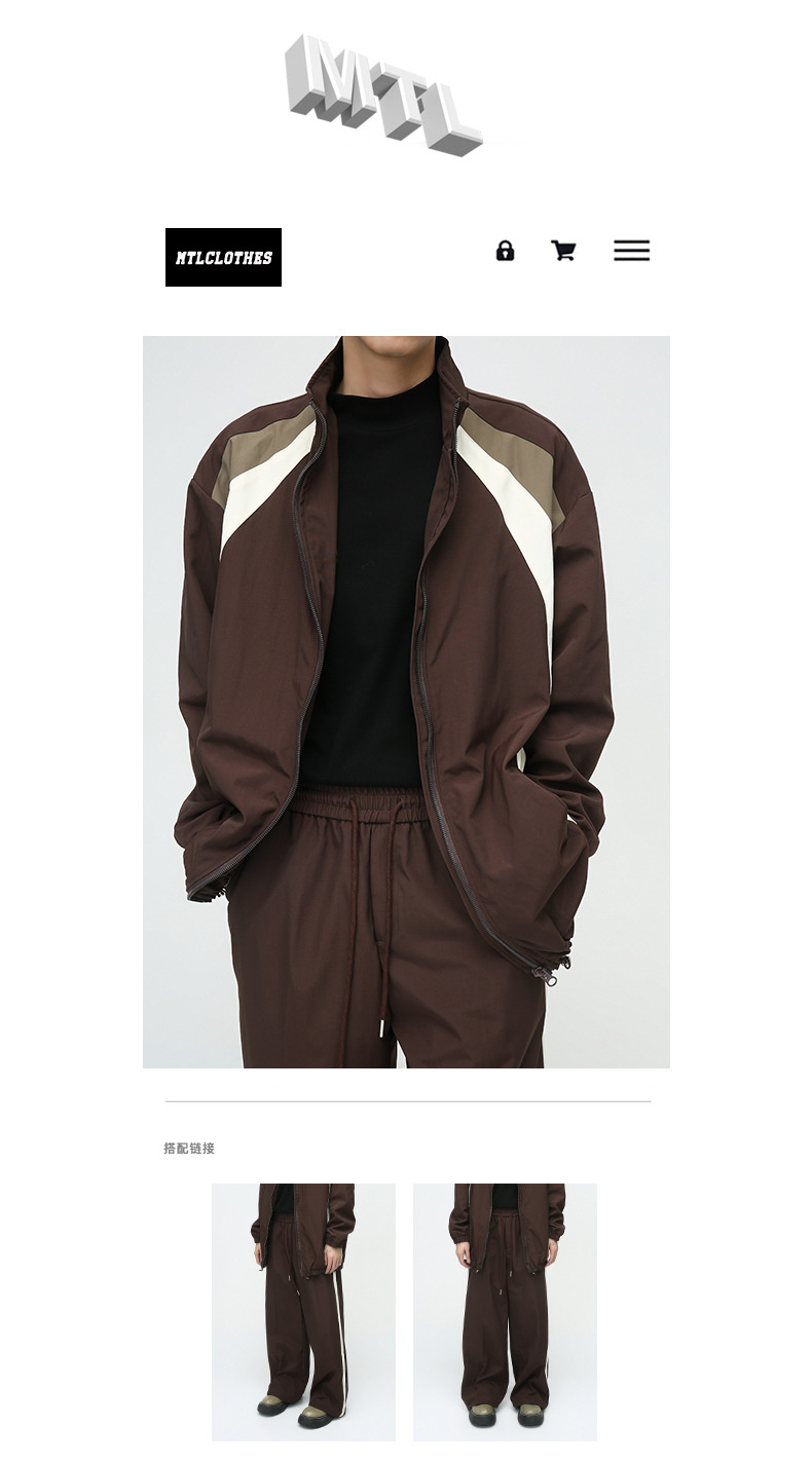 Mtlclothes ropa de los hombres | 2023 otoño nuevo estilo deportivo americano contraste color costura diseño casual traje moda