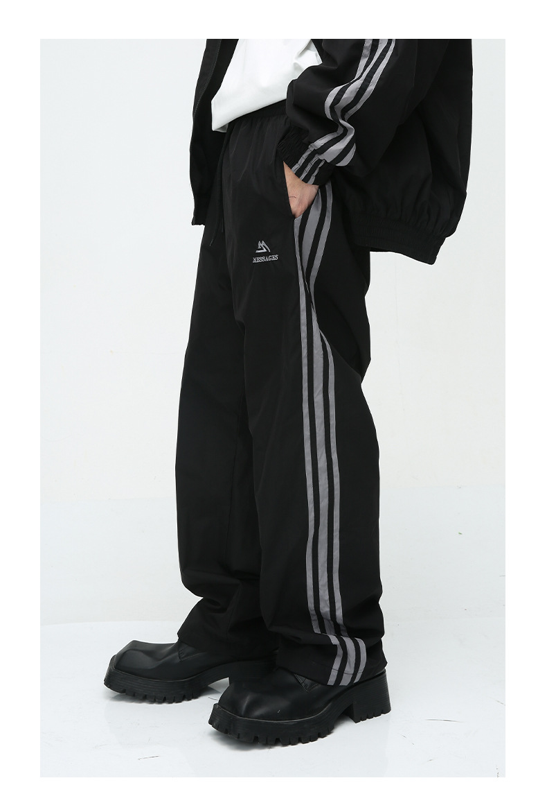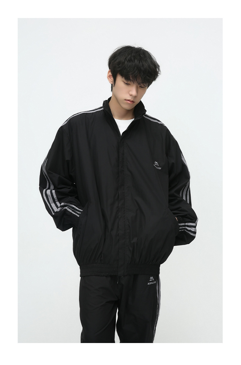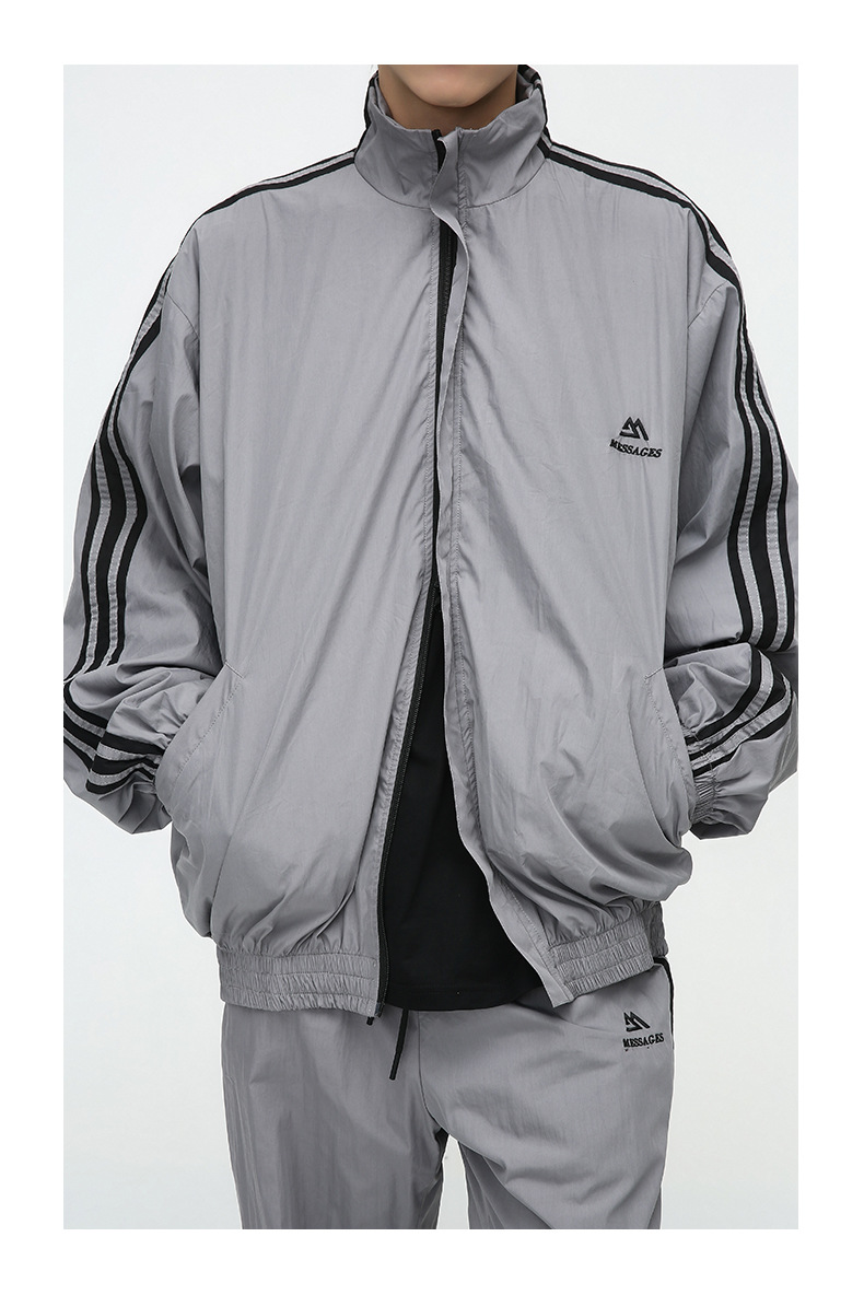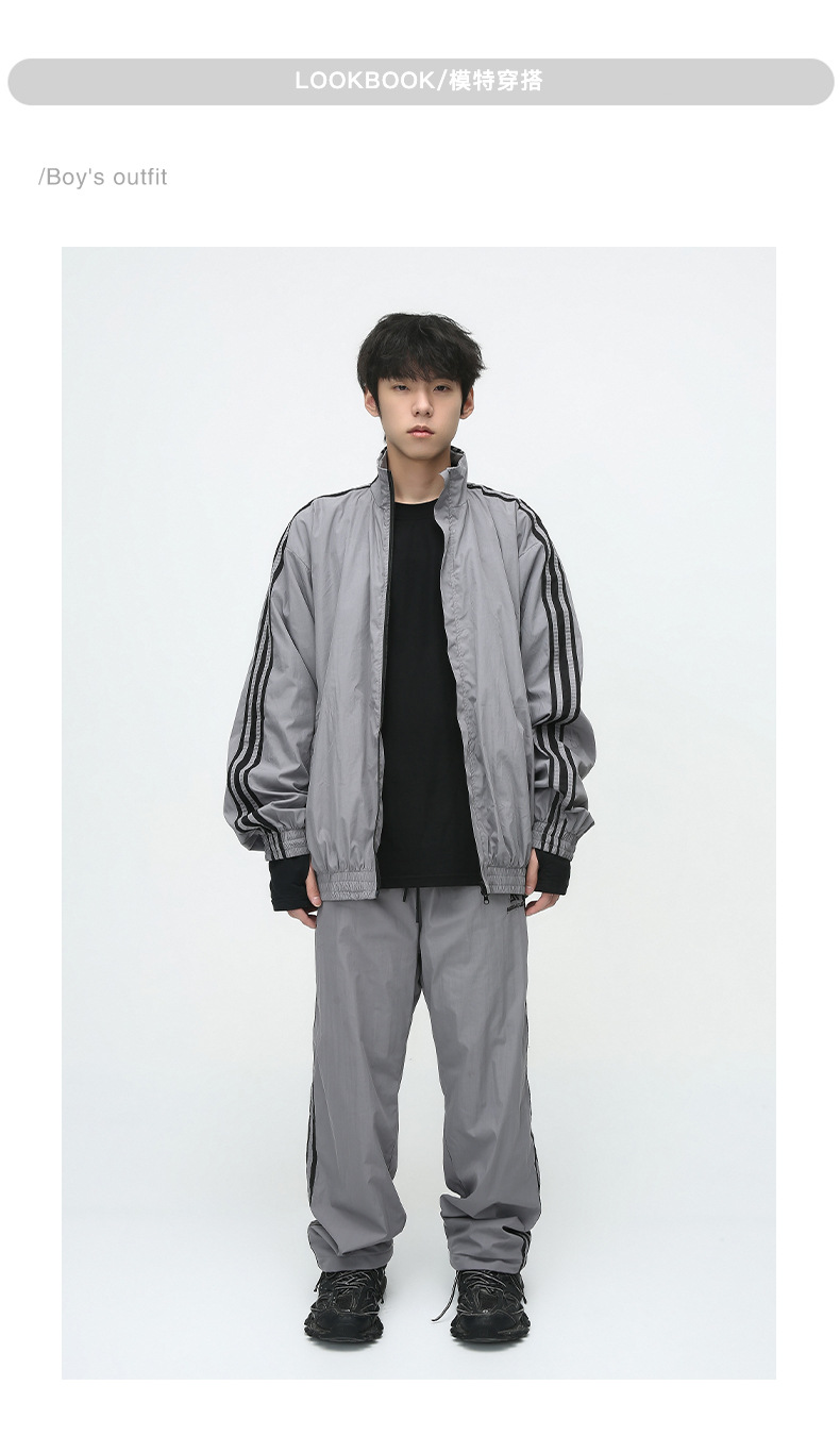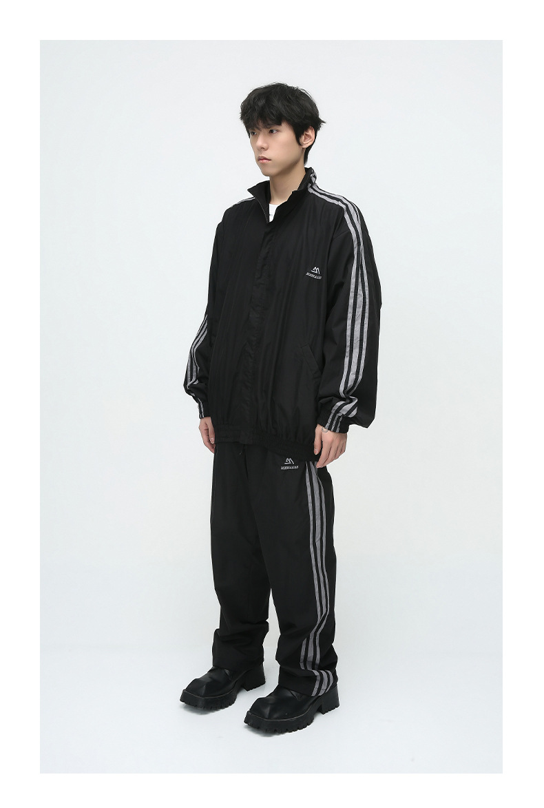 Mtlclothes ropa de los hombres | 2023 otoño americano cardigan rayas chaqueta traje casual suelta Pantalones deportivos moda