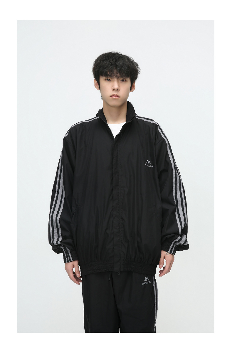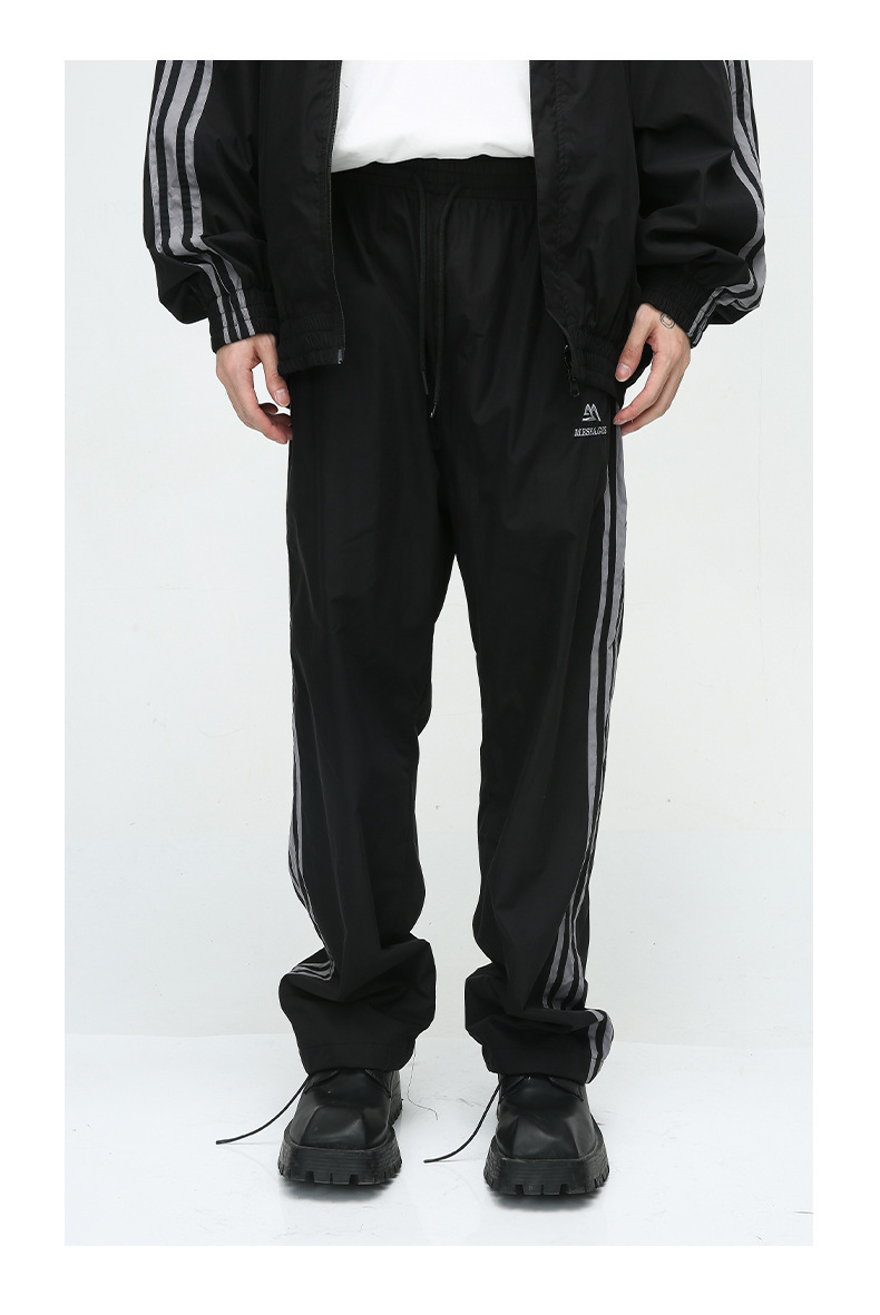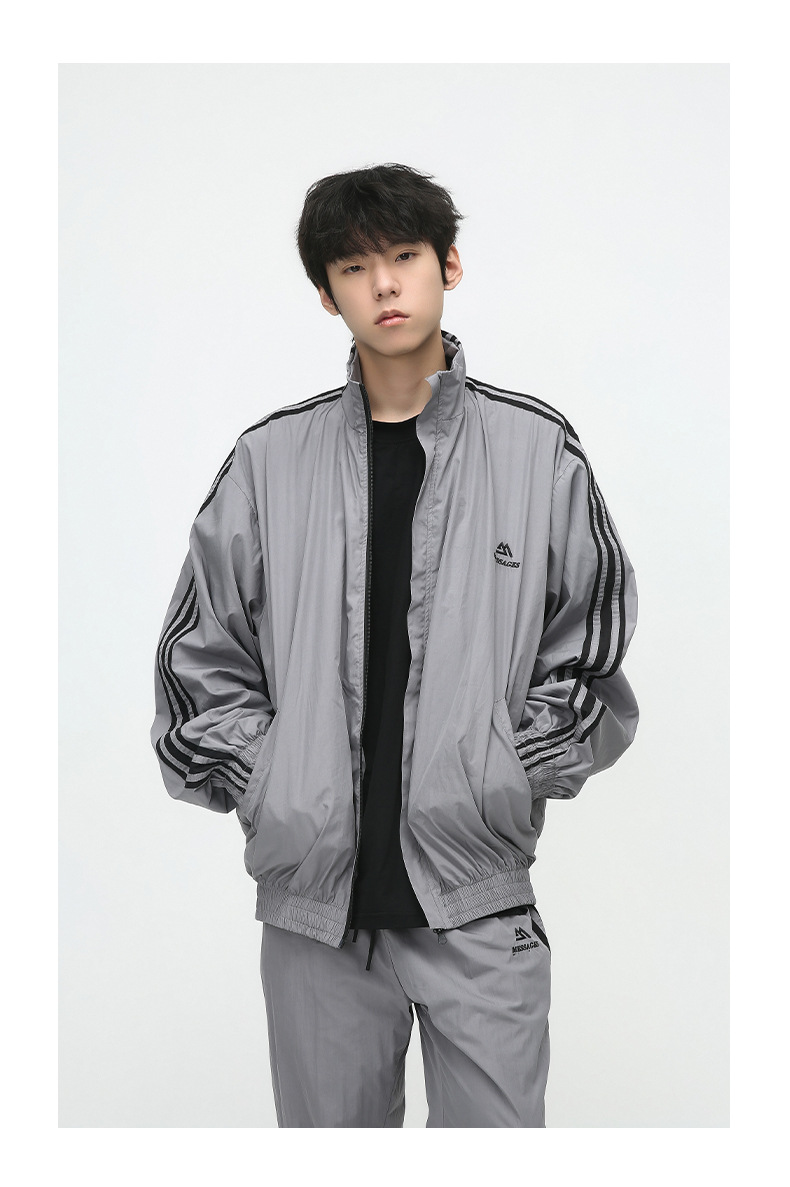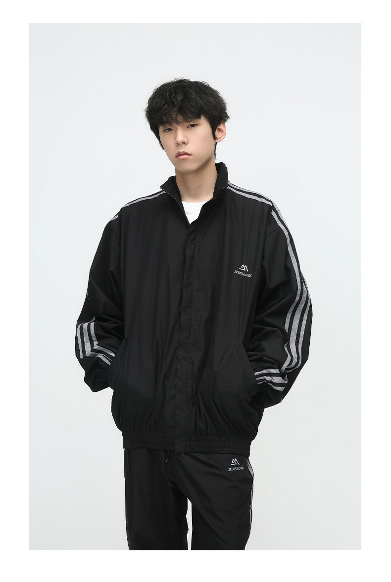 Mtlclothes ropa de los hombres | 2023 otoño americano cardigan rayas chaqueta traje casual suelta Pantalones deportivos moda