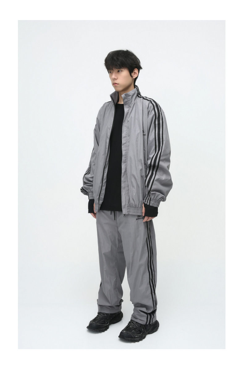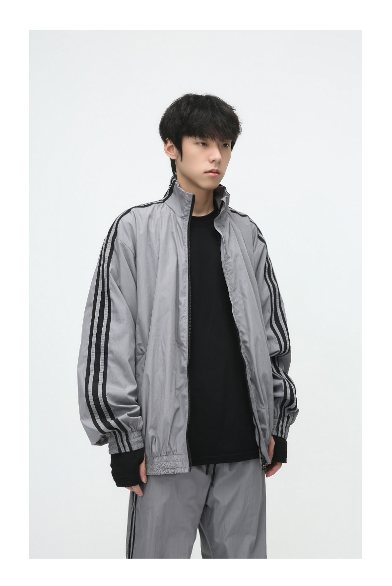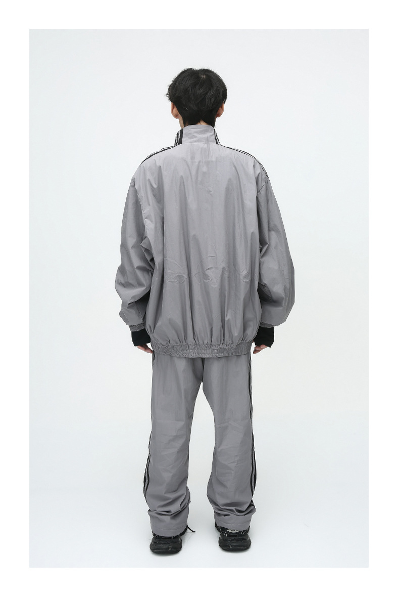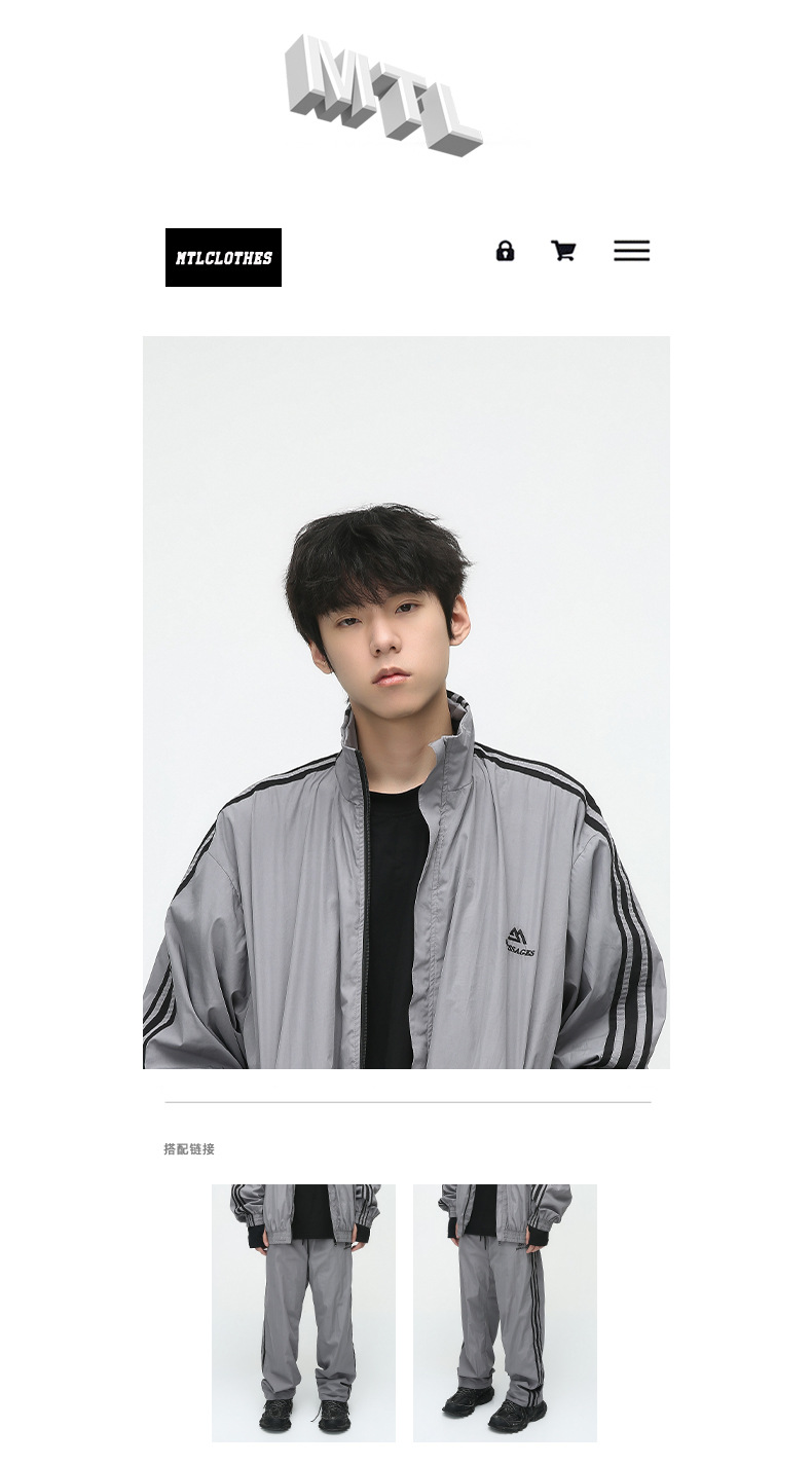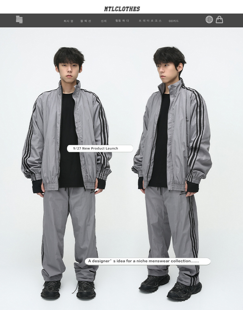 Mtlclothes ropa de los hombres | 2023 otoño americano cardigan rayas chaqueta traje casual suelta Pantalones deportivos moda