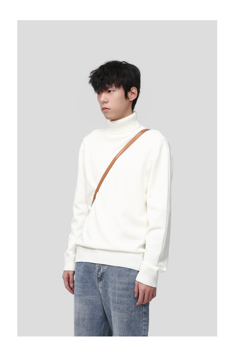 Mtlclothes ropa de los hombres | 2023 otoño nuevo estilo coreano Jersey cuello alto manga larga punto que basa la camisa moda
