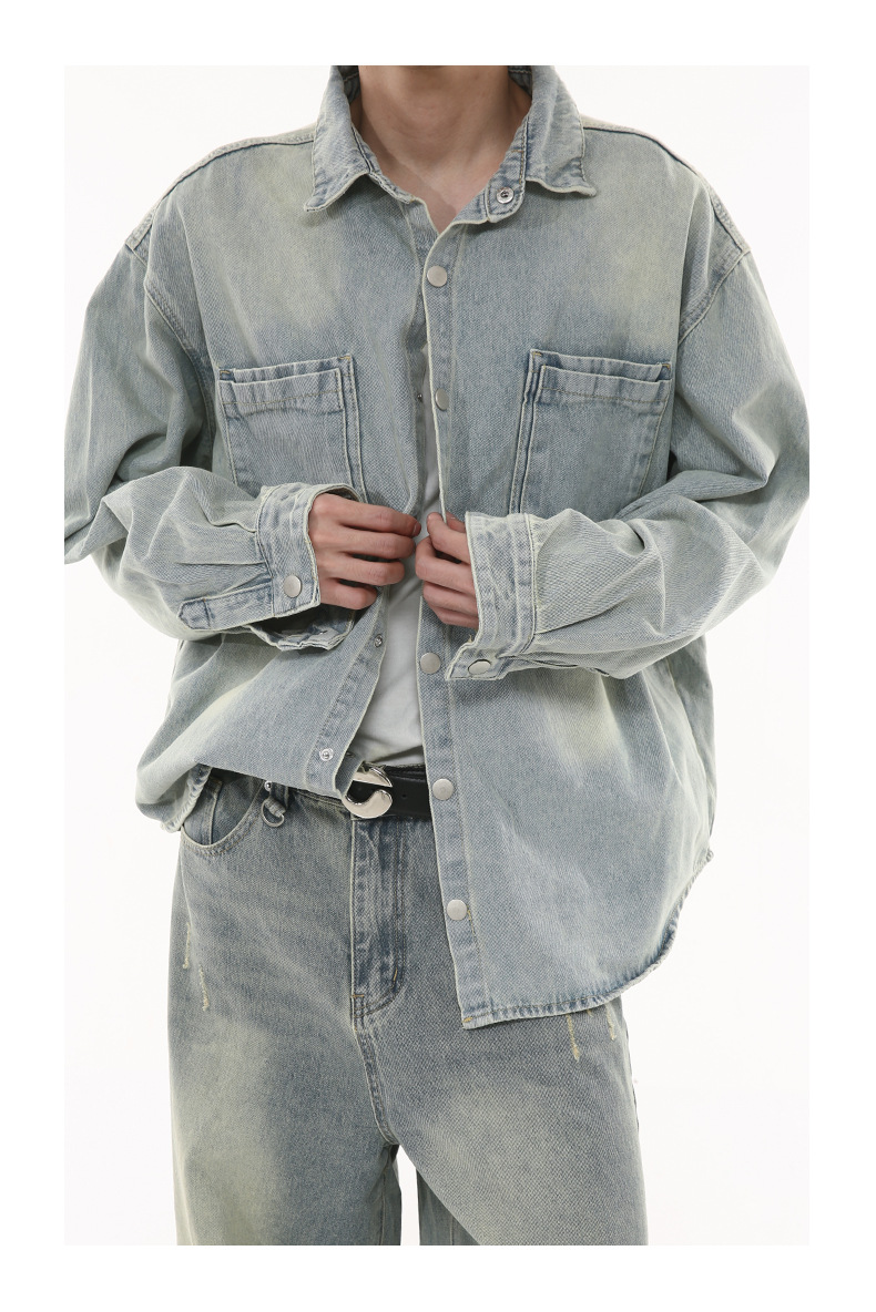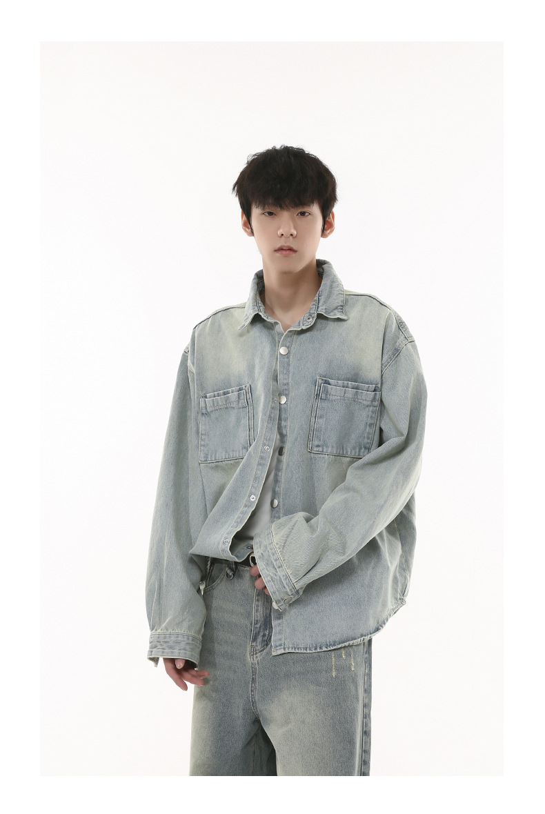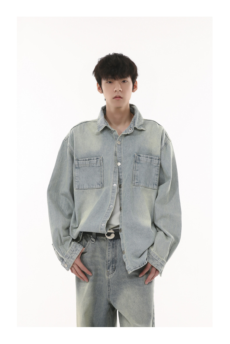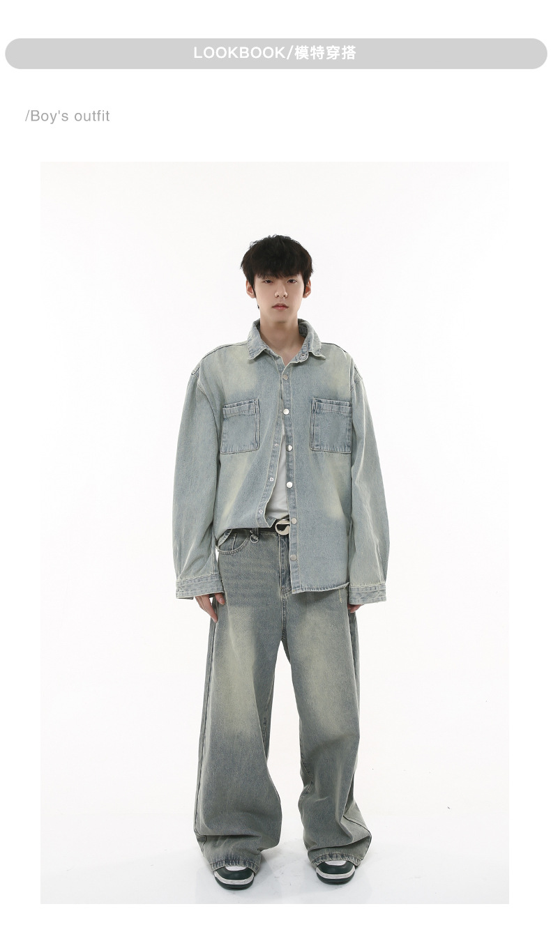 Mtlclothes ropa de Hombre | 2023 otoño nuevo estilo coreano personalizado apenado lavado casual Denim traje