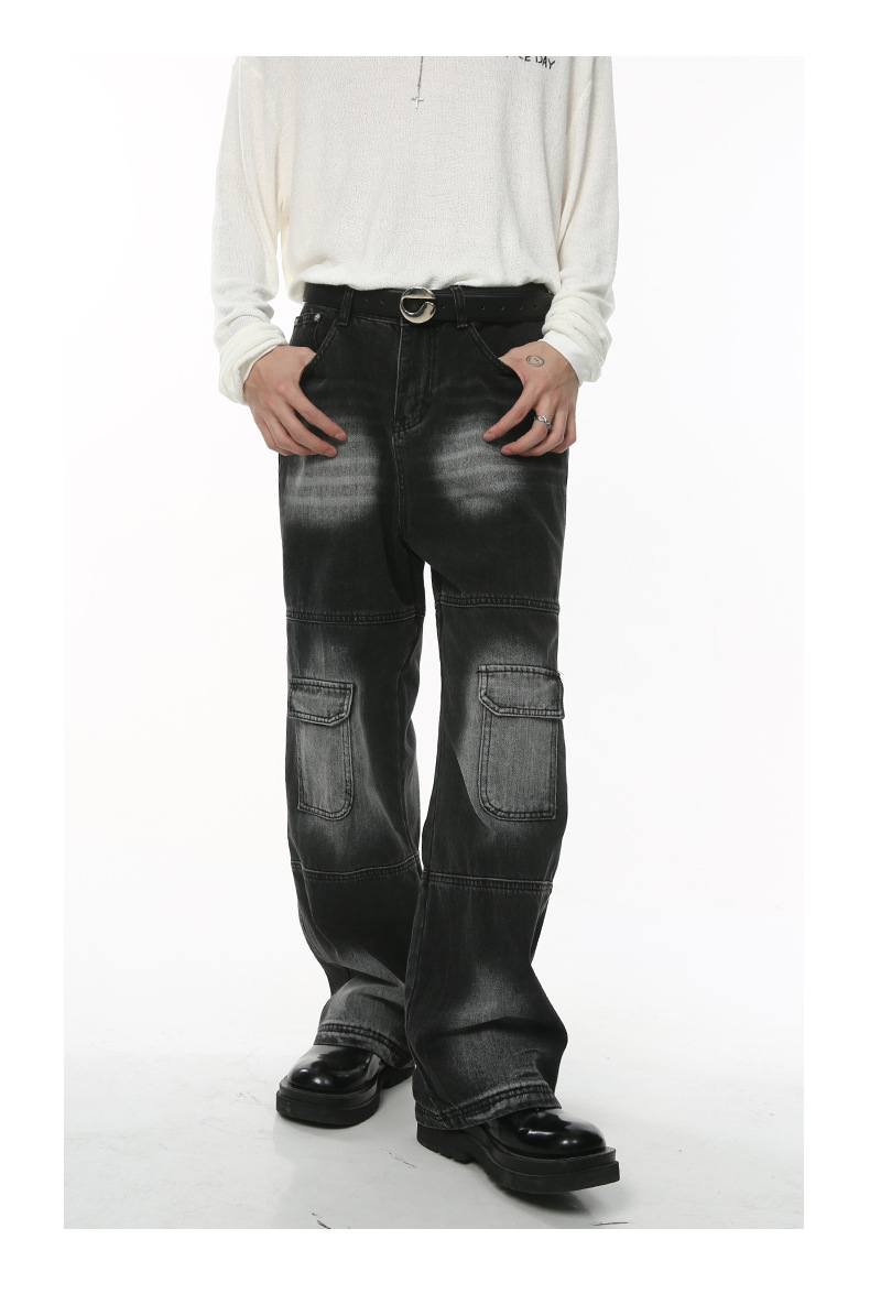 Mtlclothes ropa de Hombre | 2023 otoño nuevo estilo coreano lavado blanco herramientas Denim Pantalones traje
