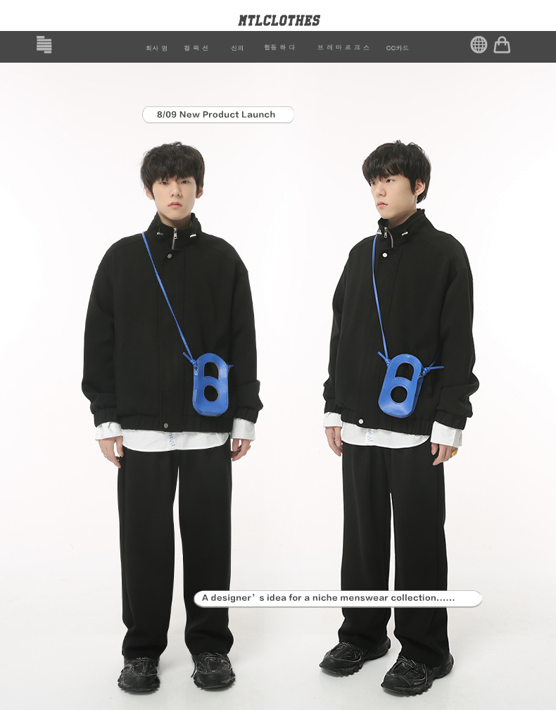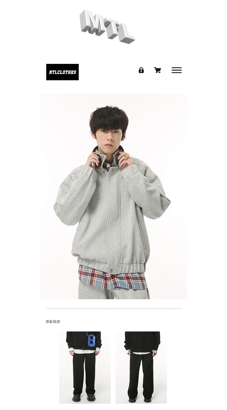 Mtlclothes ropa de los hombres | 2023 otoño nueva suelta deportes stand collar pantalones simple traje casual