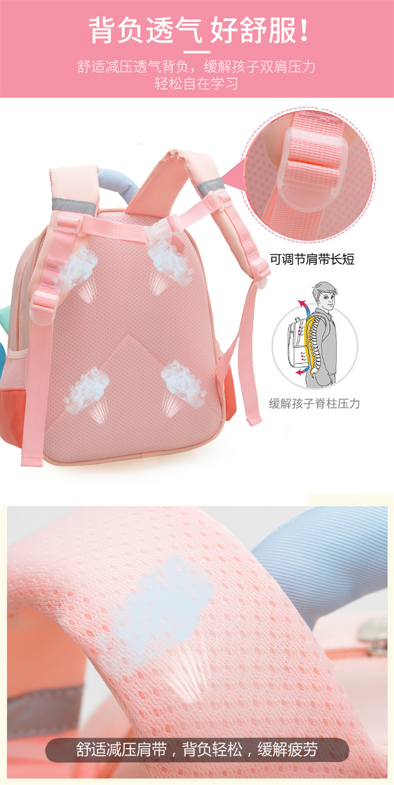 Mochila de niña encantadora cartón de dibujos animados tridimensional mochila de jardín de infantes para niños transpirable mochila de niñas pequeñas