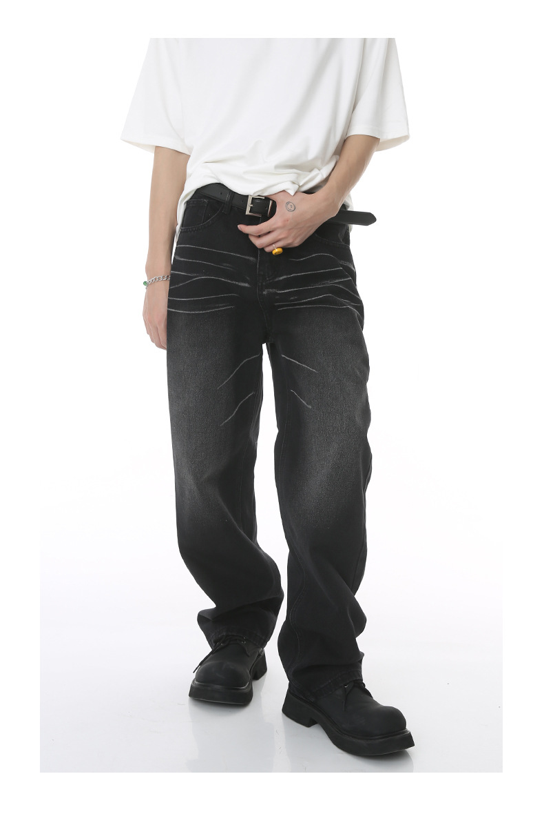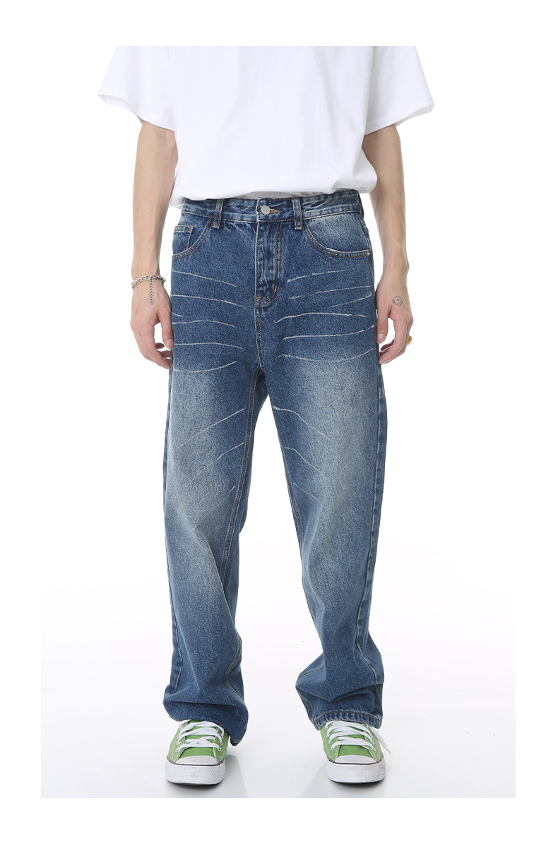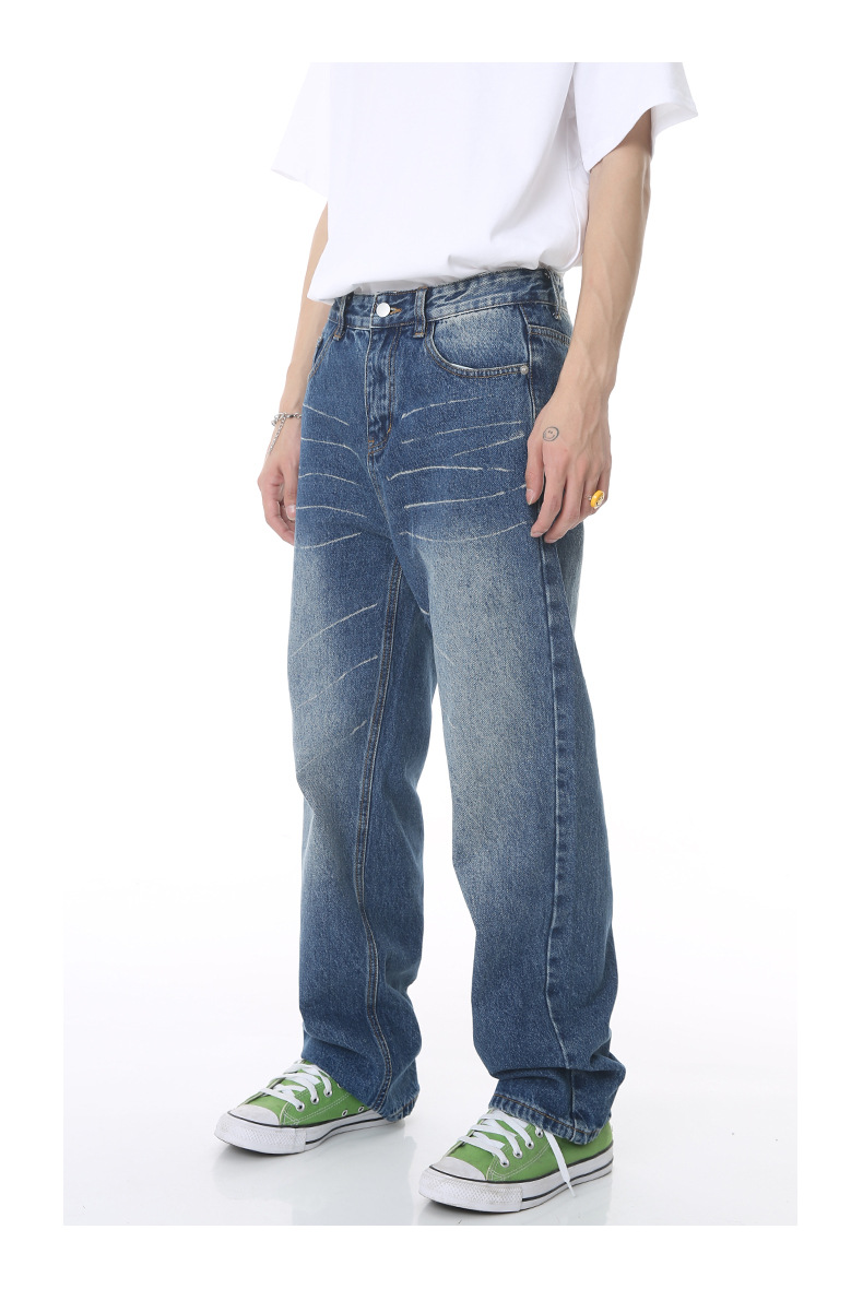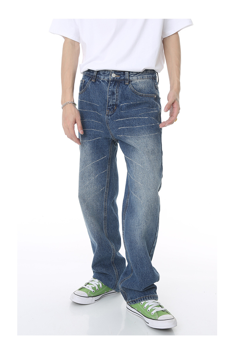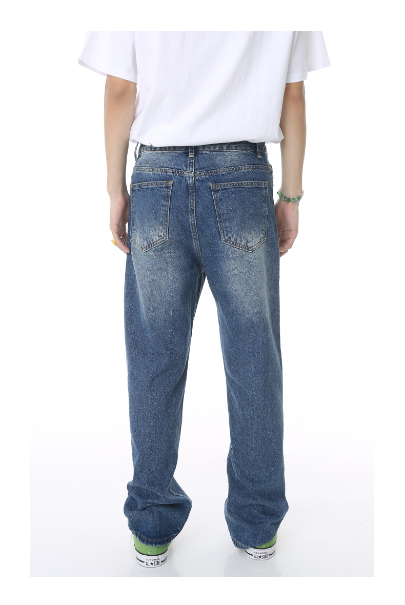 MTLROPA ropa de los hombres | 2023 verano nueva suelta recta retro cero lavado pantalones mezclilla blanca