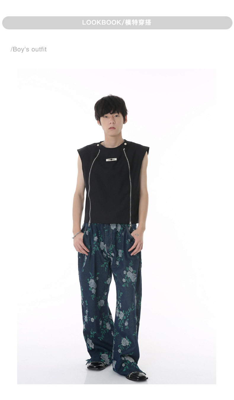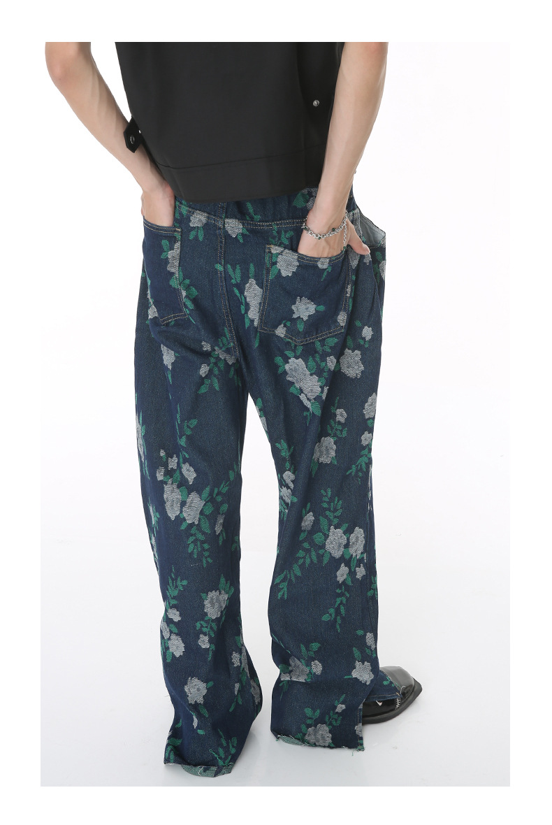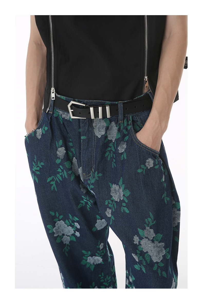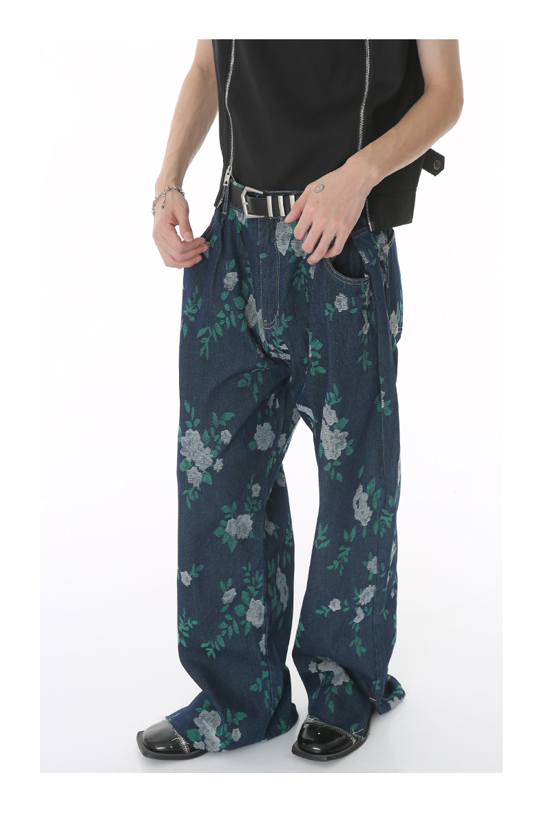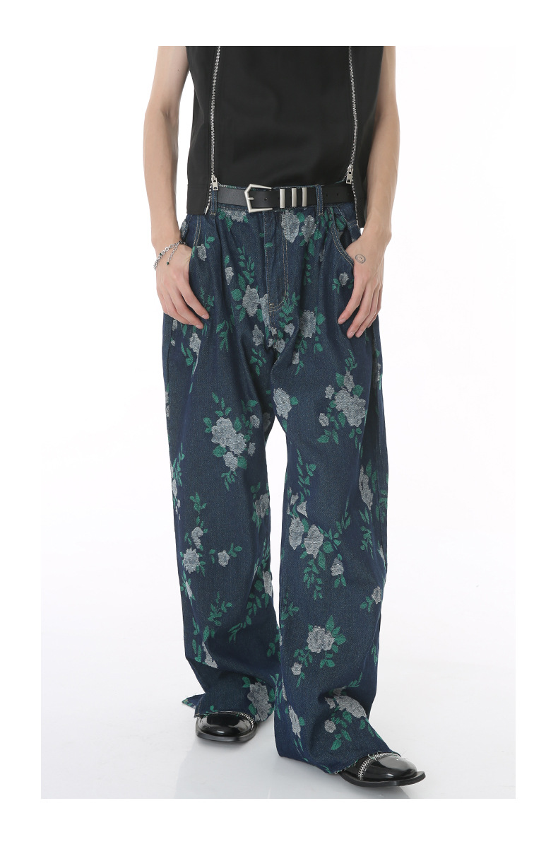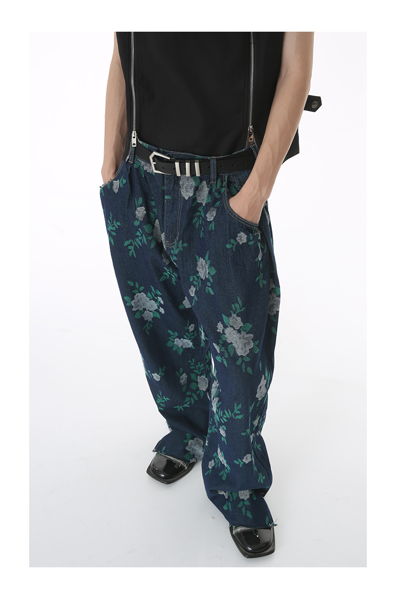 MTLClothes ropa de Hombre | 2023 Verano nuevo casual personalizado retro impreso pantalones de mezclilla sueltos teñidos con lazo