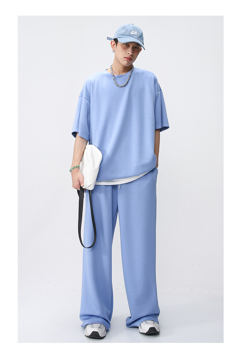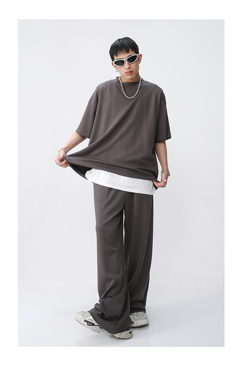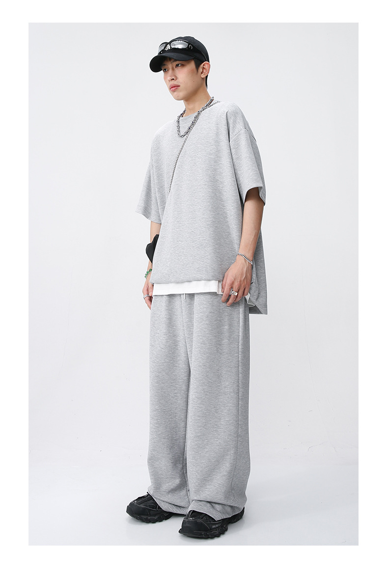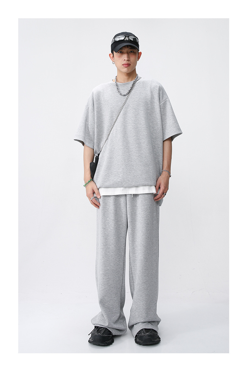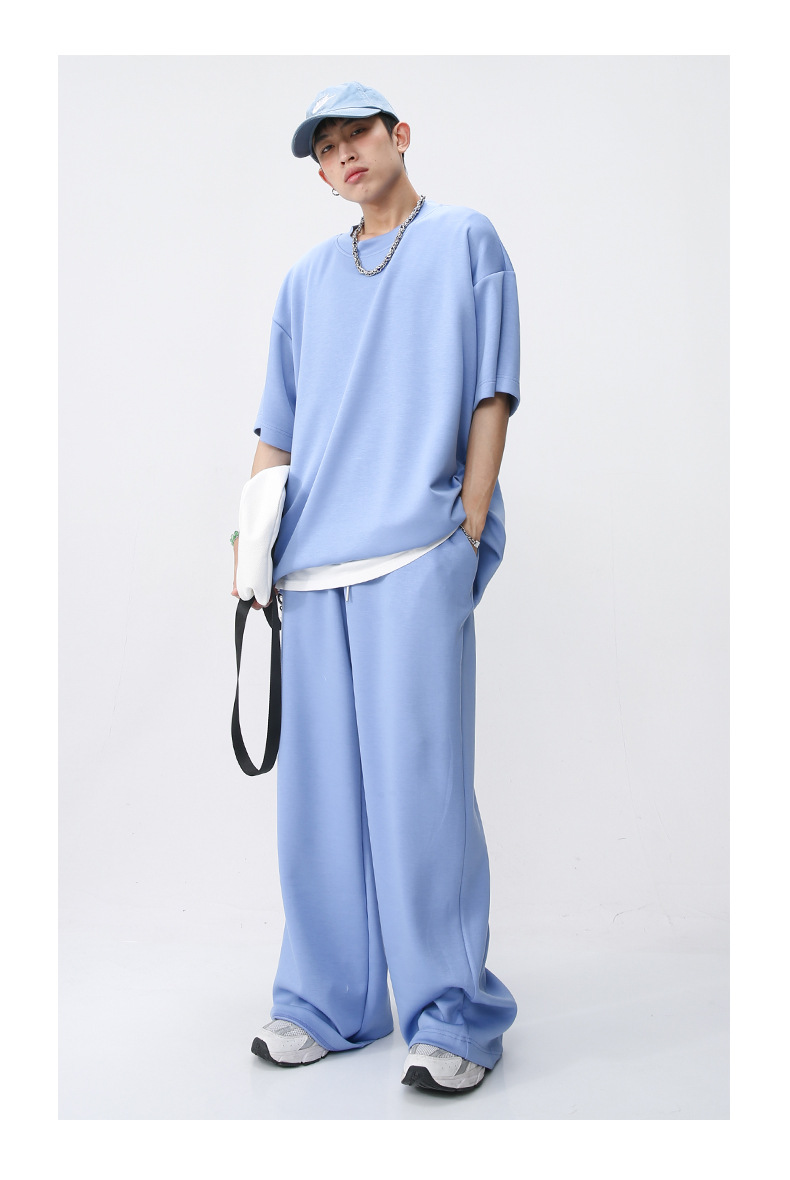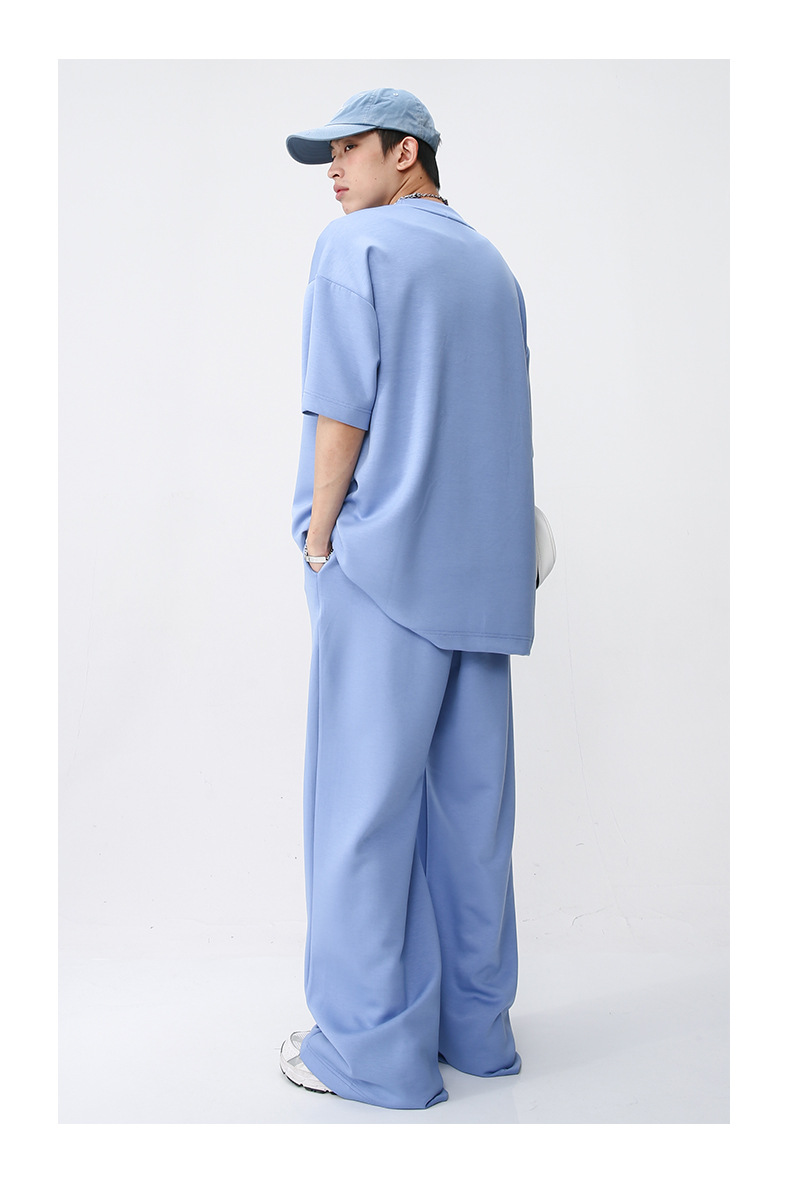 Ropa de hombre MTLClothes | 2023 Verano nuevo traje de estilo coreano casual Camiseta de manga corta drapeado pantalones sueltos