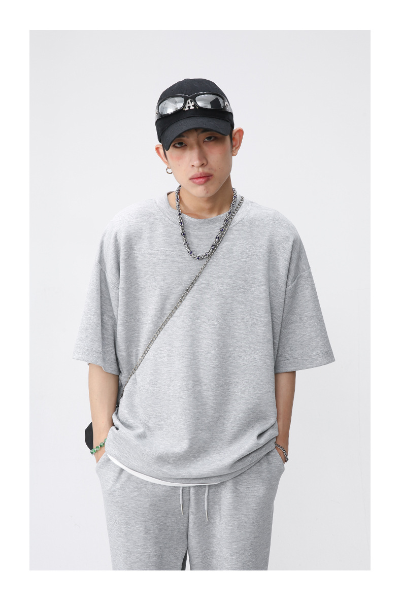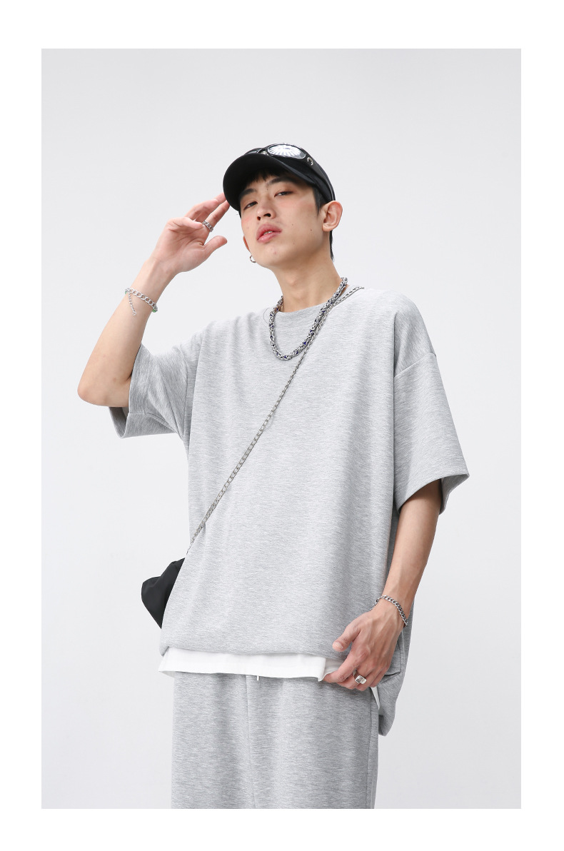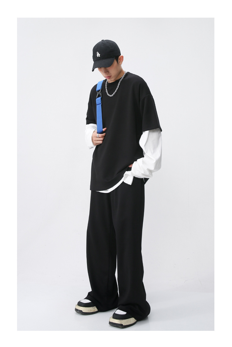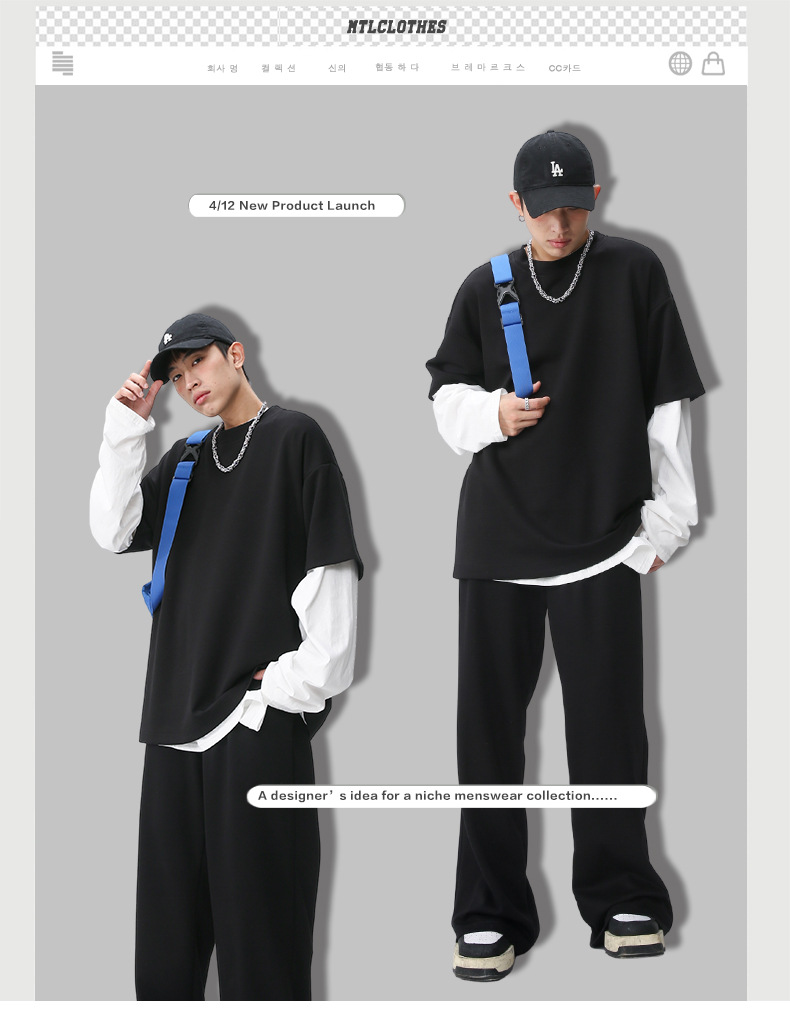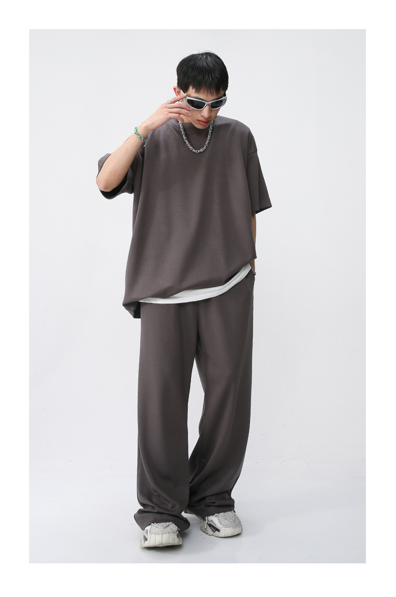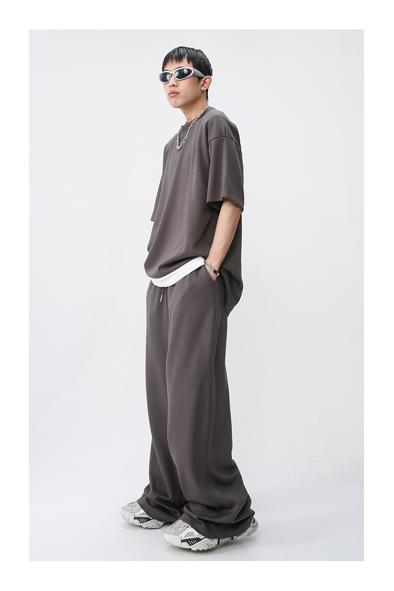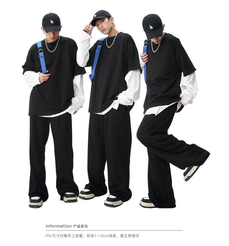Ropa de hombre MTLClothes | 2023 Verano nuevo traje de estilo coreano casual Camiseta de manga corta drapeado pantalones sueltos