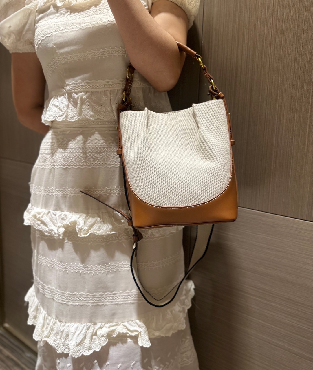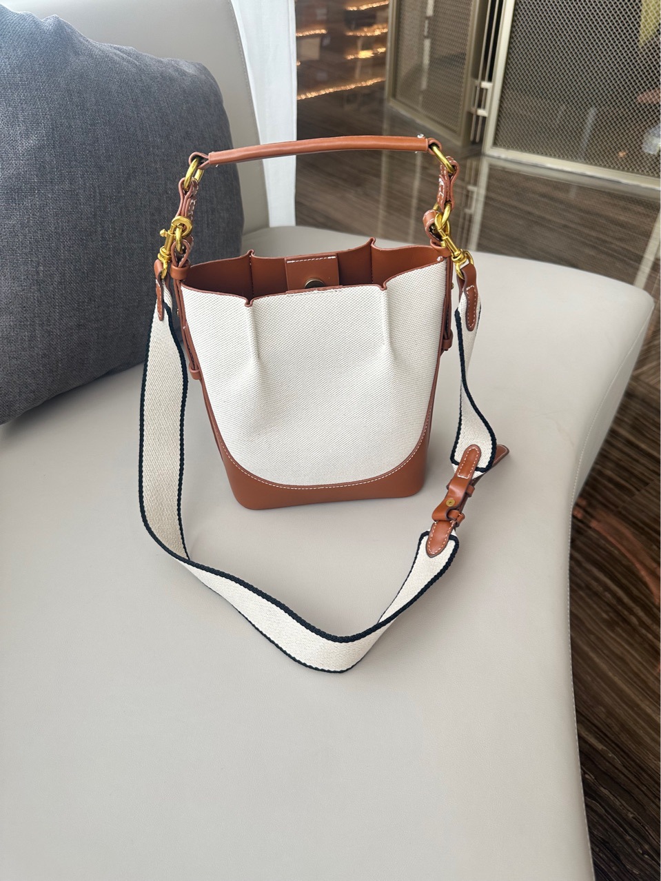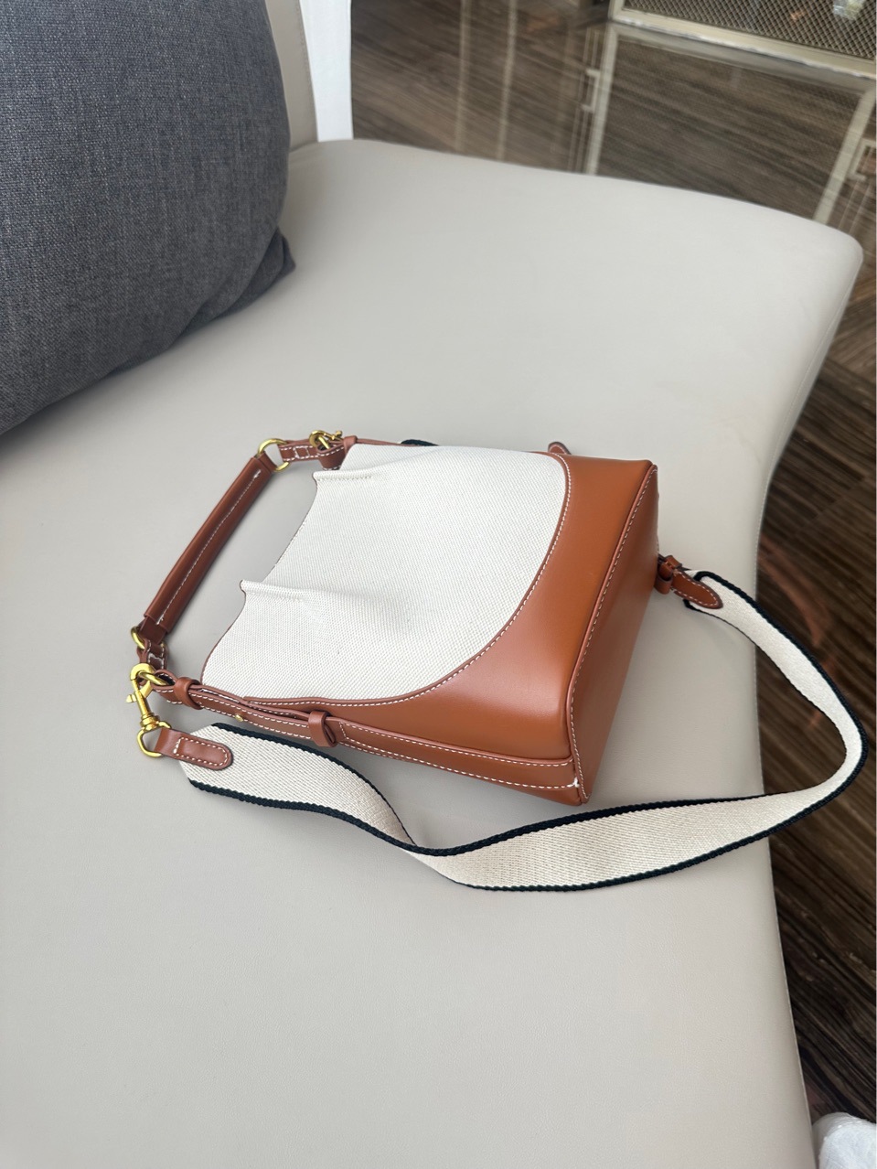 Bolso de mujer de gran capacidad correa de hombro ancho bolso de hombro de lona de tela correa de abertura bolsa de cubo elementos trenzados portátiles